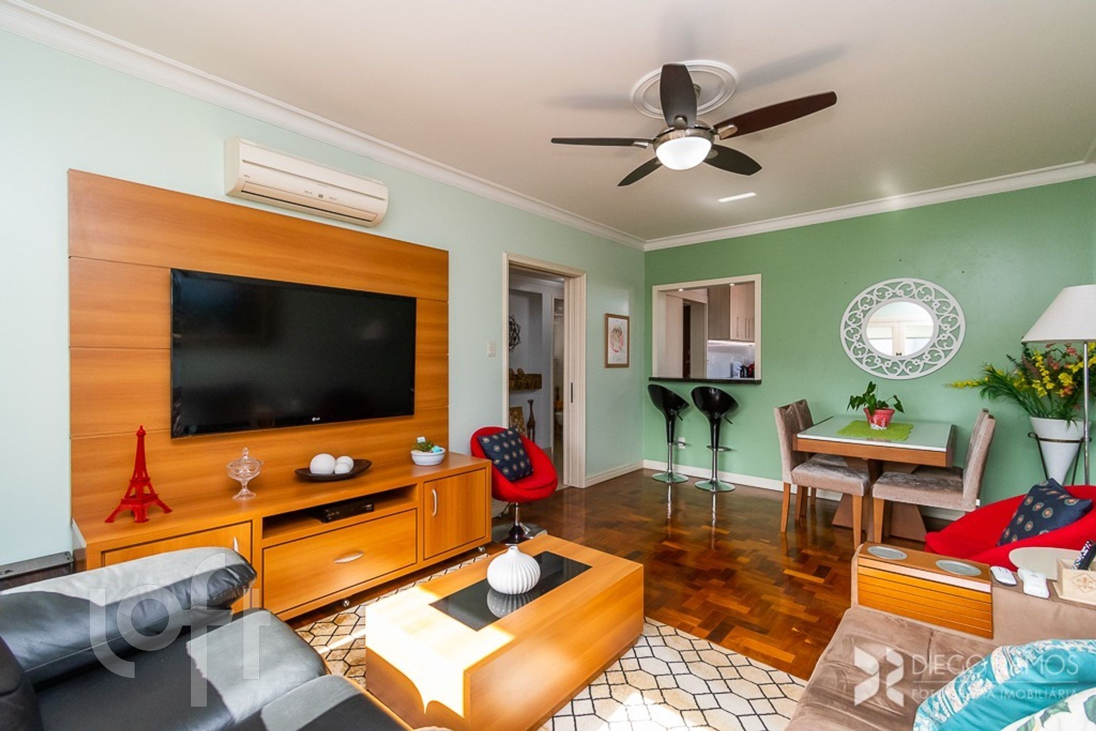 Imóvel com ótima orientação solar, sol dia todo. Ficam todos móveis fixos.