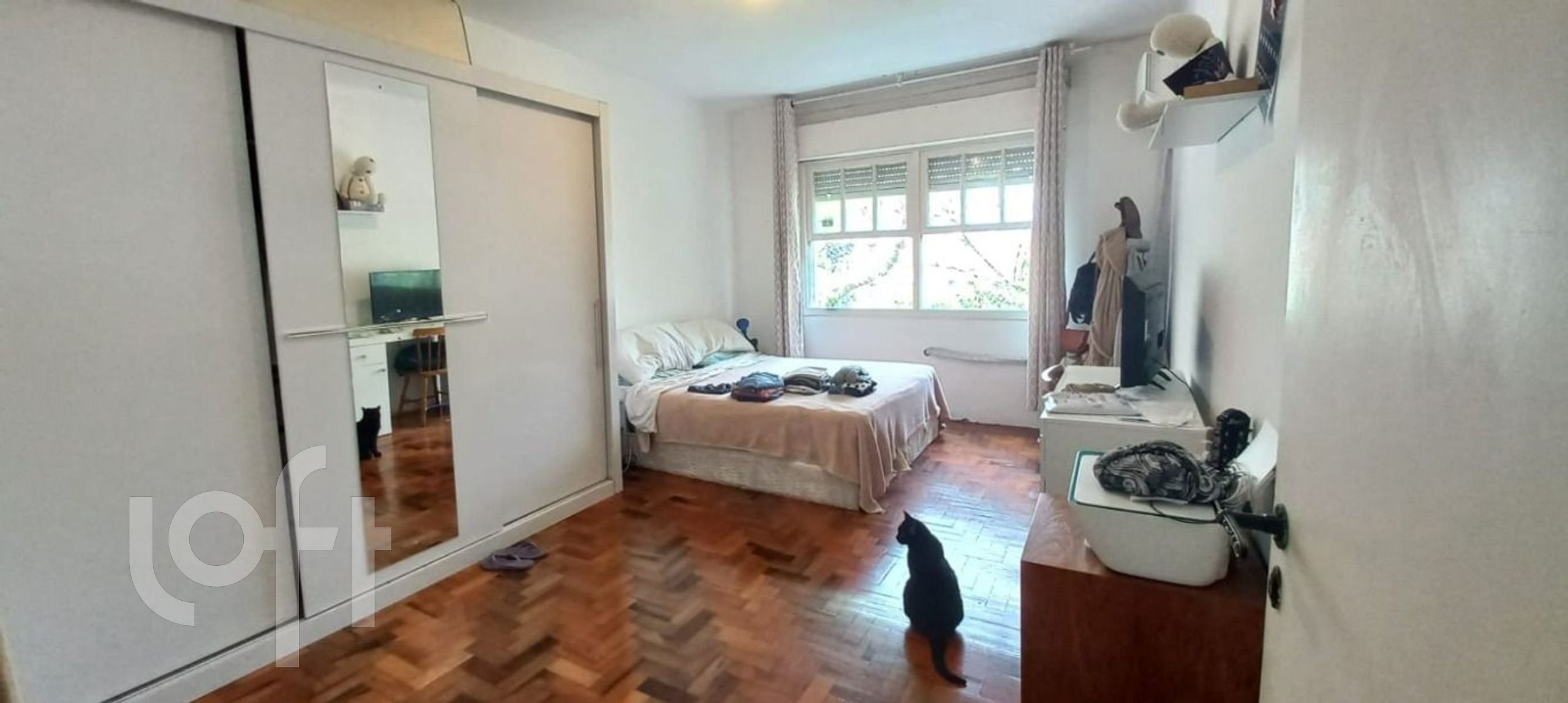 Apartamento de 2 quartos, 1 banheiro, 2 sacadas, muito amplo. Ensolarado e ventilado, dependência de empregada que pode ser transformado fazendo uma suíte, ou em outro quarto, ou ainda em closet, depósito ou despensa., 108 metros privativos, piso em parque, Sacada toda sala, Sacada segundo quarto, Hall de entrada, Pé direito alto, janelas todas telado.