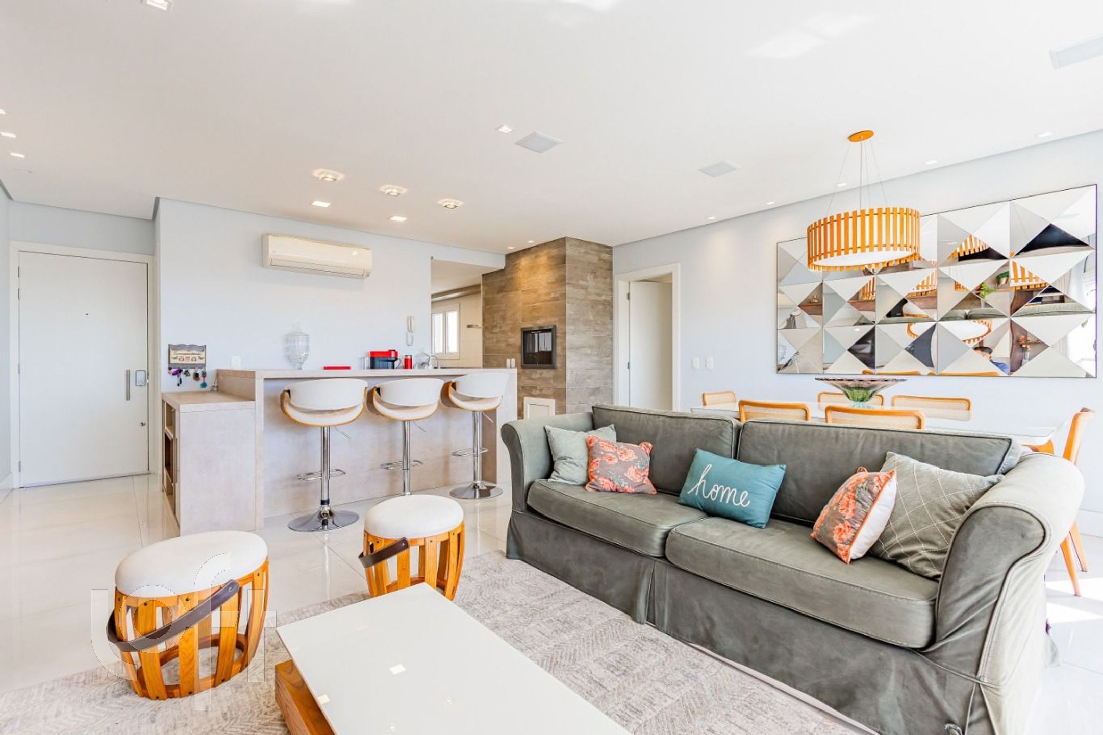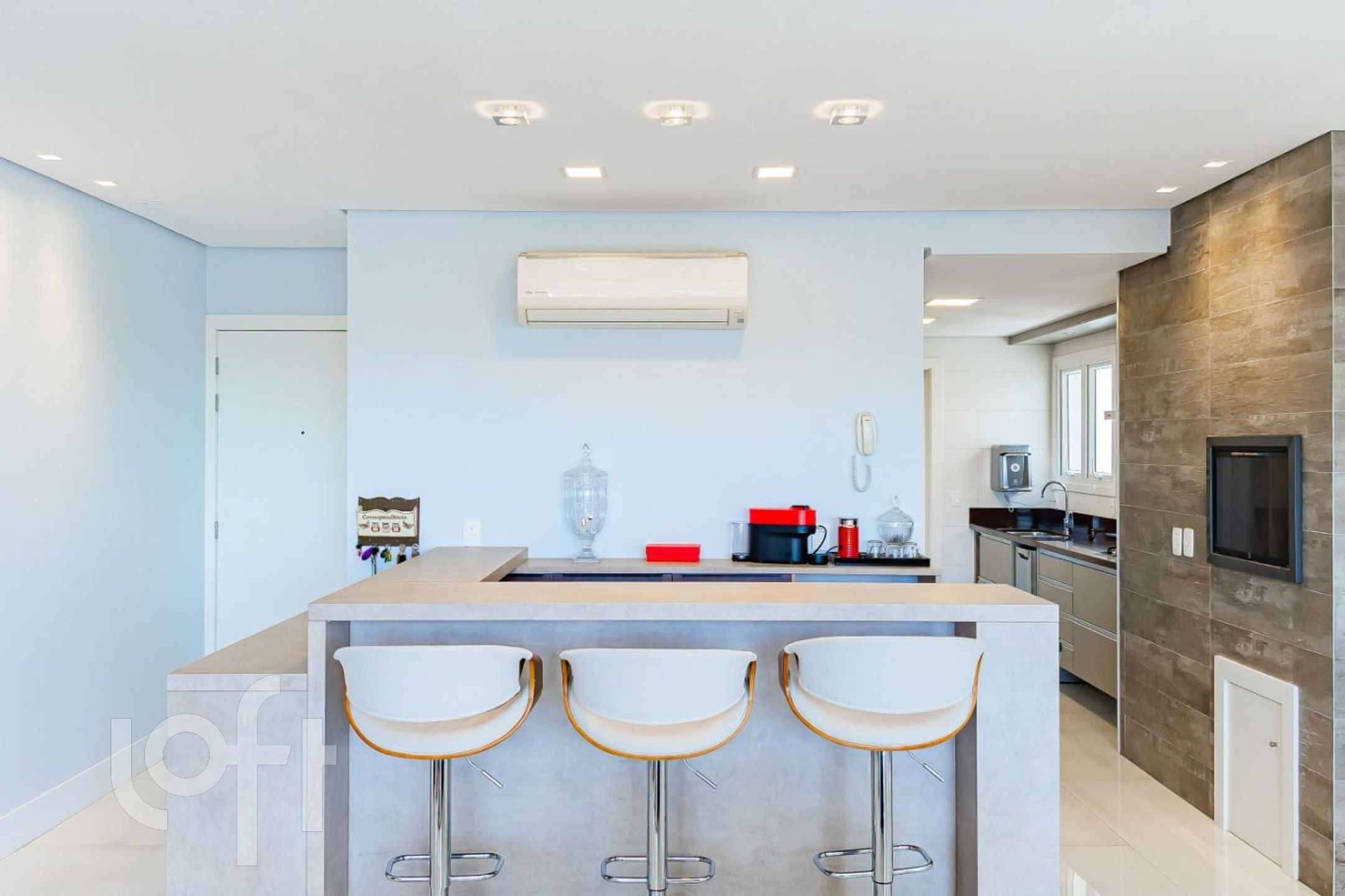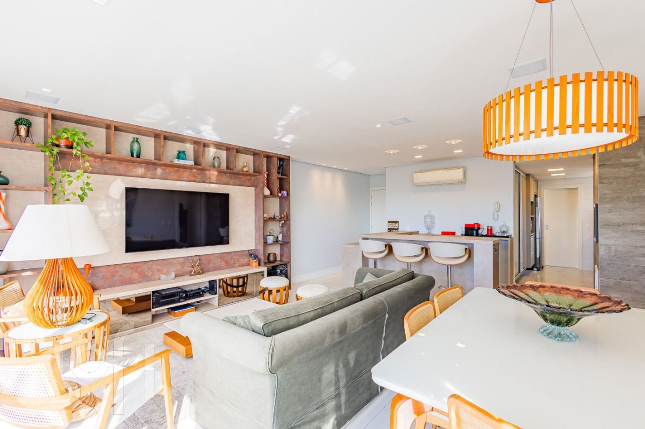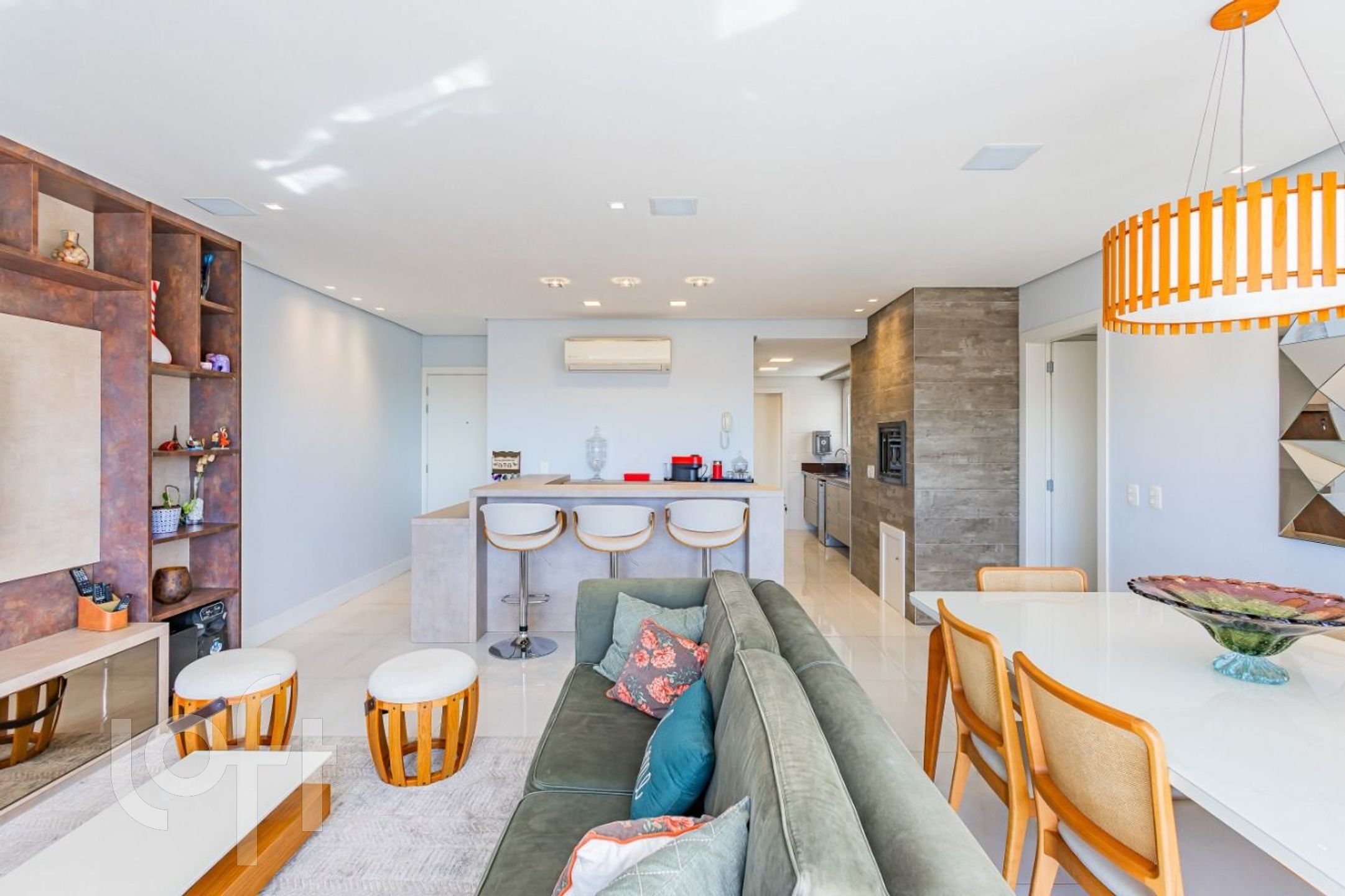 Lindo apartamento conta com 3 dormitórios, sendo uma suíte com closet, um living espaçoso, lavabo e uma cozinha integrada ao living, equipada com cooktop, depurador de ar, lava-louças, e área de serviço separada com bancadas e armários, 3 vagas (1 dupla - 1 simples)