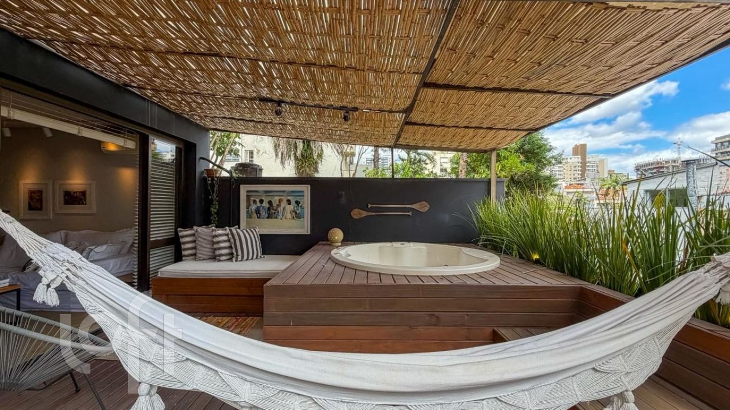 O grande destaque é a área externa: um amplo espaço aberto com deck de madeira e jacuzzi, ideal para momentos de lazer, confraternizações em família e para quem adora receber amigos. Um ambiente arejado, ensolarado e perfeito também para pets.
