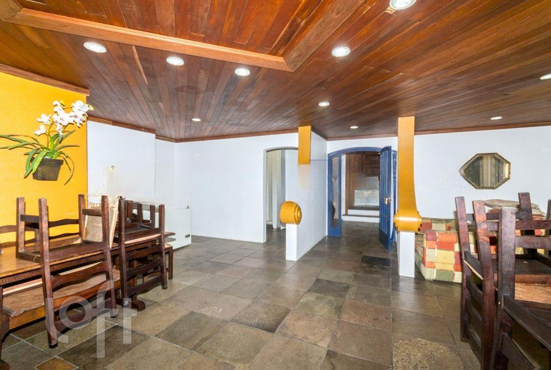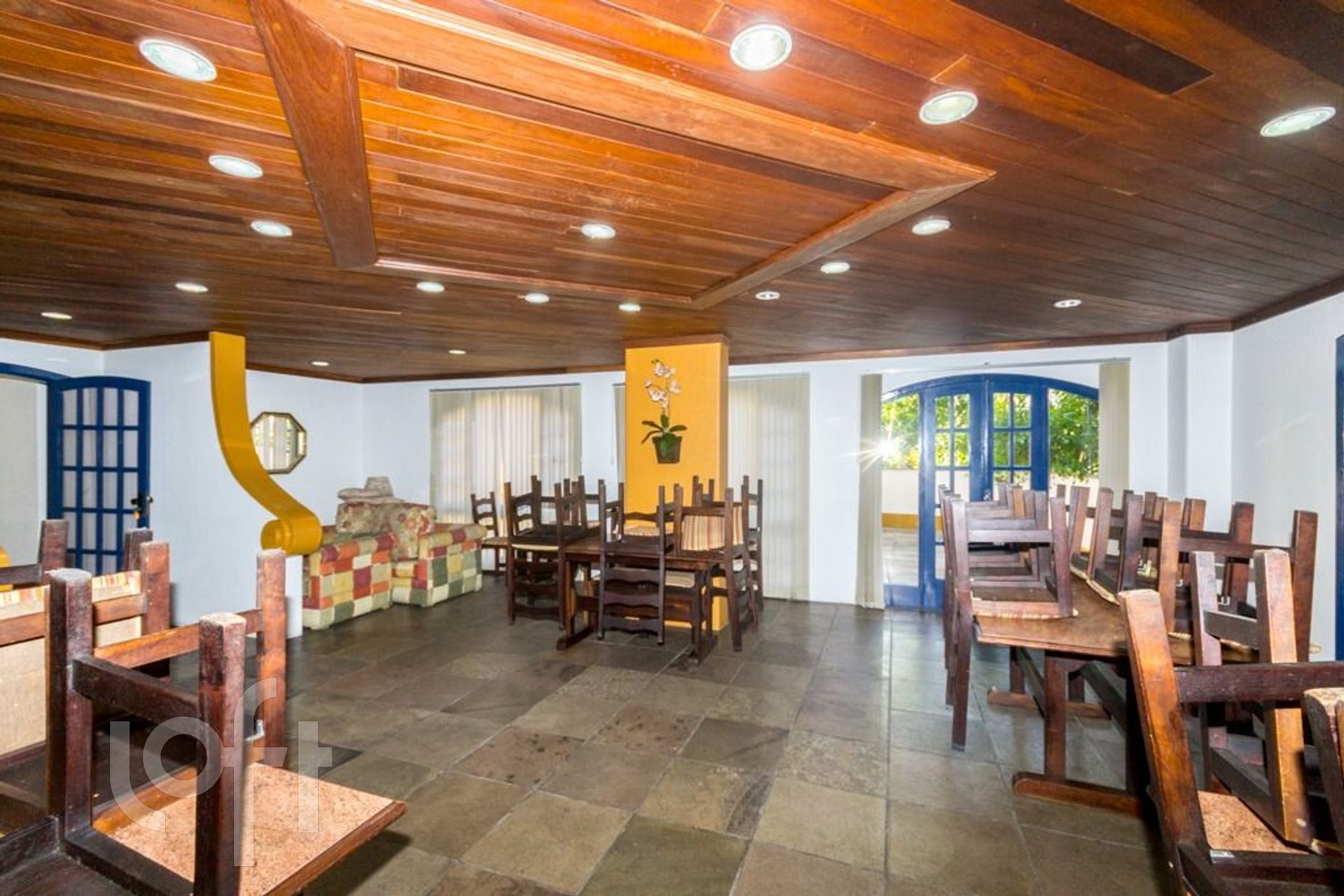 Prédio com elevador, portaria, salão de festas, churrasqueiras coletivas.