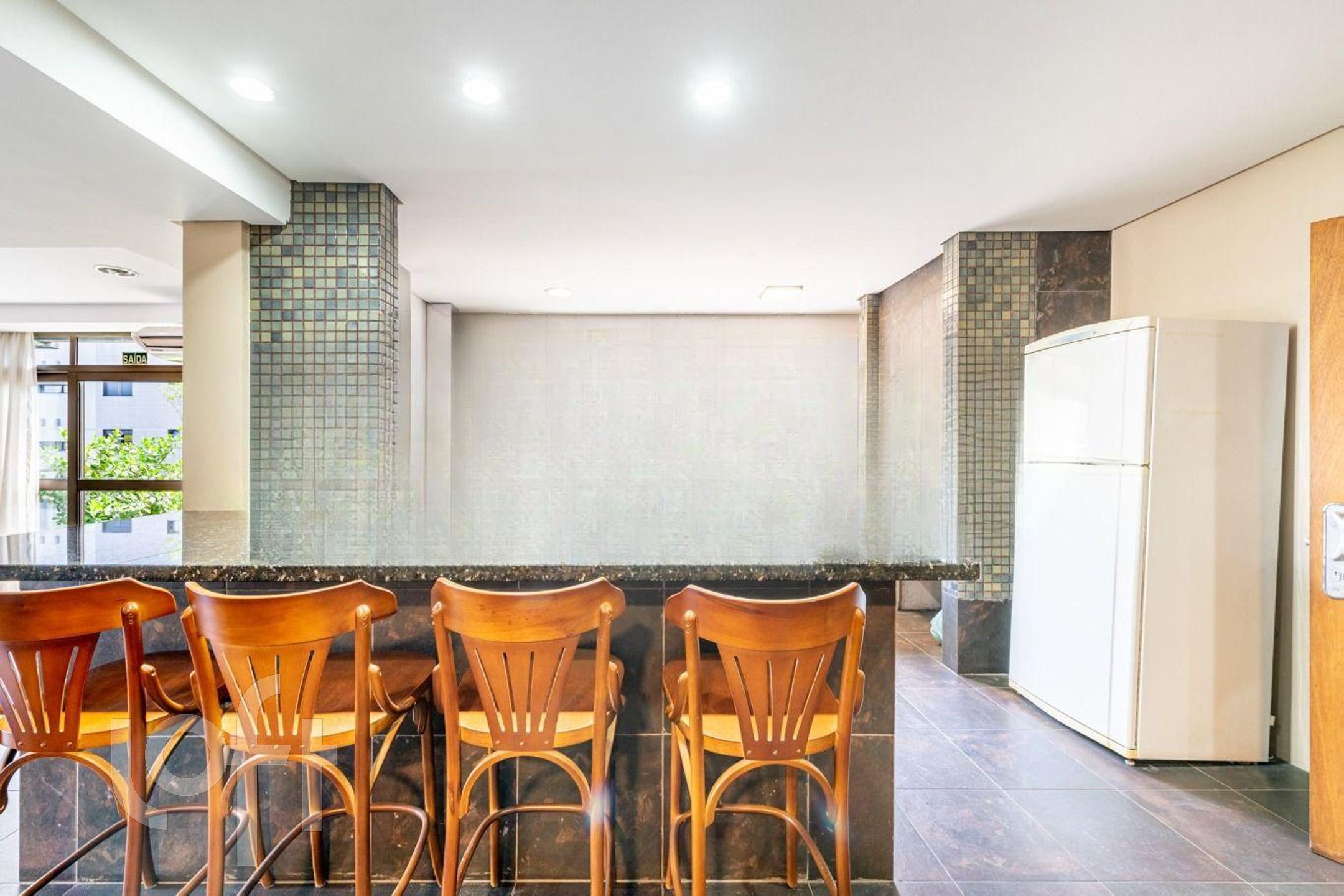 Condomínio com elevador, gás central, salão de festas e zeladoria.