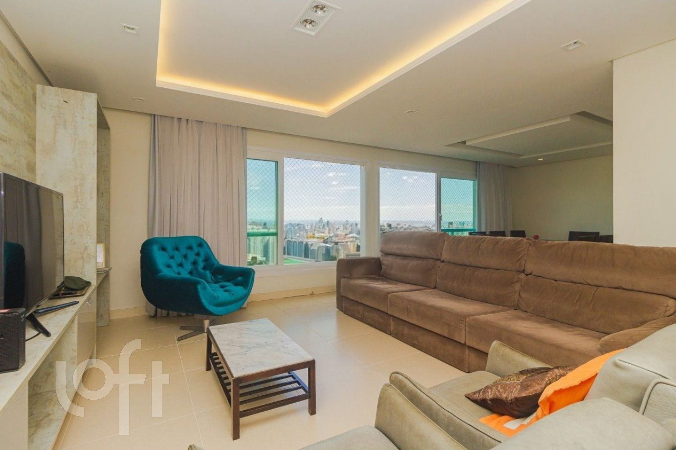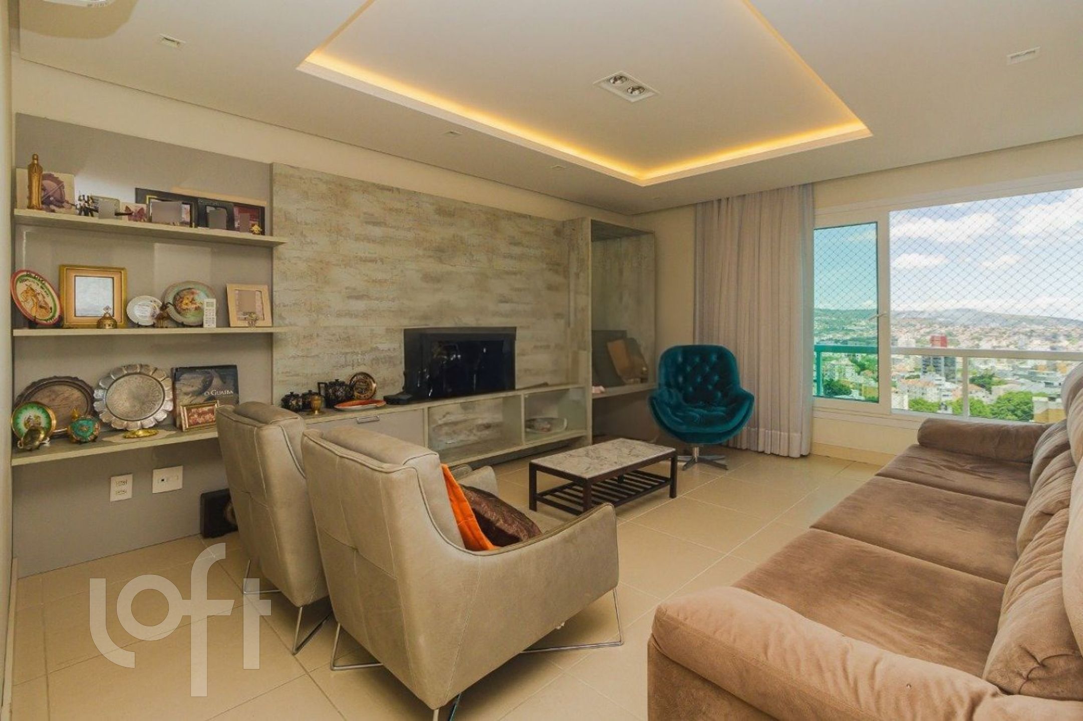 Algumas características do imóvel: Agua Quente, Area Servico, Banheiro Social, Churrasqueira, Estar Intimo, Lareira, Lavabo, Leste, Living Hall, Quintal, Sacada Com Churrasqueira, Sala Jantar, Suite Master, Vista Panoramica, W C Empregada