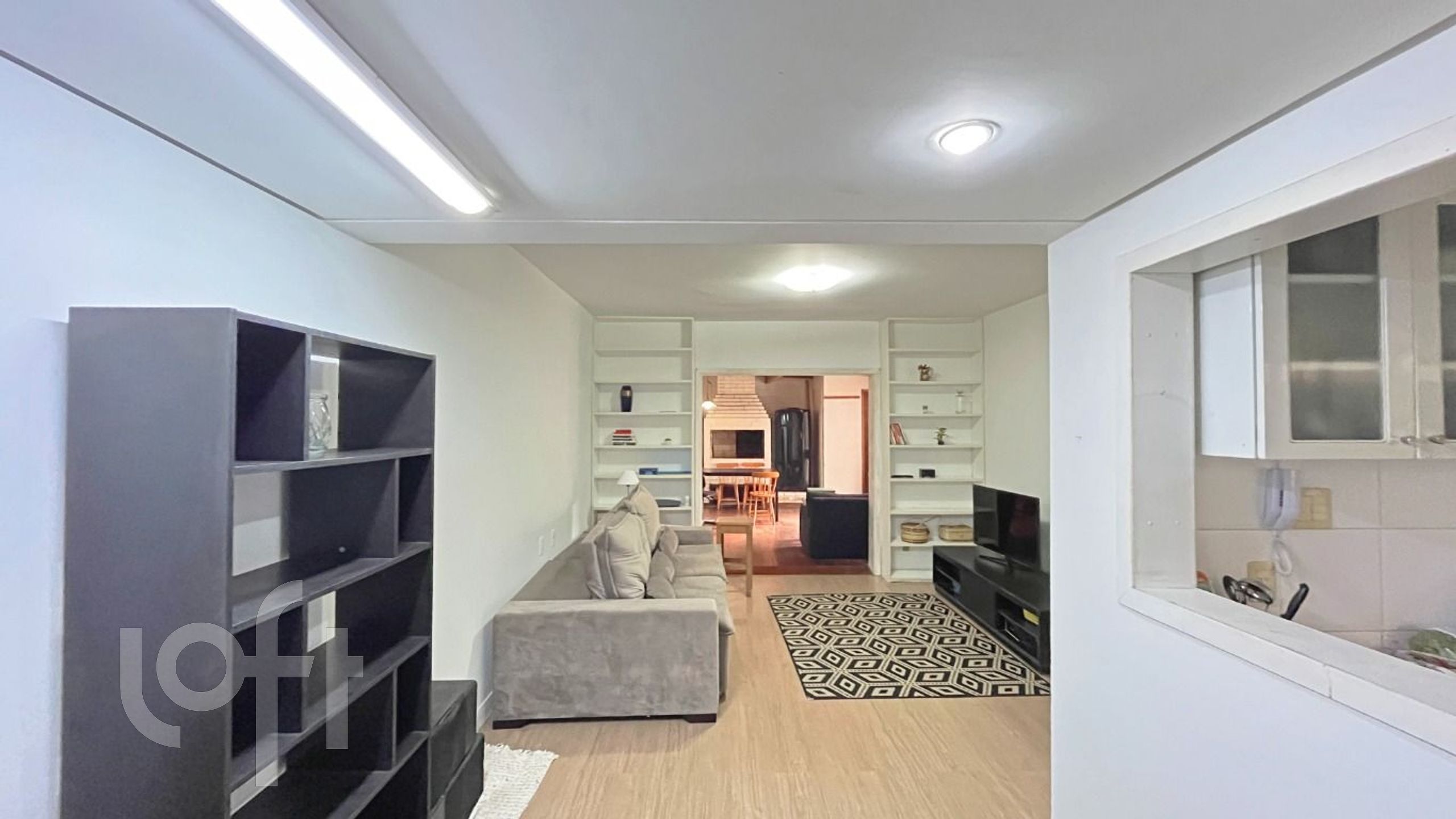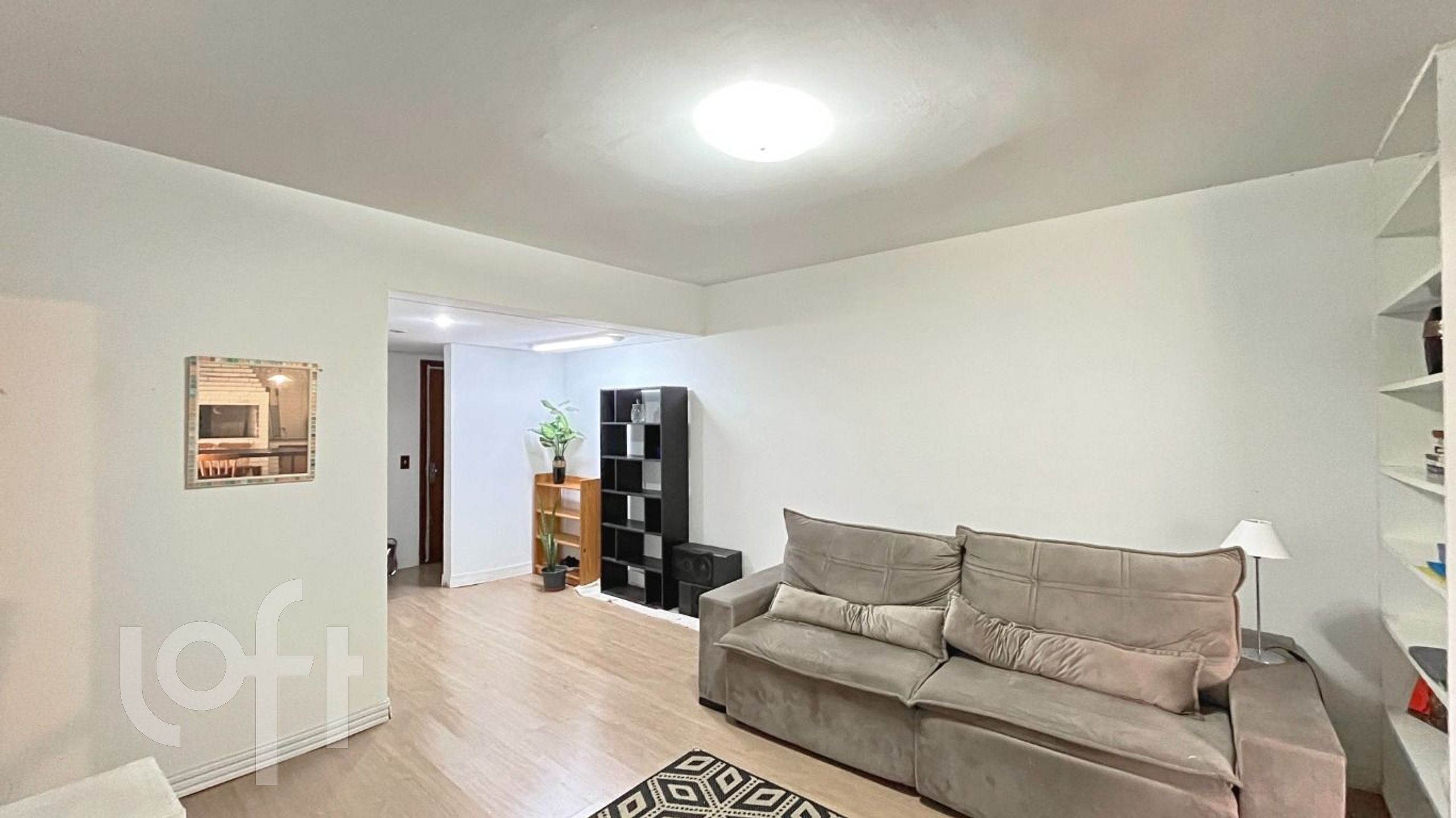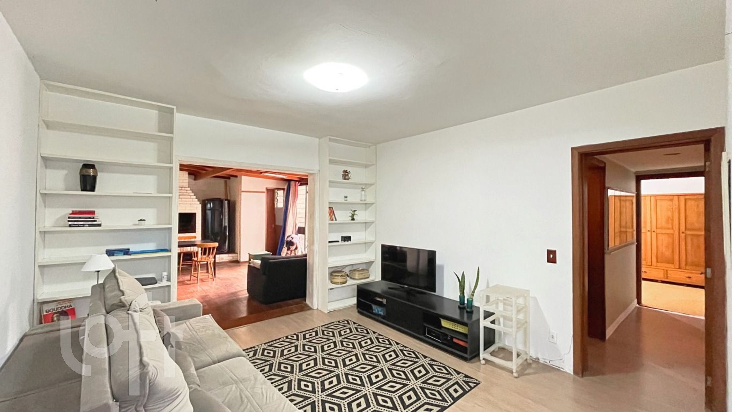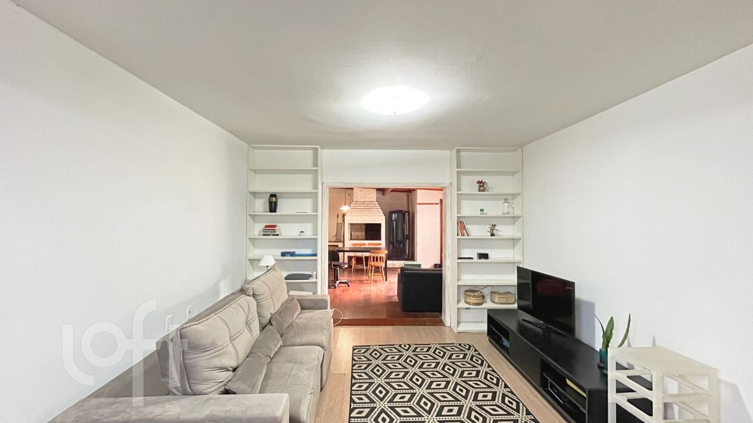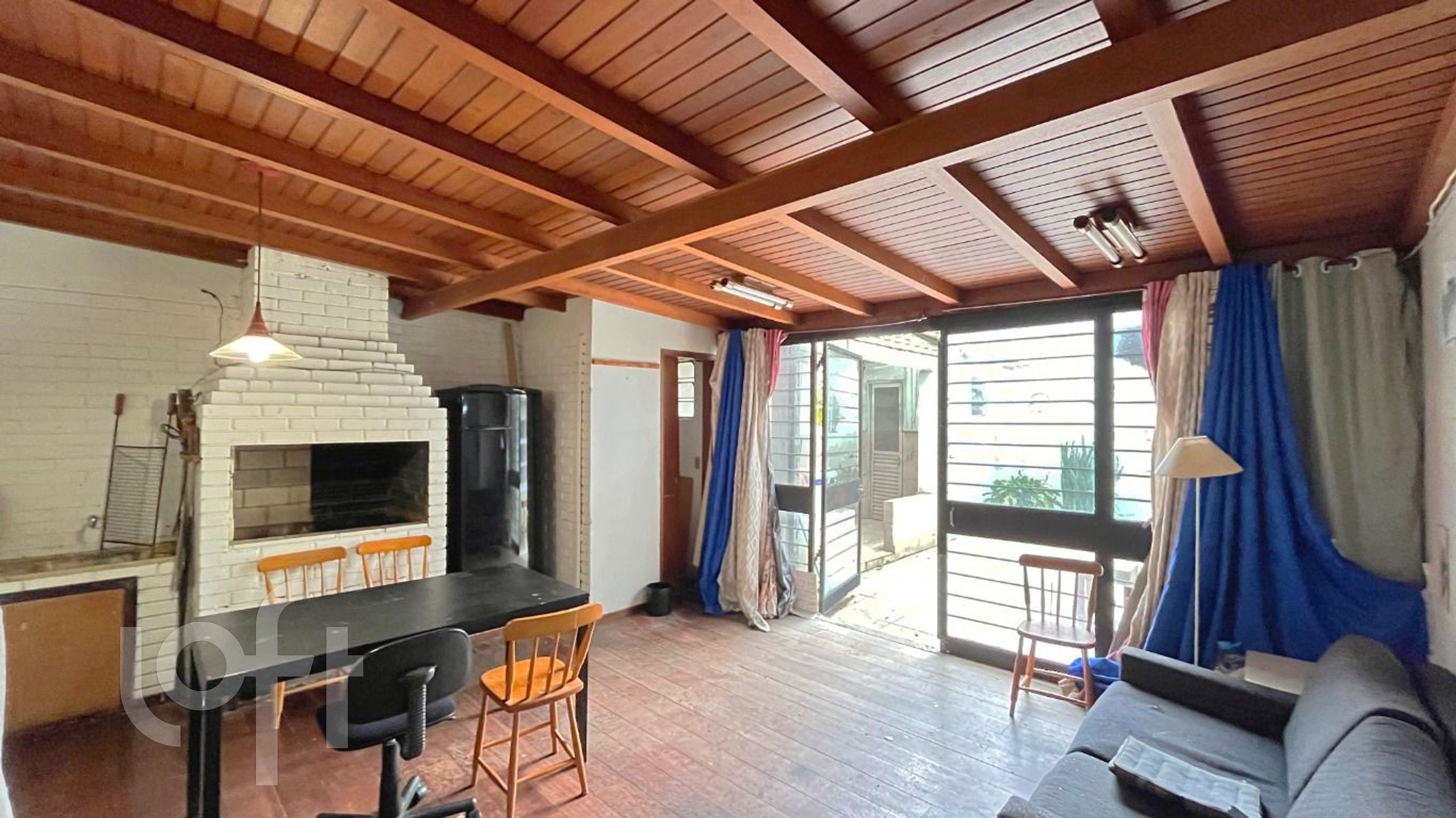 A sala de estar é espaçosa e conta com uma churrasqueira integrada, perfeita para momentos de lazer e confraternização com amigos e familiares. A área é bem ventilada e iluminada, proporcionando um ambiente aconchegante. A cozinha é moderna e funcional, com área de serviço separada, oferecendo praticidade no dia a dia.