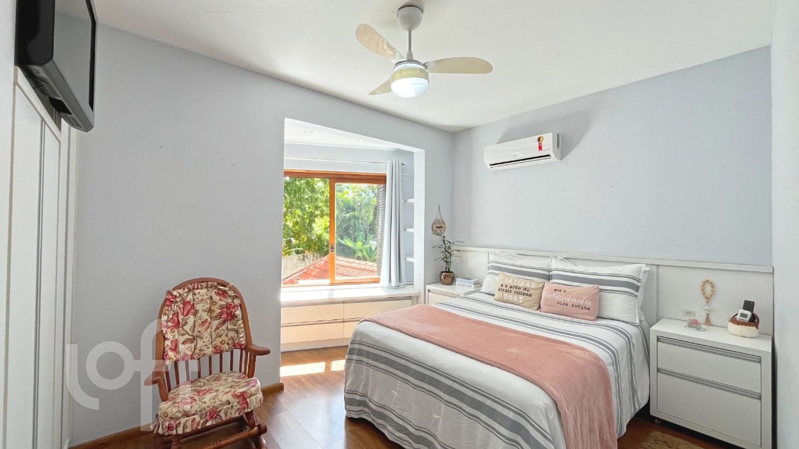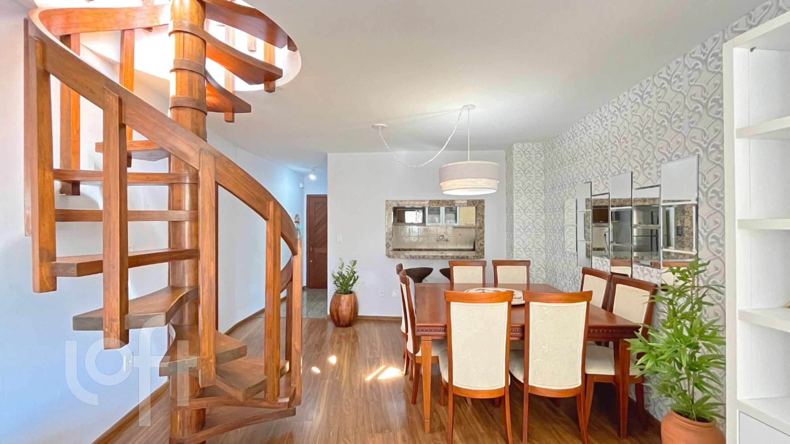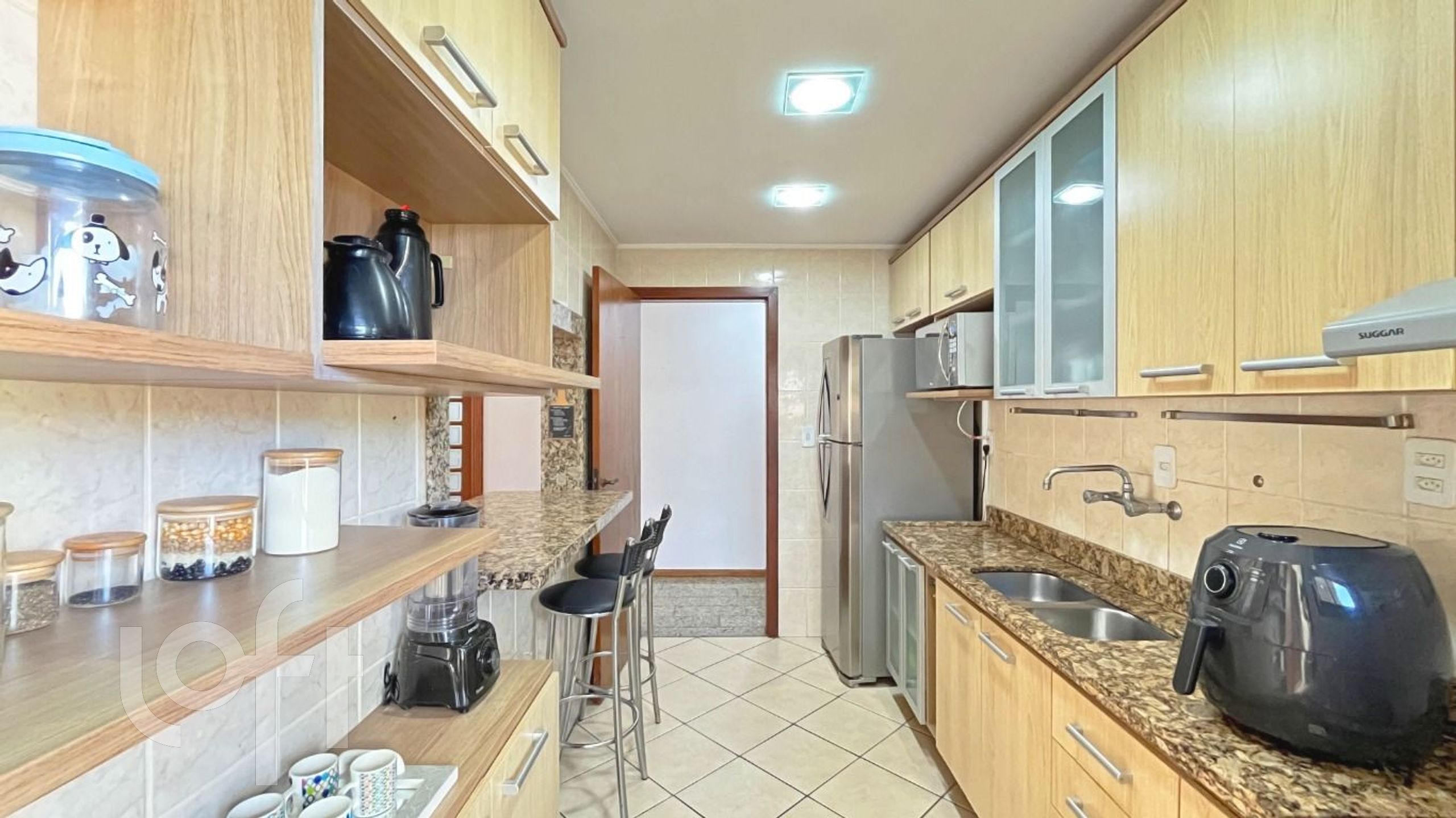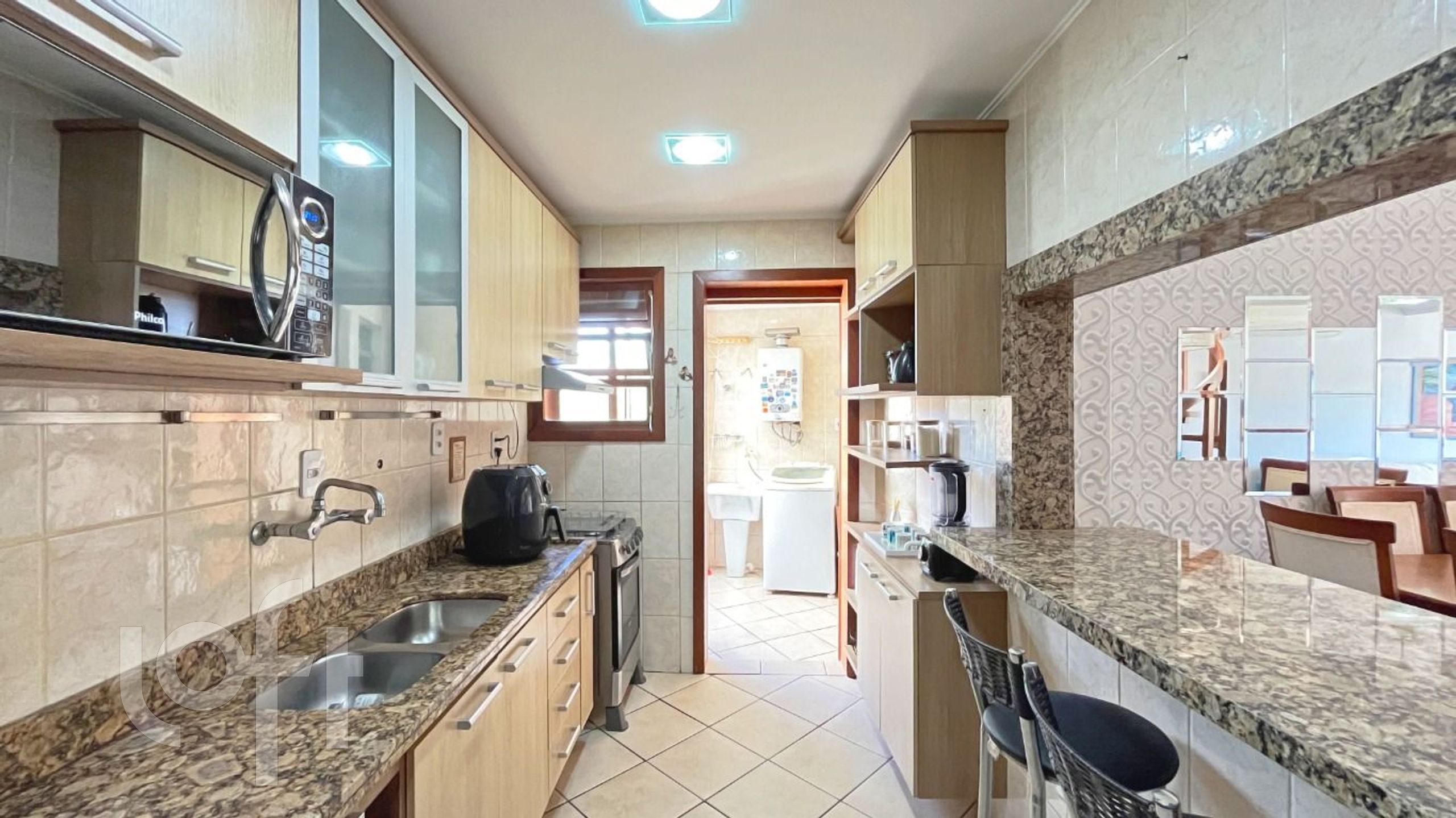 O primeiro pavimento conta com dois quartos, sendo uma suíte com closet, amplo living com dois ambientes, banheiro social, cozinha equipada com armários e eletrodomésticos, área de serviço, espaço home office e lavabo.