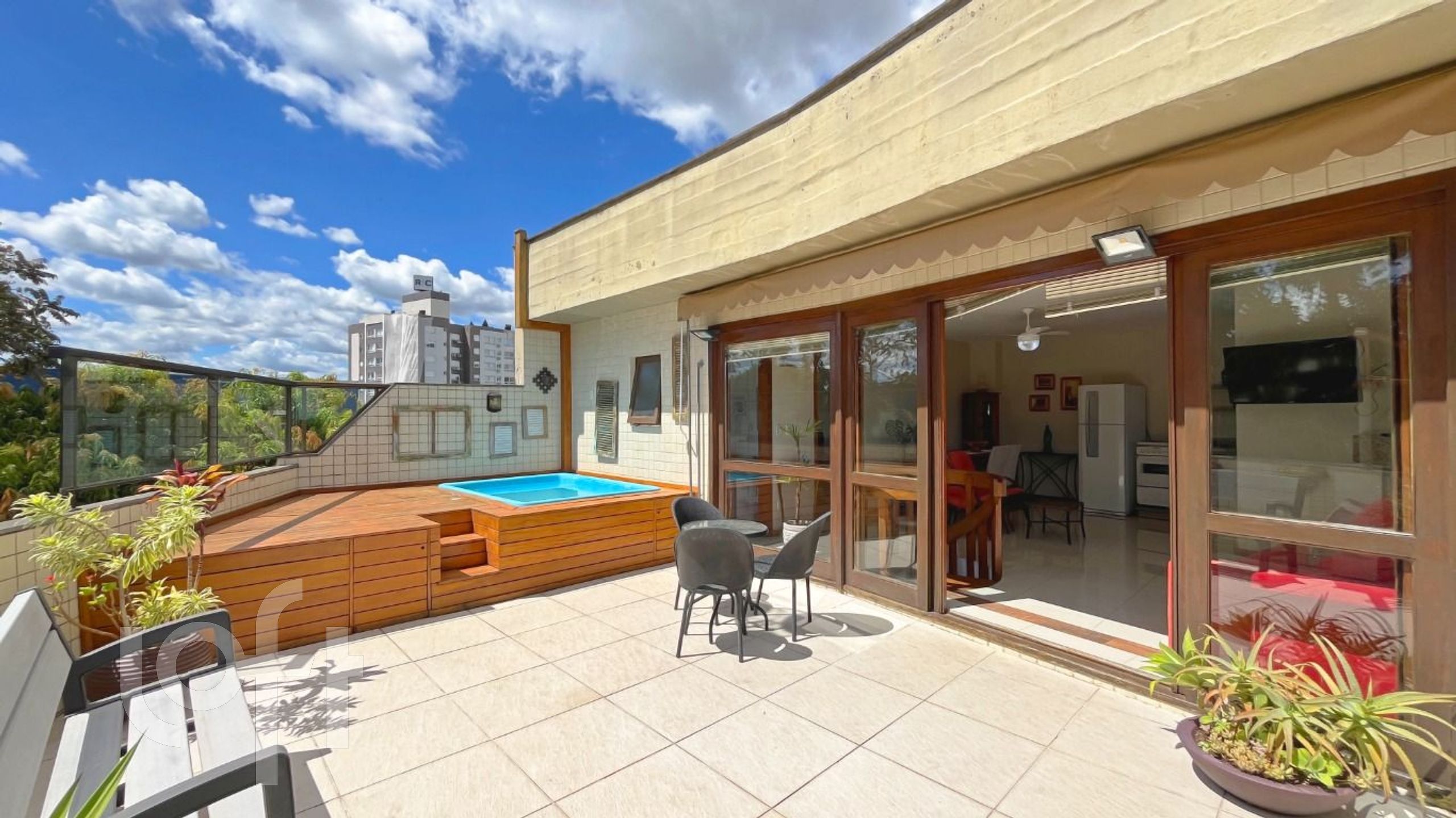Cobertura mobiliada no charmoso bairro Vila Assunção, em Porto Alegre, Com uma vista panorâmica deslumbrante, o imóvel oferece 128,4 m² de área privativa, além de um espaçoso terraço com vista para o Rio Guaíba para momentos de descontração.