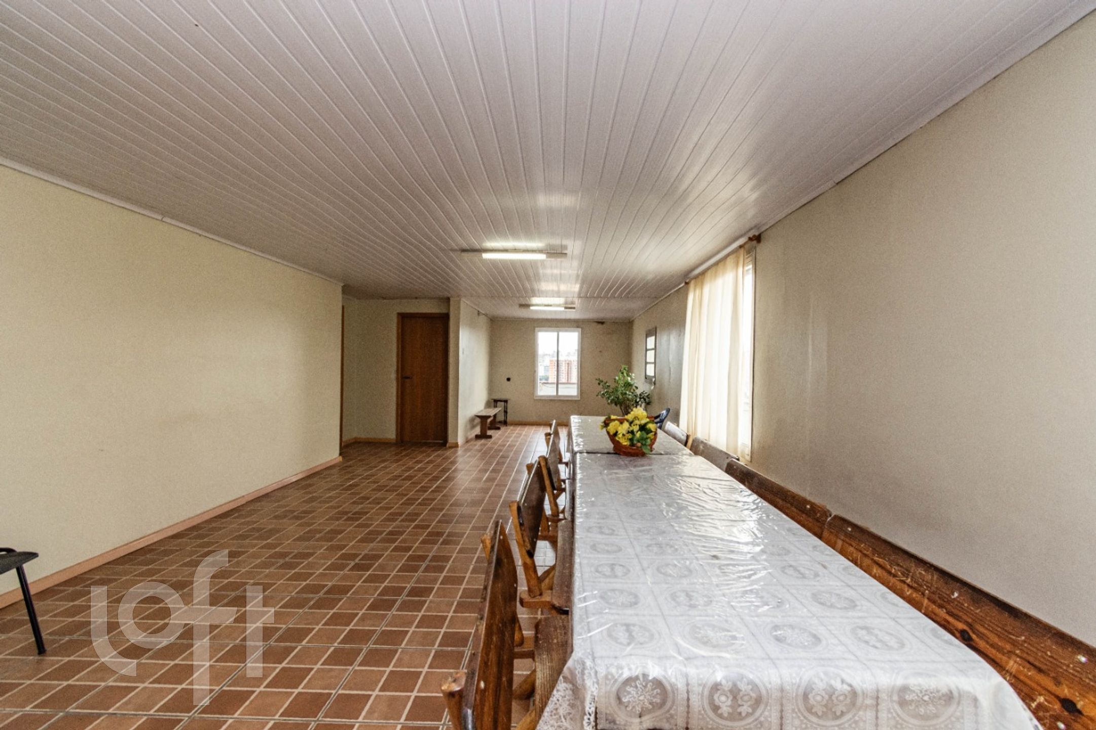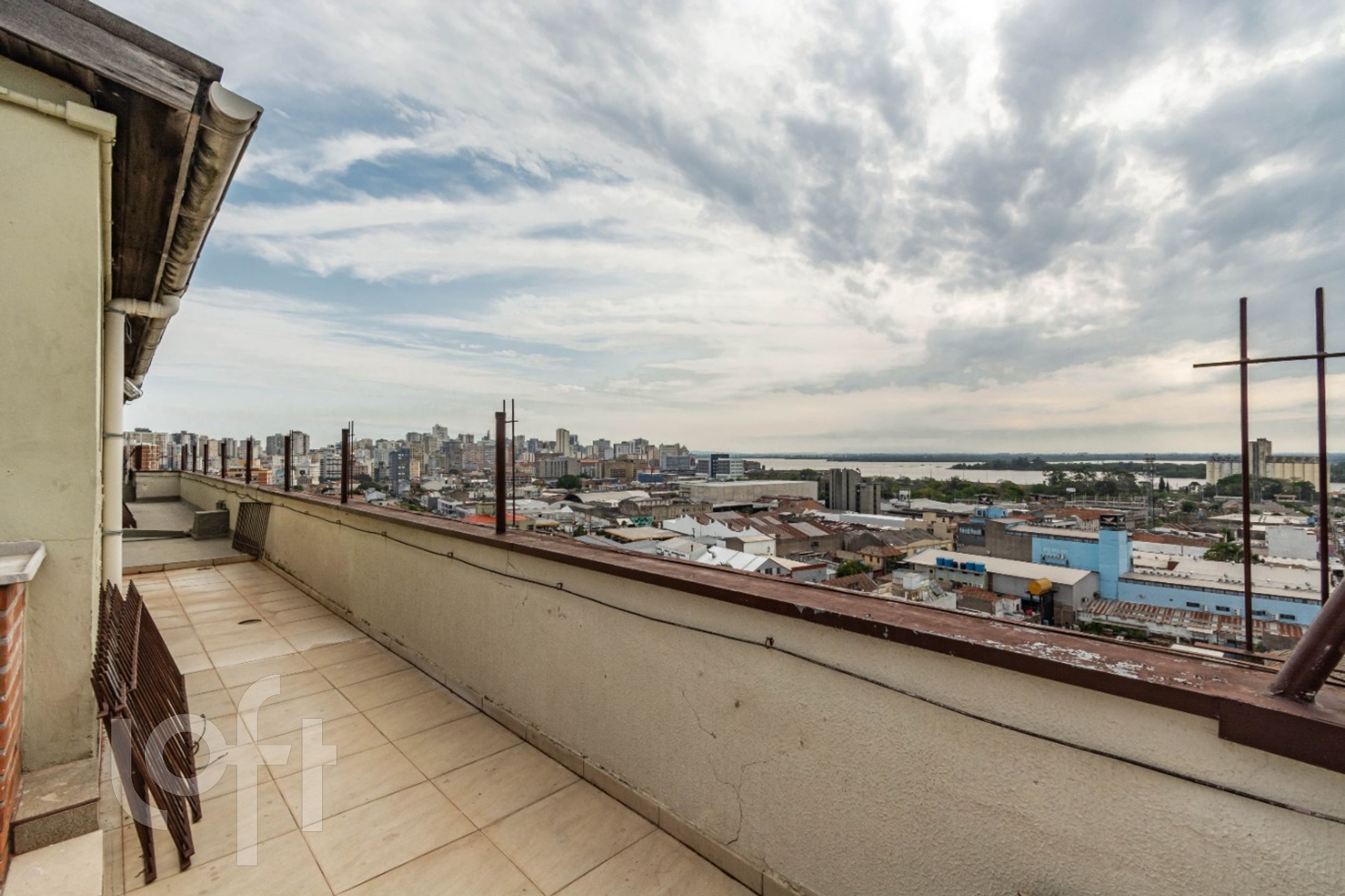 Edifício com 2 elevadores, condomínio acessível, em torno de R$ 350,00, salão de festas no ultimo andar com vista para o Guaíba.