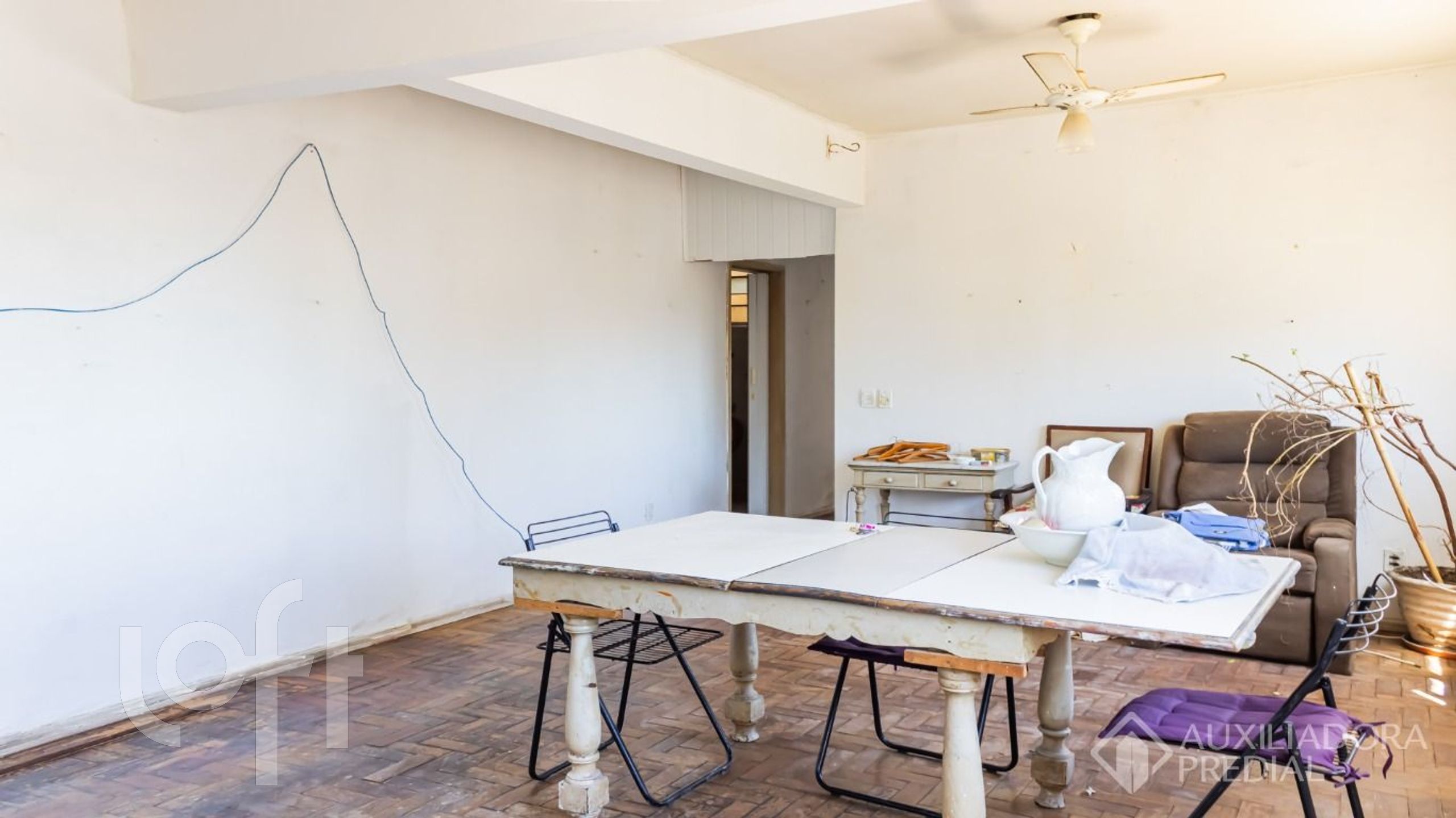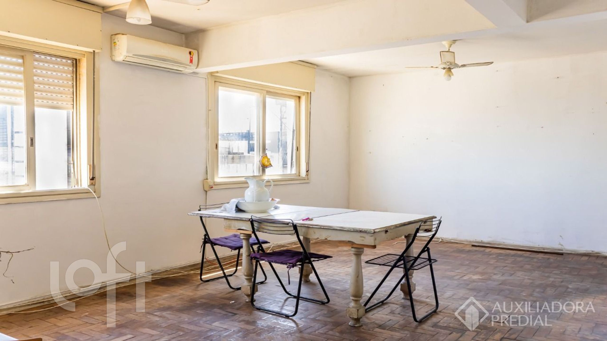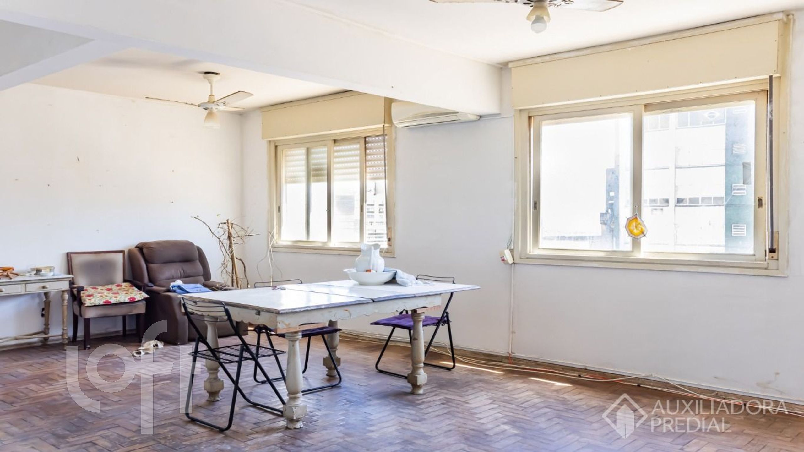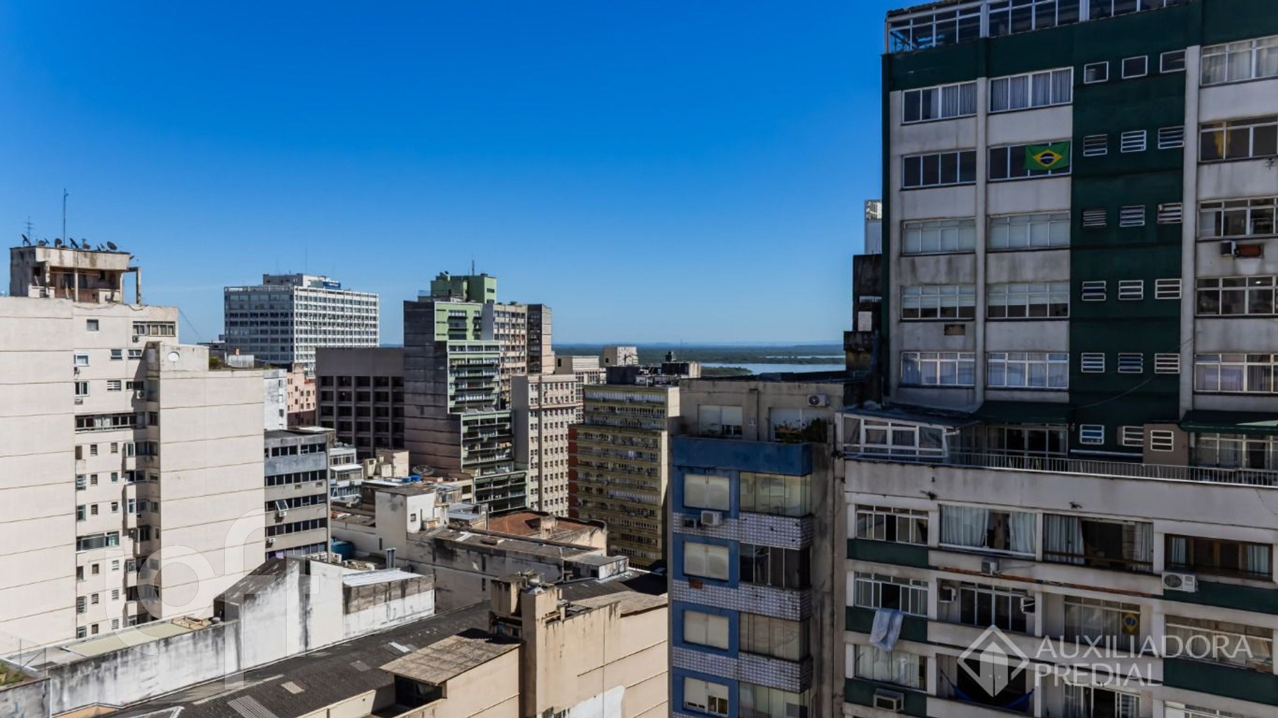 Apartamento no centro histórico de 132m², com 3 quartos, 2 banheiros sociais, três salas (uma com 2 ambientes), cozinha, área de serviço separada com dependência aberta e banheiro auxiliar. Andar alto. Excelente vista, inclusive para o guaíba e ventilação cruzada. 1 vaga.