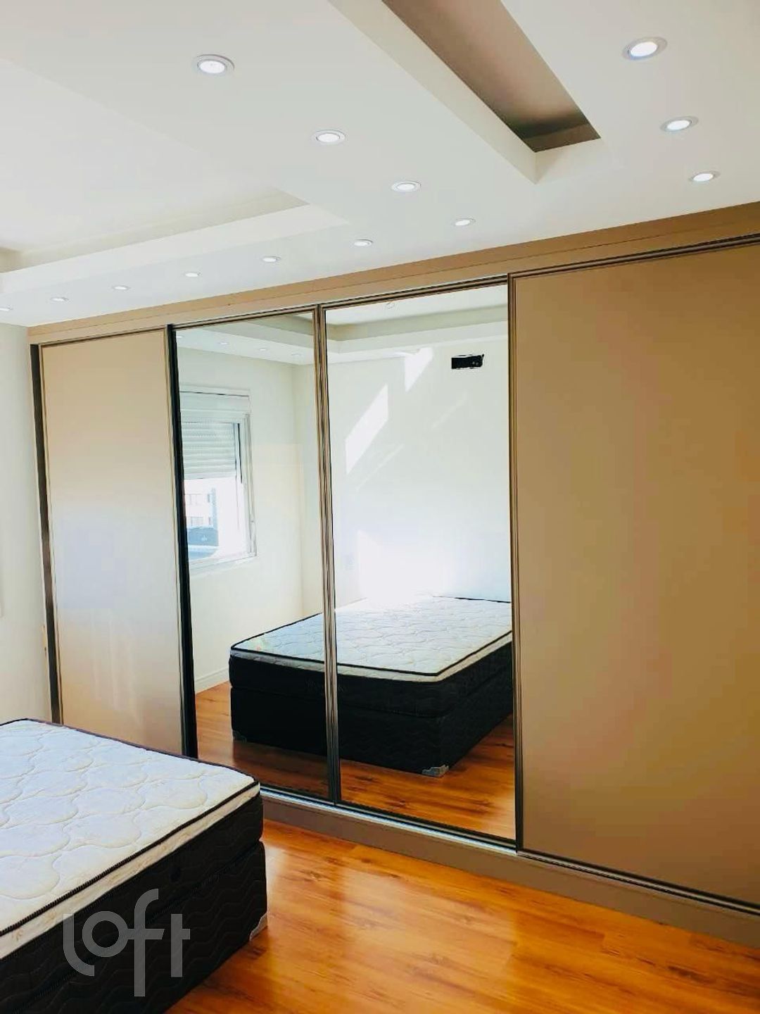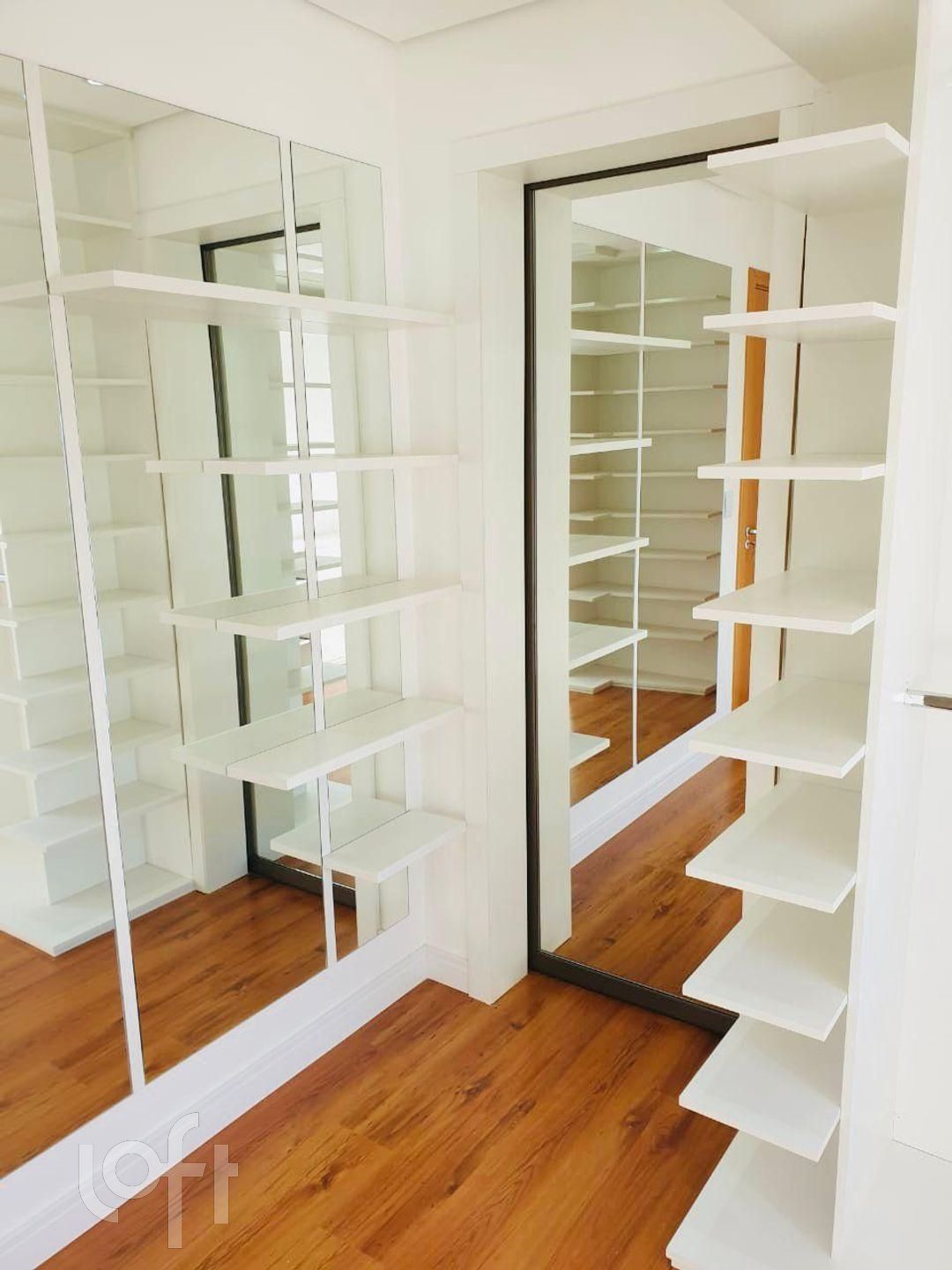 Passagem da suíte para o closet pelo espelho duplo(porta) da suite.