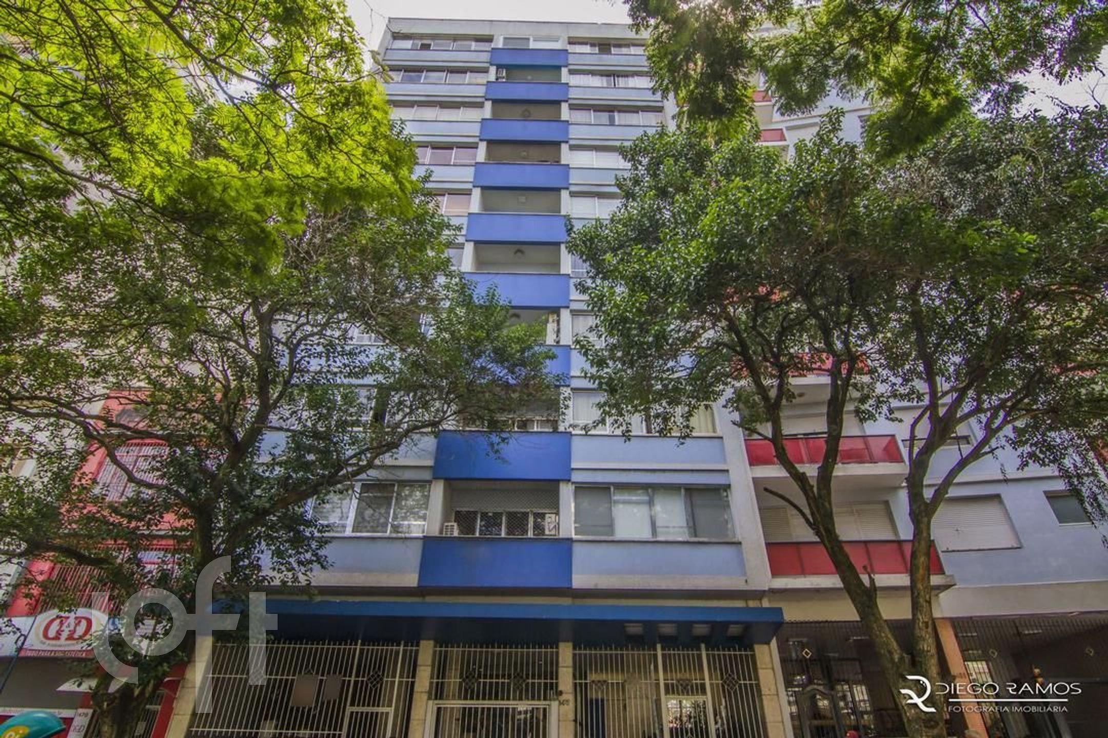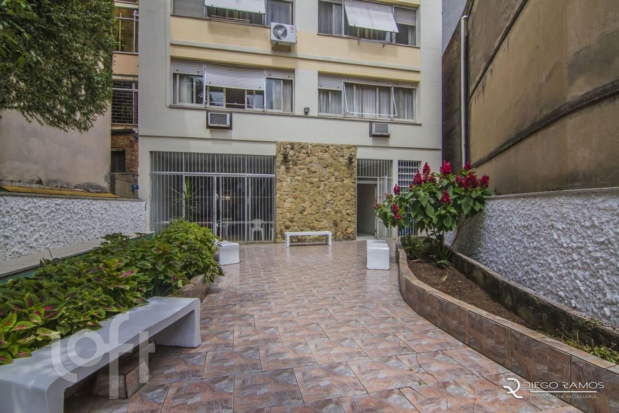 Prédio com elevador, salão de festas e portaria.