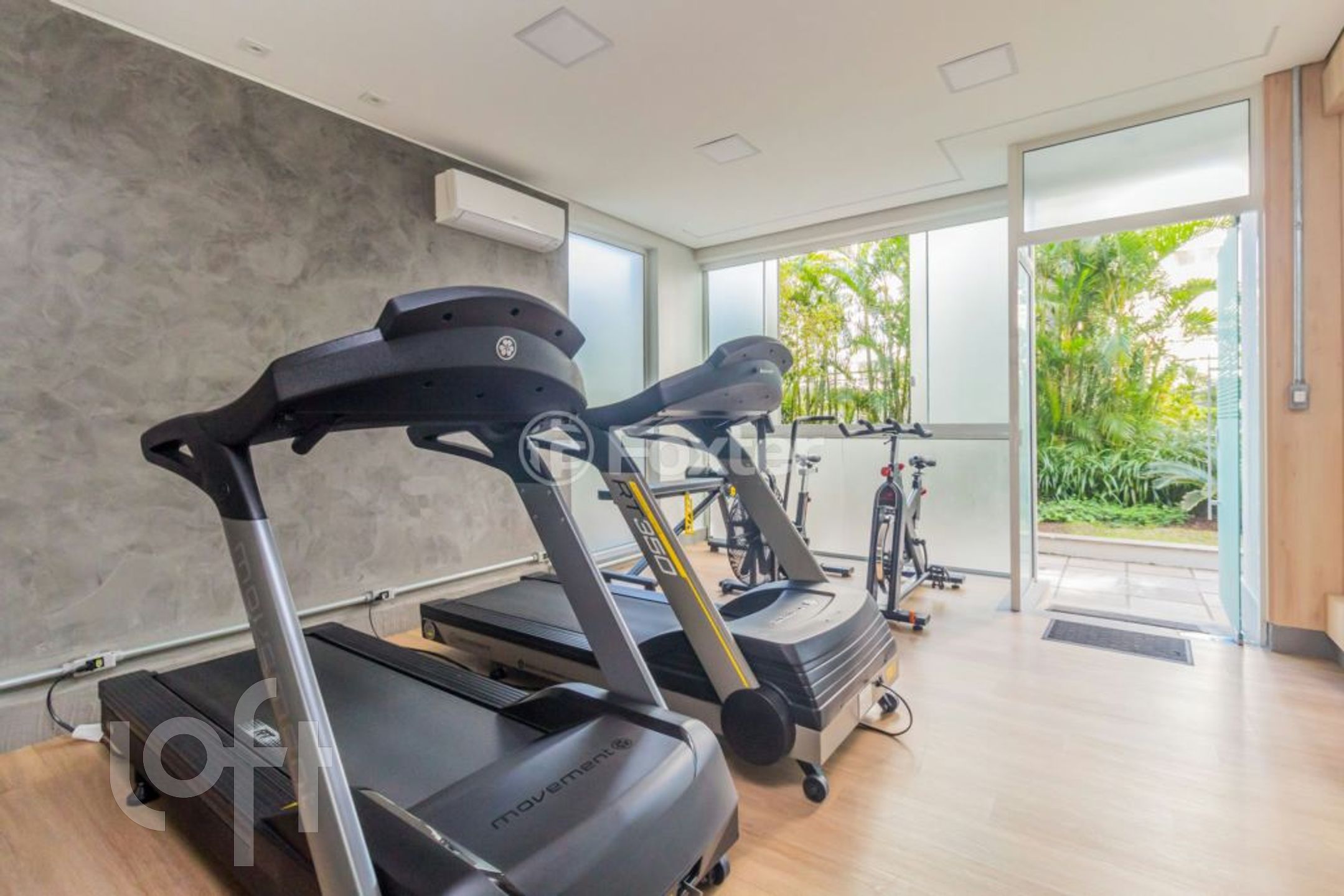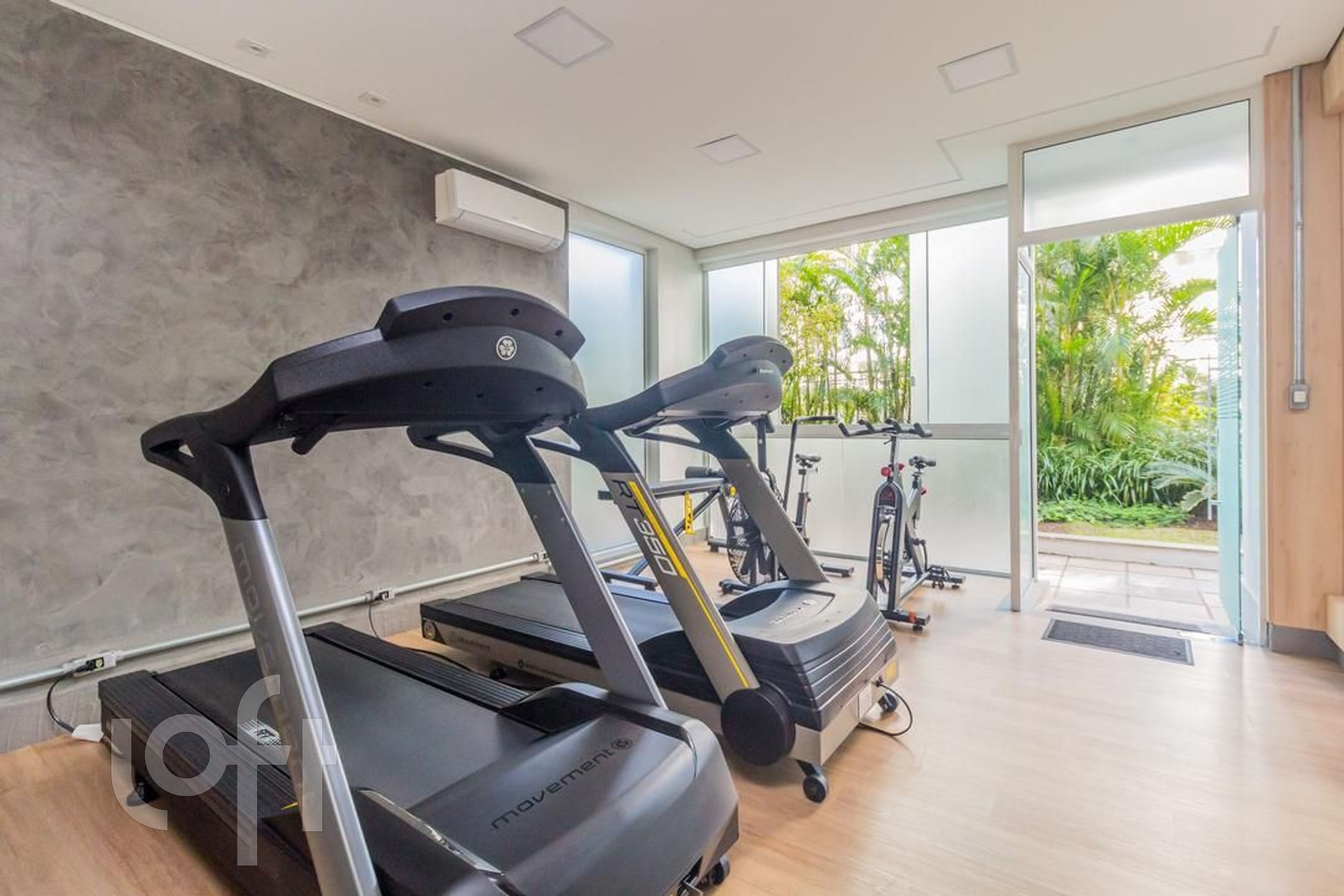 Três vagas de garagem individuais, lado a lado. Edifício com gerador de energia elétrica.