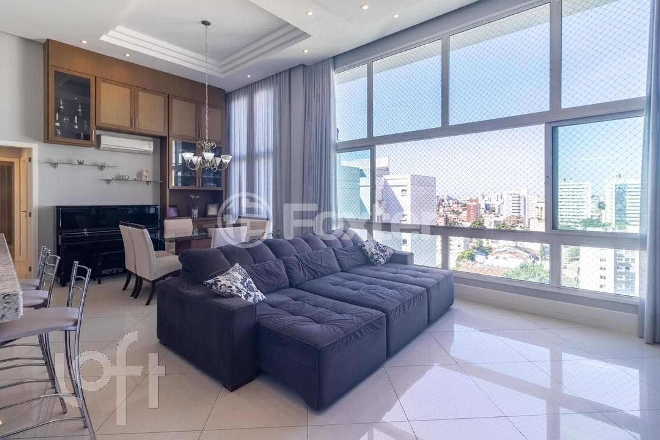 Excelente apartamento mobiliado decorado com 134.8 m² privativo, com três suítes,lavabo, lareira, gabinete, espaço com churrasqueira,cozinha com despensa, área de serviço com banheiro auxiliar. Sol da manhã com uma vista incrível, pé direito duplo.