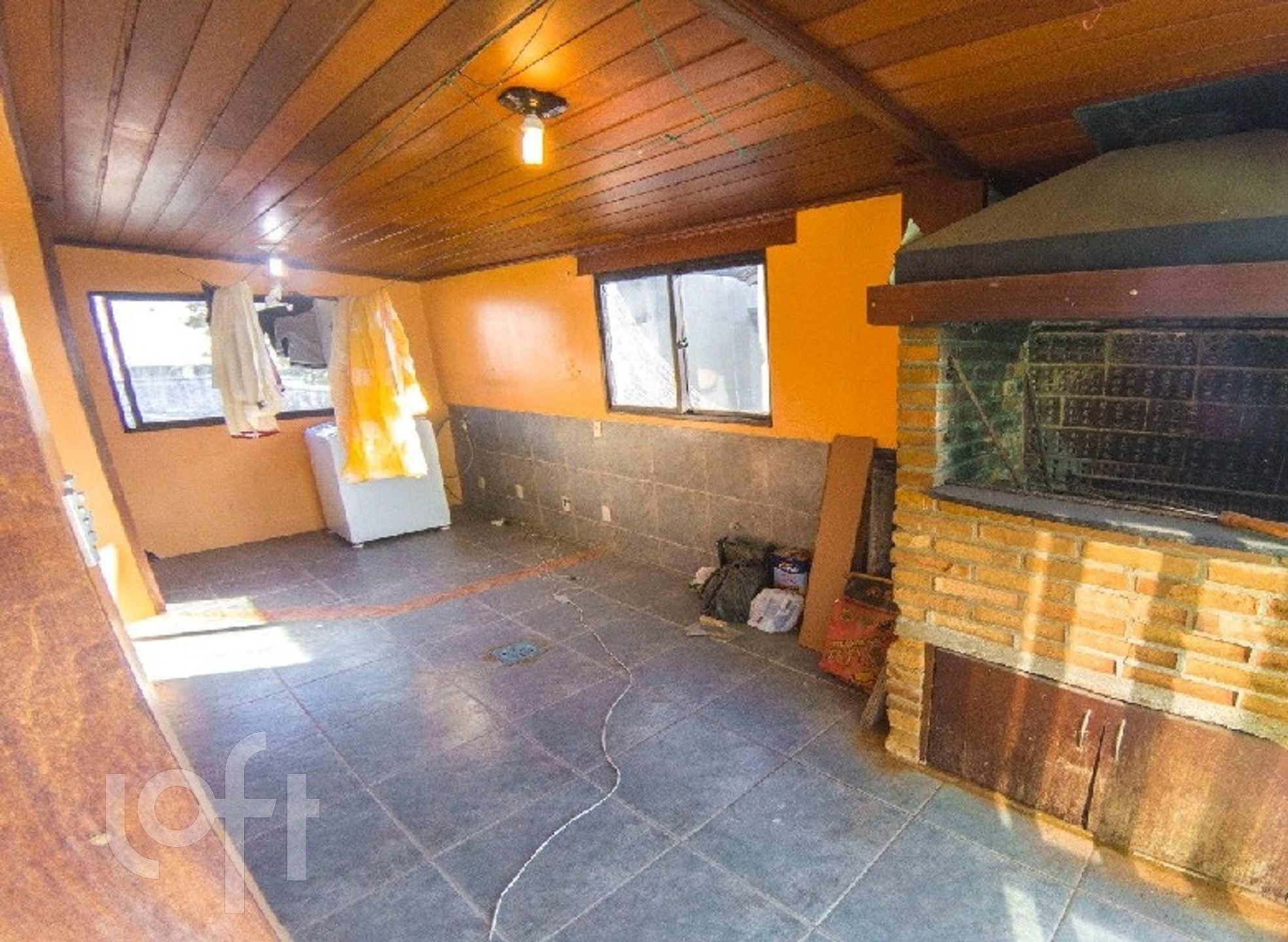 Parte superior com área de estar muito espaçosa, área de serviço, área coberta com churrasqueira, banheiro, terraço,1 box coberto e 3 lances de escada.
