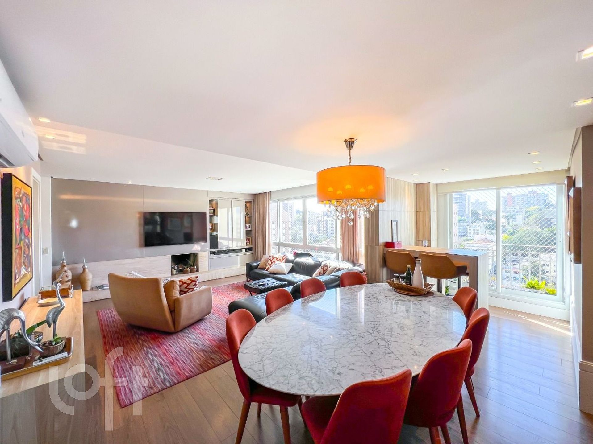 Algumas características do imóvel: Aceita Pet, Agua Quente, Area Servico, Banheiro Social, Churrasqueira, Copa Cozinha, Cozinha, Lareira, Lavabo, Leste, Living Hall, Mobiliado, Sacada Com Churrasqueira, Semi Mobiliado, Suite Master, Vista Panoramica, W C Empregada