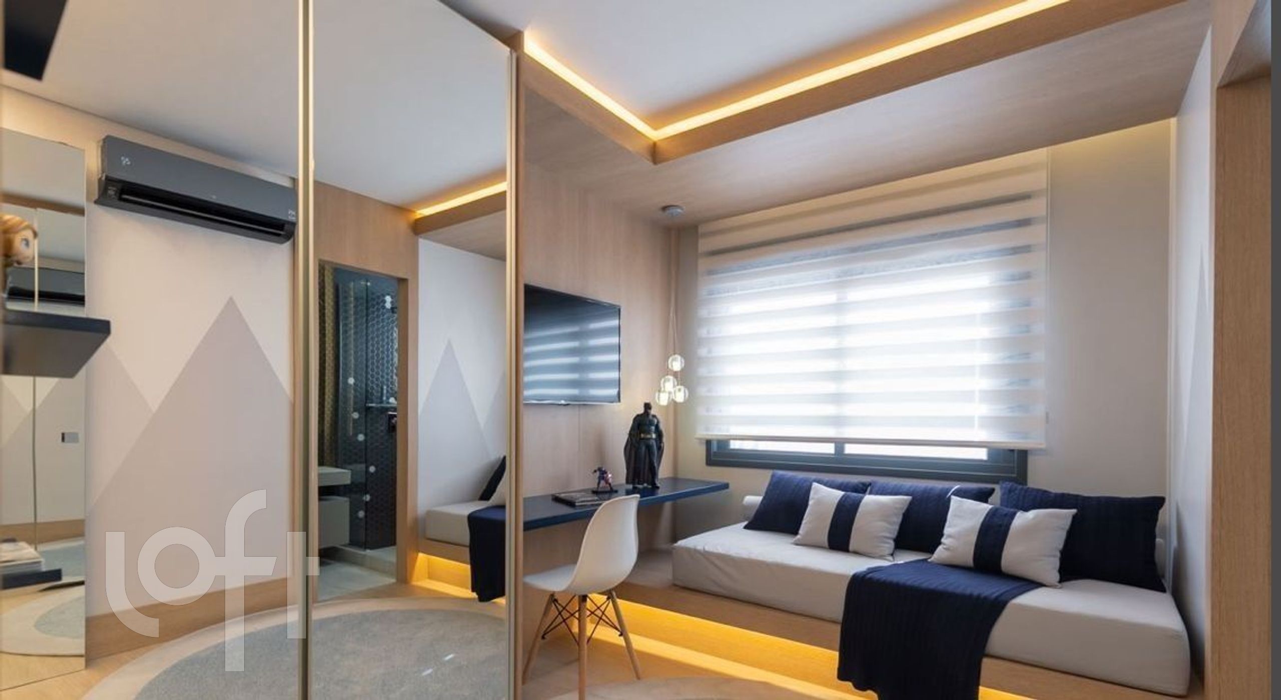 Na área íntima, são 3 suítes confortáveis, sendo uma delas adaptada como escritório, podendo ser revertida facilmente para dormitório.
