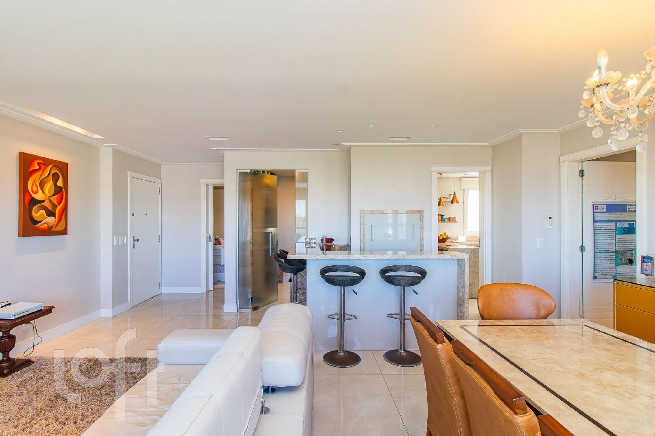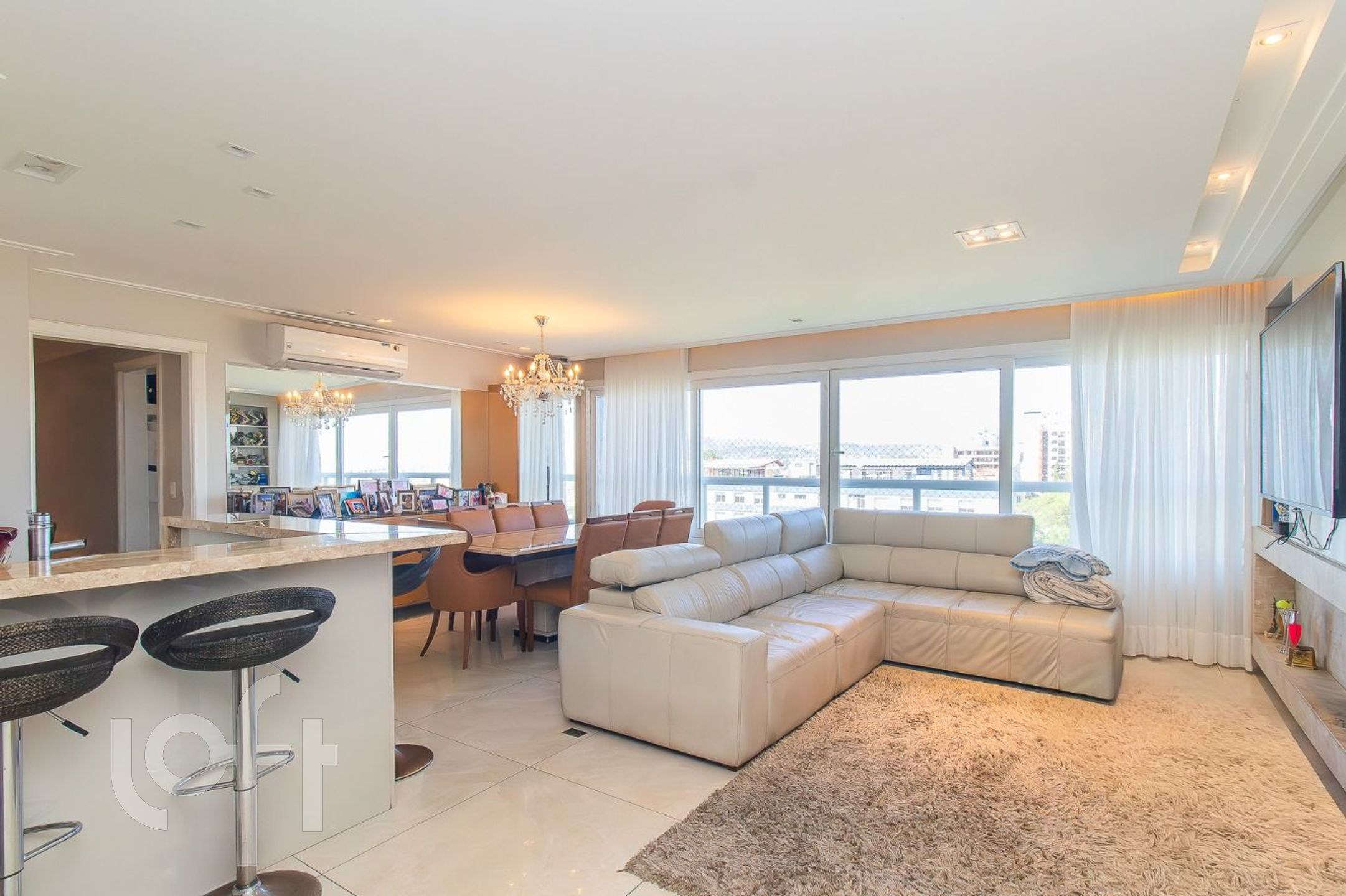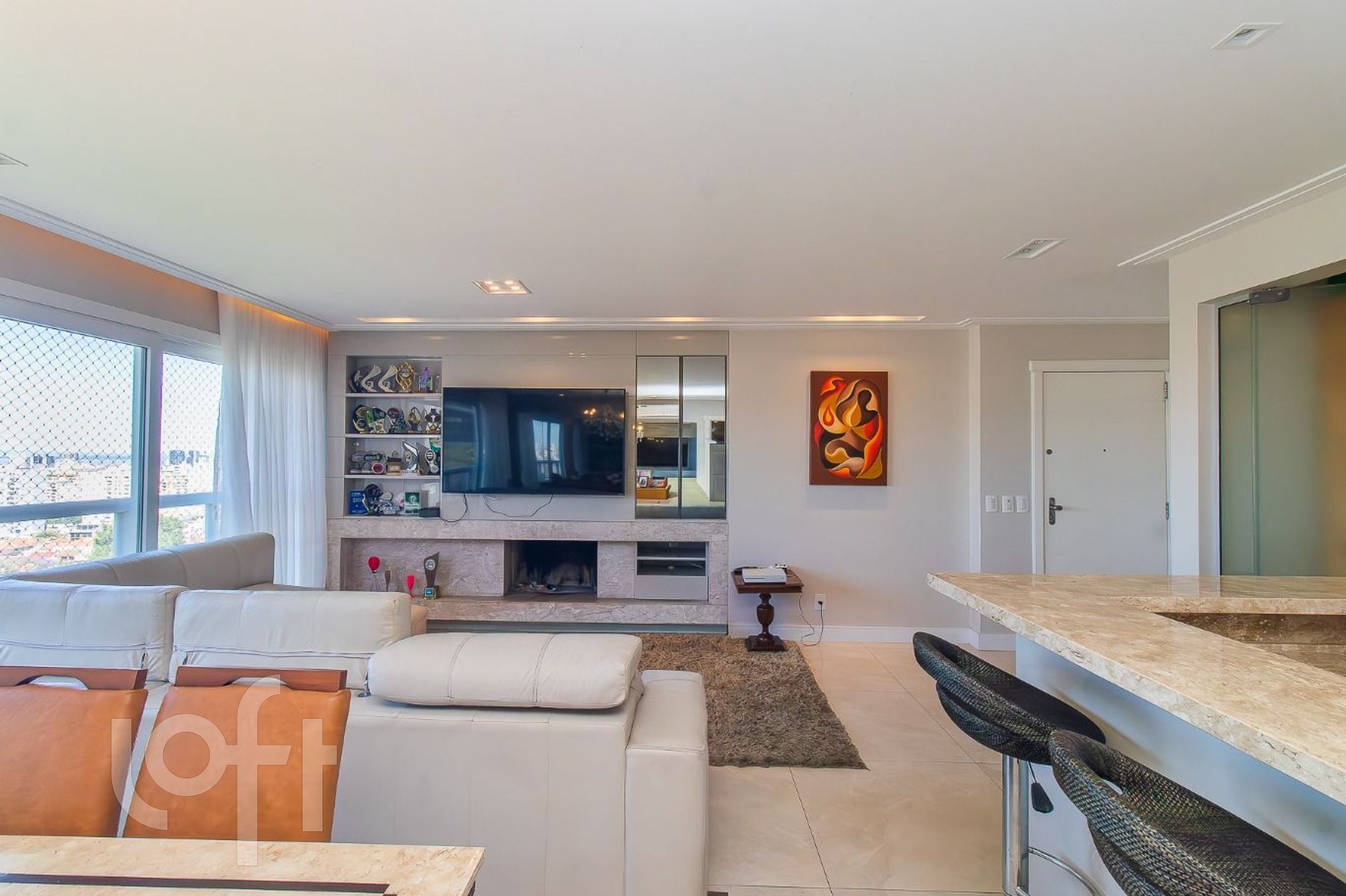 Imóvel possui lavabo, living para dois ambientes, lareira e churrasqueira.
