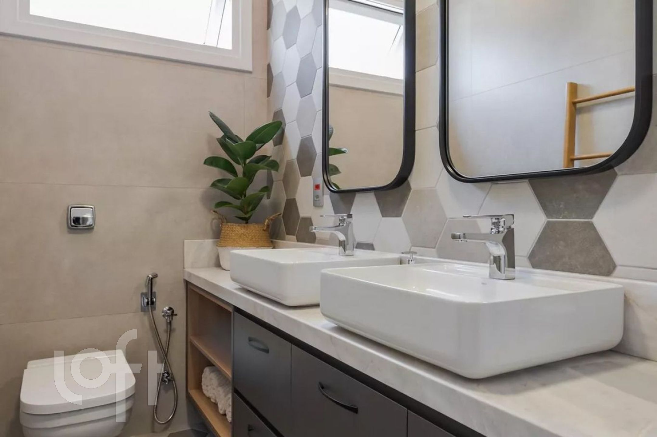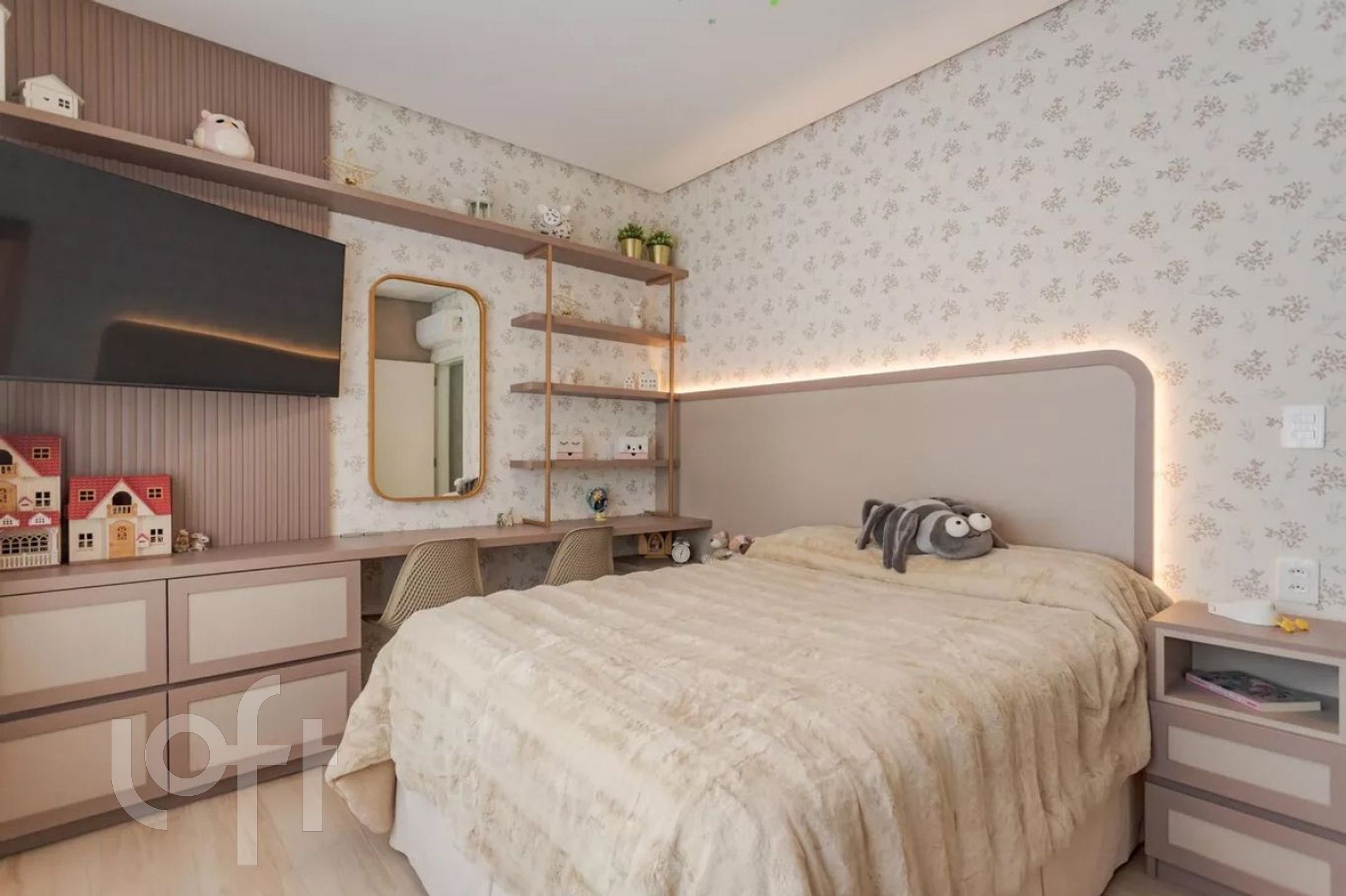 O living para dois ambientes é ideal pra quem gosta de receber, e o hall de entrada com lavabo deixa tudo ainda mais elegante. A cozinha americana integra os espaços e traz aquela praticidade do dia a dia.