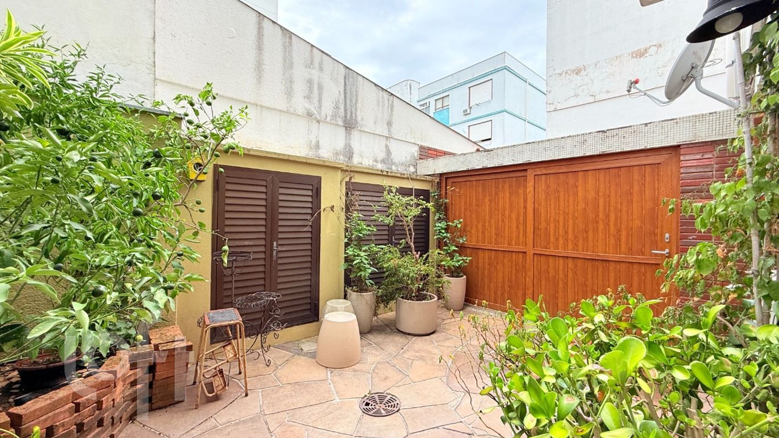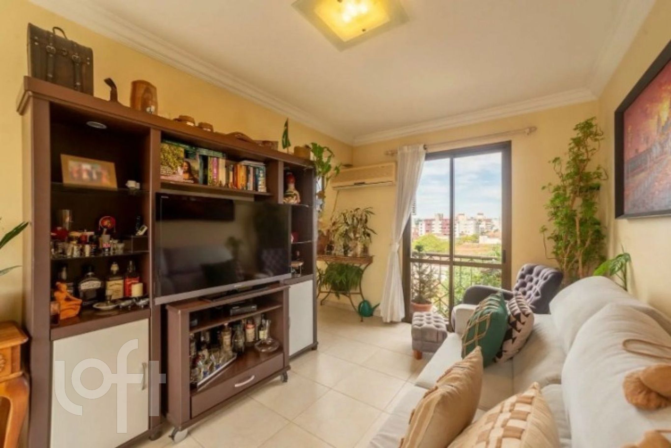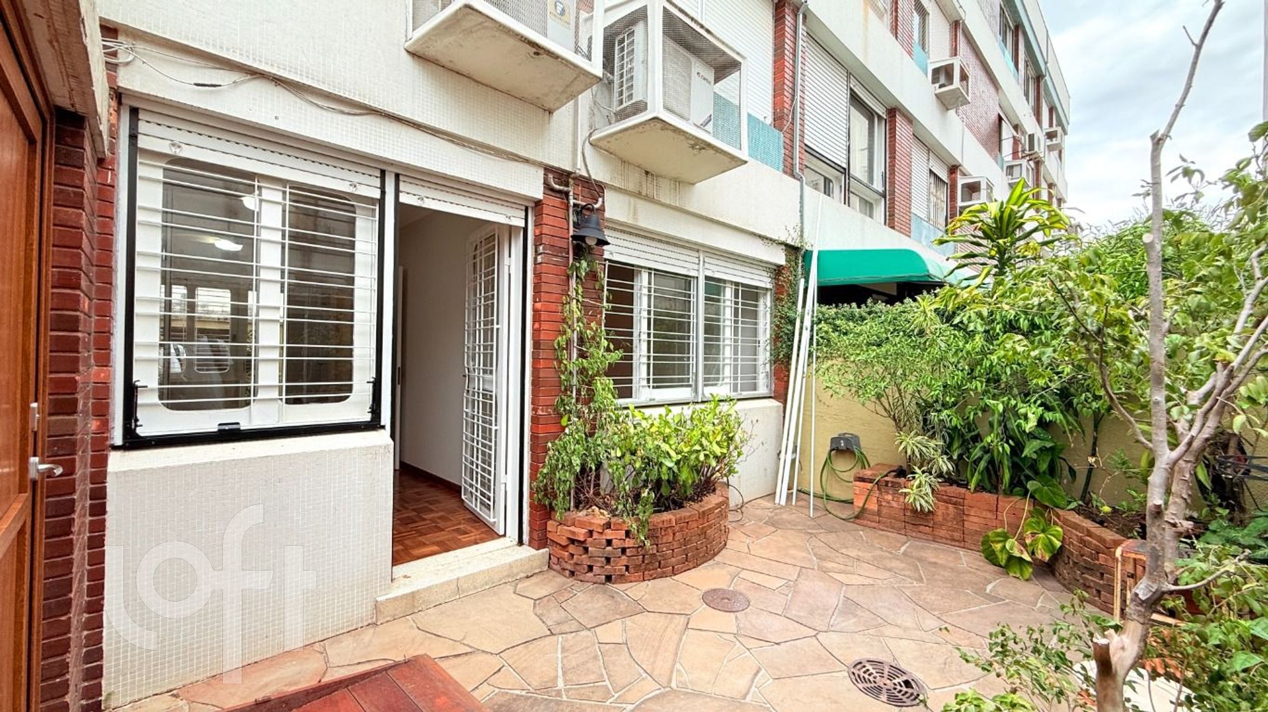 Hall, living amplo para 02 ambientes, banheiro social, cozinha com armários , área de serviço separada e um pátio privativo, localizado na parte nobre do bairro Menino Deus.