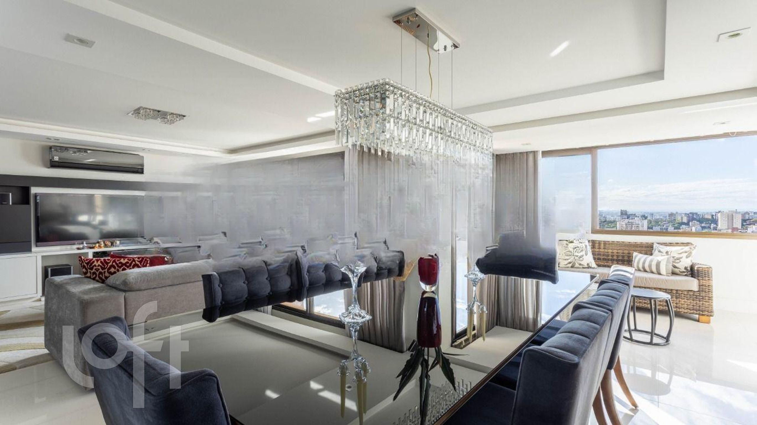 Algumas características do imóvel: Aceita Pet, Agua Quente, Area Servico, Banheiro Social, Churrasqueira, Cozinha, Lareira, Lavabo, Leste, Mobiliado, Piscina, Sacada Com Churrasqueira, Sala Jantar, Semi Mobiliado, Suite Master, Vista Panoramica, W C Empregada