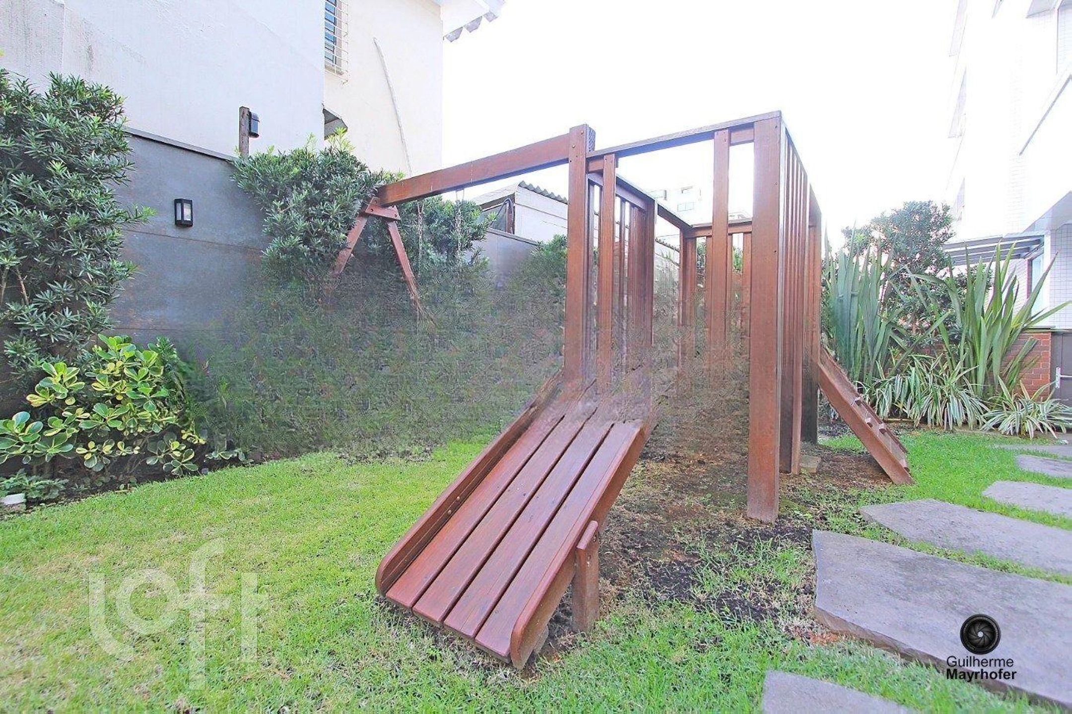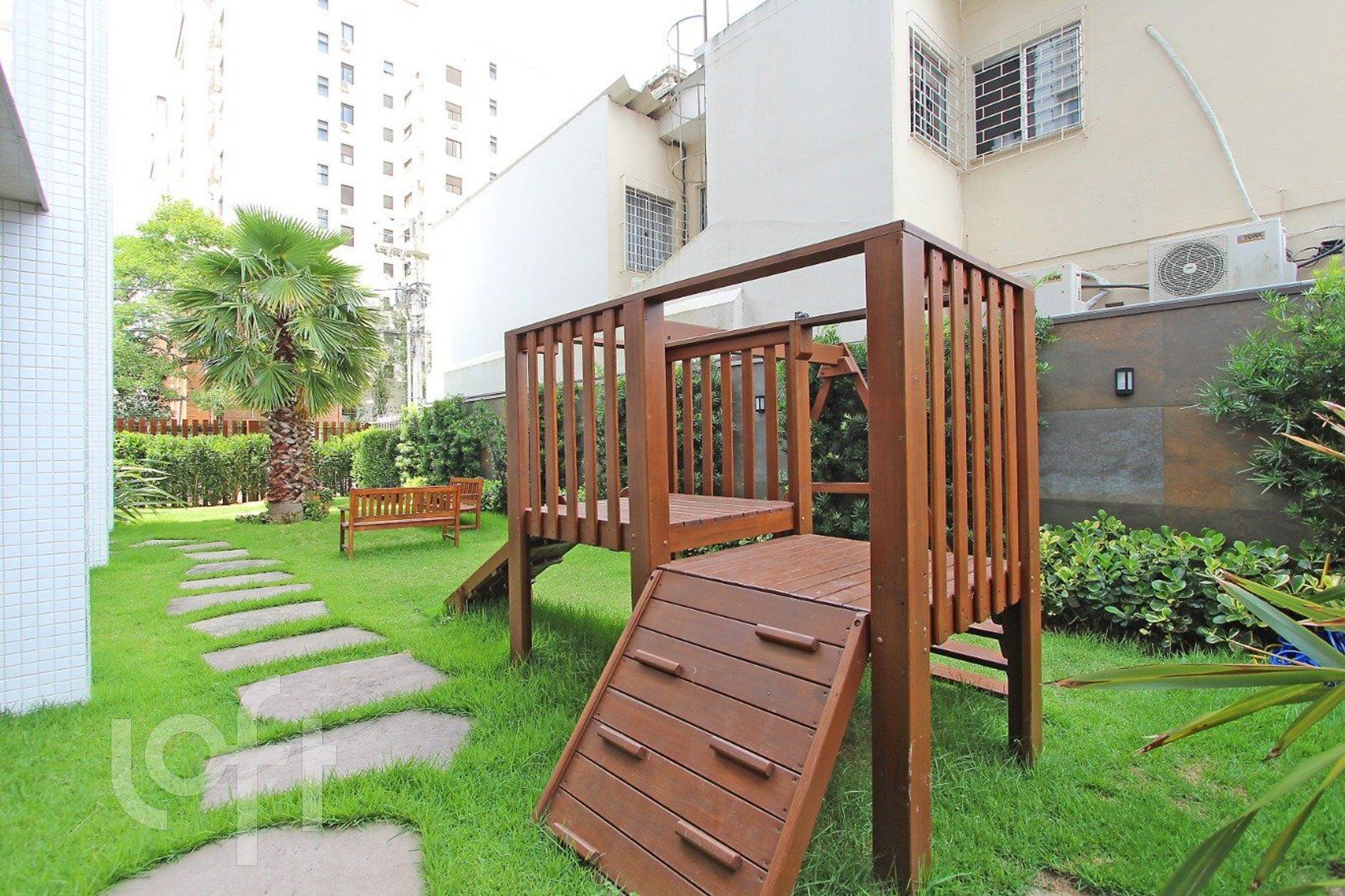 Condomínio com piscina, salão de festas, playground e academia.