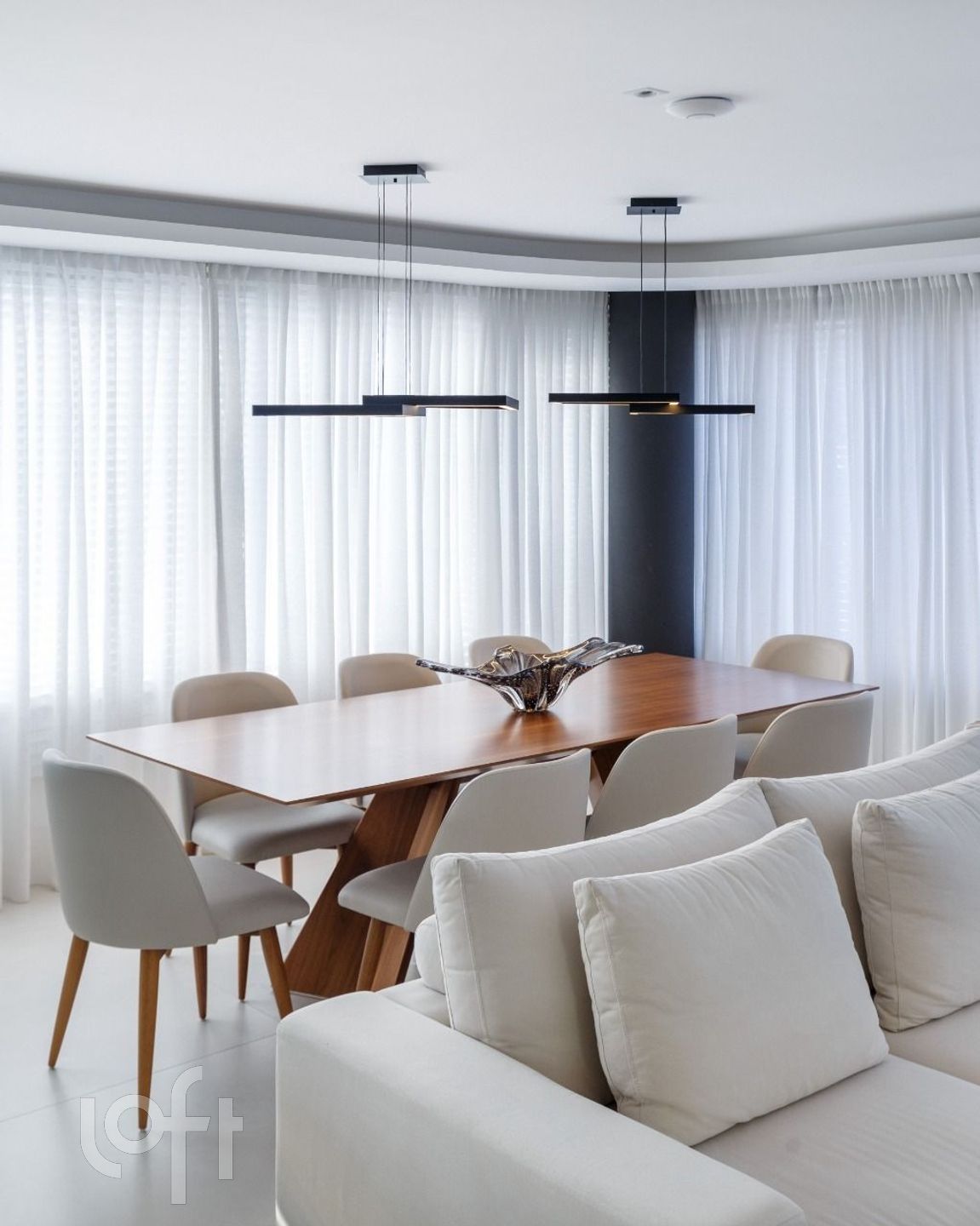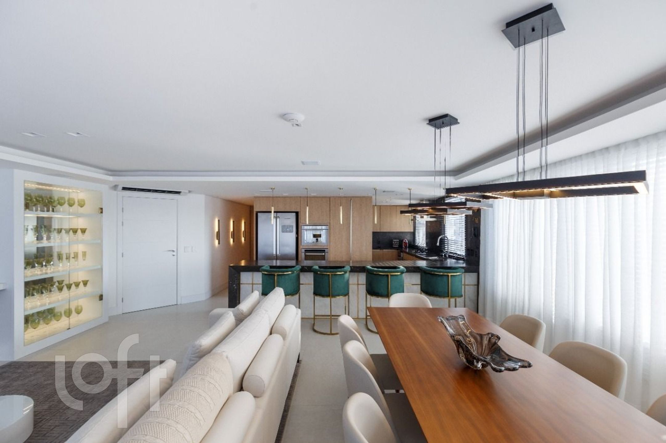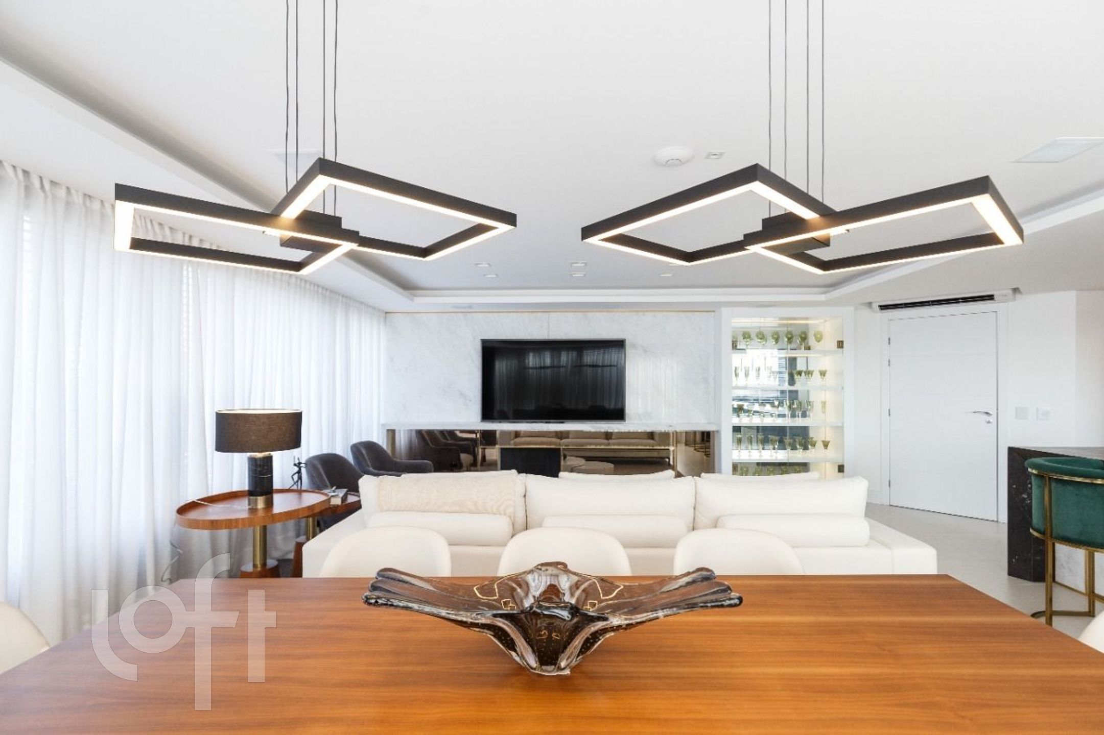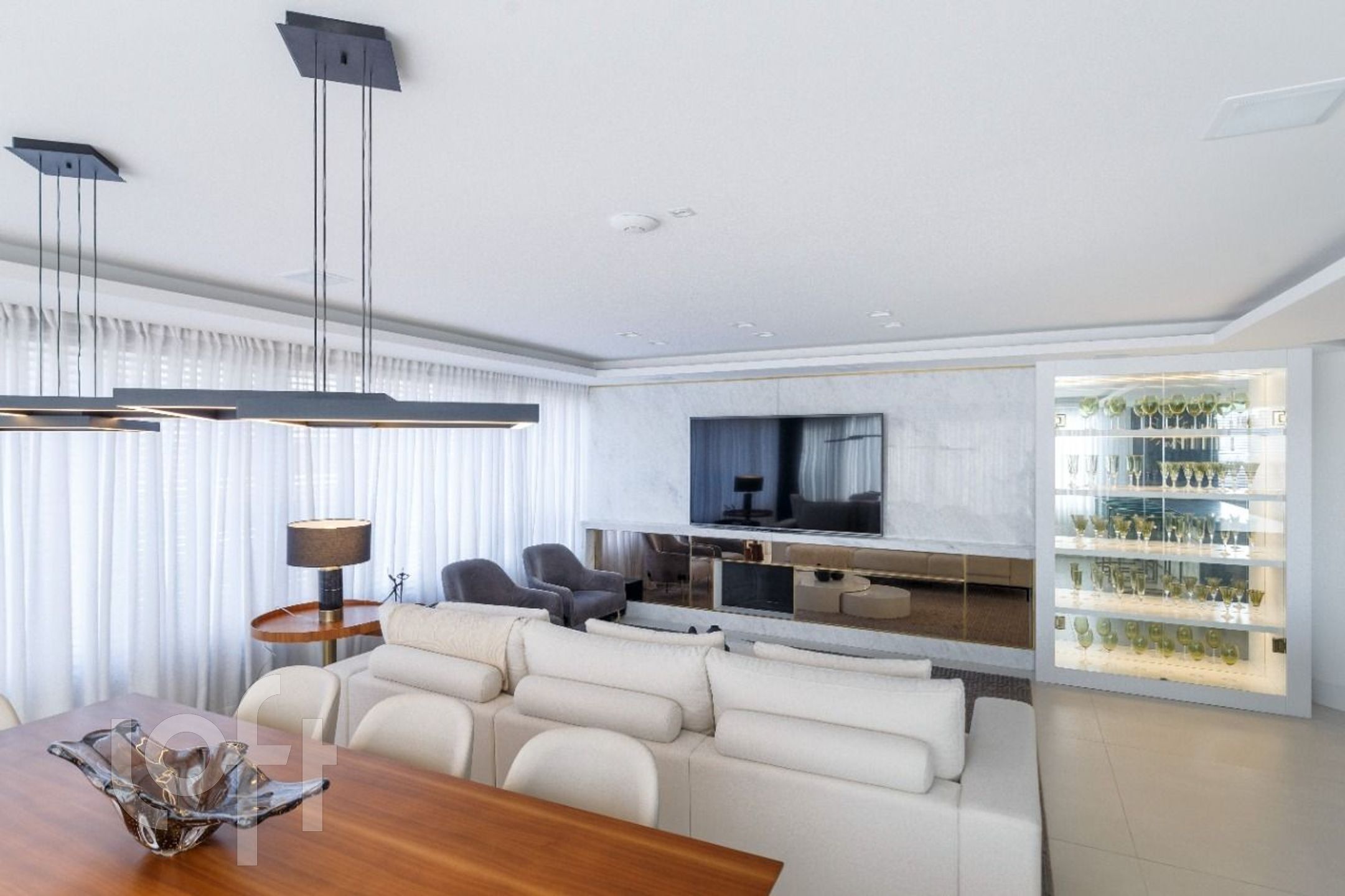 Amplo living para 3 ambientes com lareira, churrasqueira, vista panorâmica e um belo sol norte em toda a extensão do imóvel.