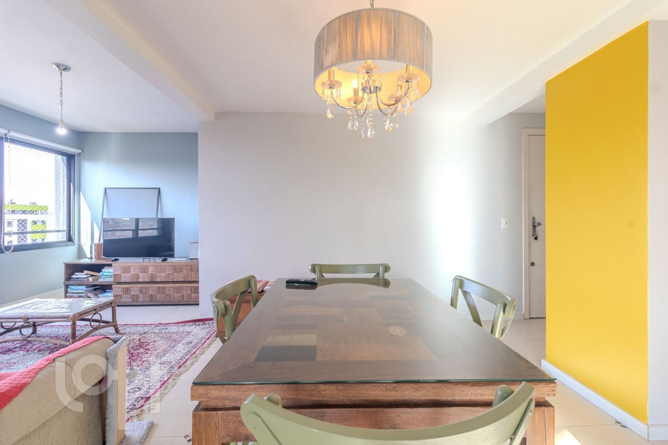 O imóvel é distribuído em living para 3 ambientes, sala de jantar, sala de estar e sala íntima com lareira e espaço coworking.