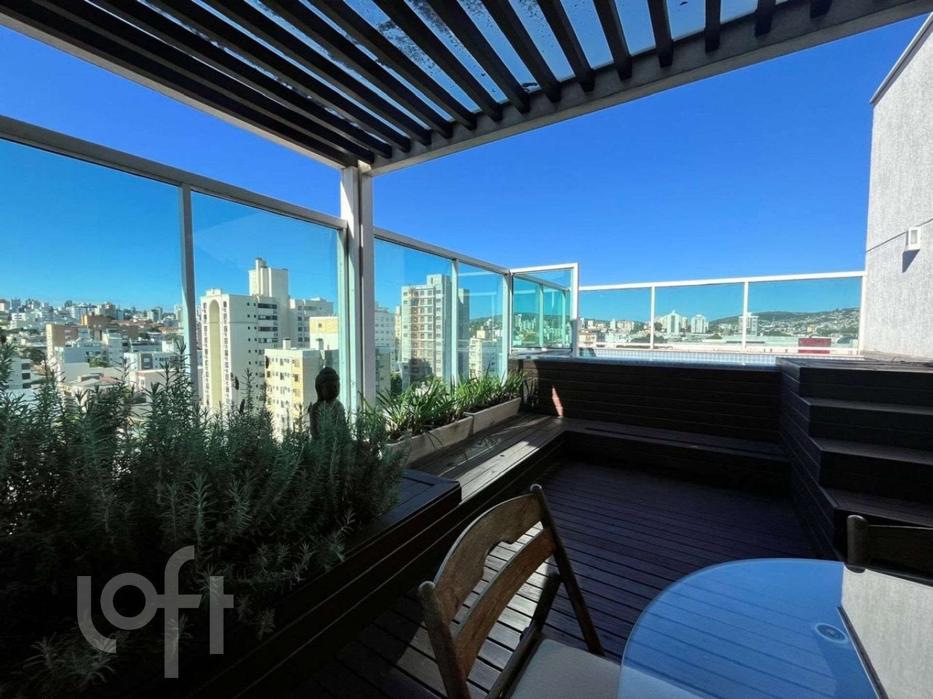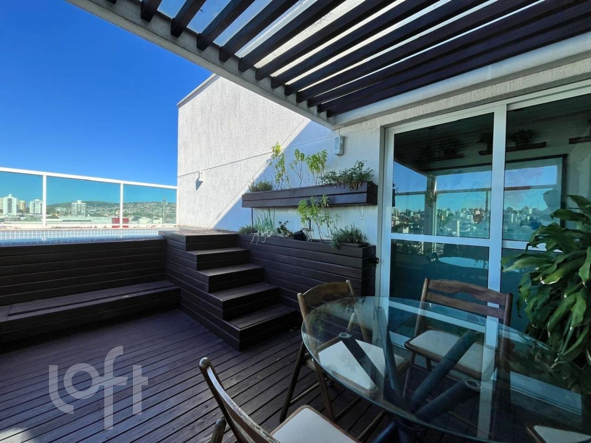 Cobertura com 4 dormitórios a venda no bairro Jardim Botânico. Elevador atende os dois andares! Andar superior com terraço aberto com piscina, living com cozinha integrada, churrasqueira e bancada, um dormitório e banheiro. O andar inferior conta com living para dois ambientes com lareira, lavanderia e 3 quartos, sendo um deles suíte. 2 vagas de garagem lado a lado. Prédio moderno, com hall de entrada, salão de festas e portaria virtual.