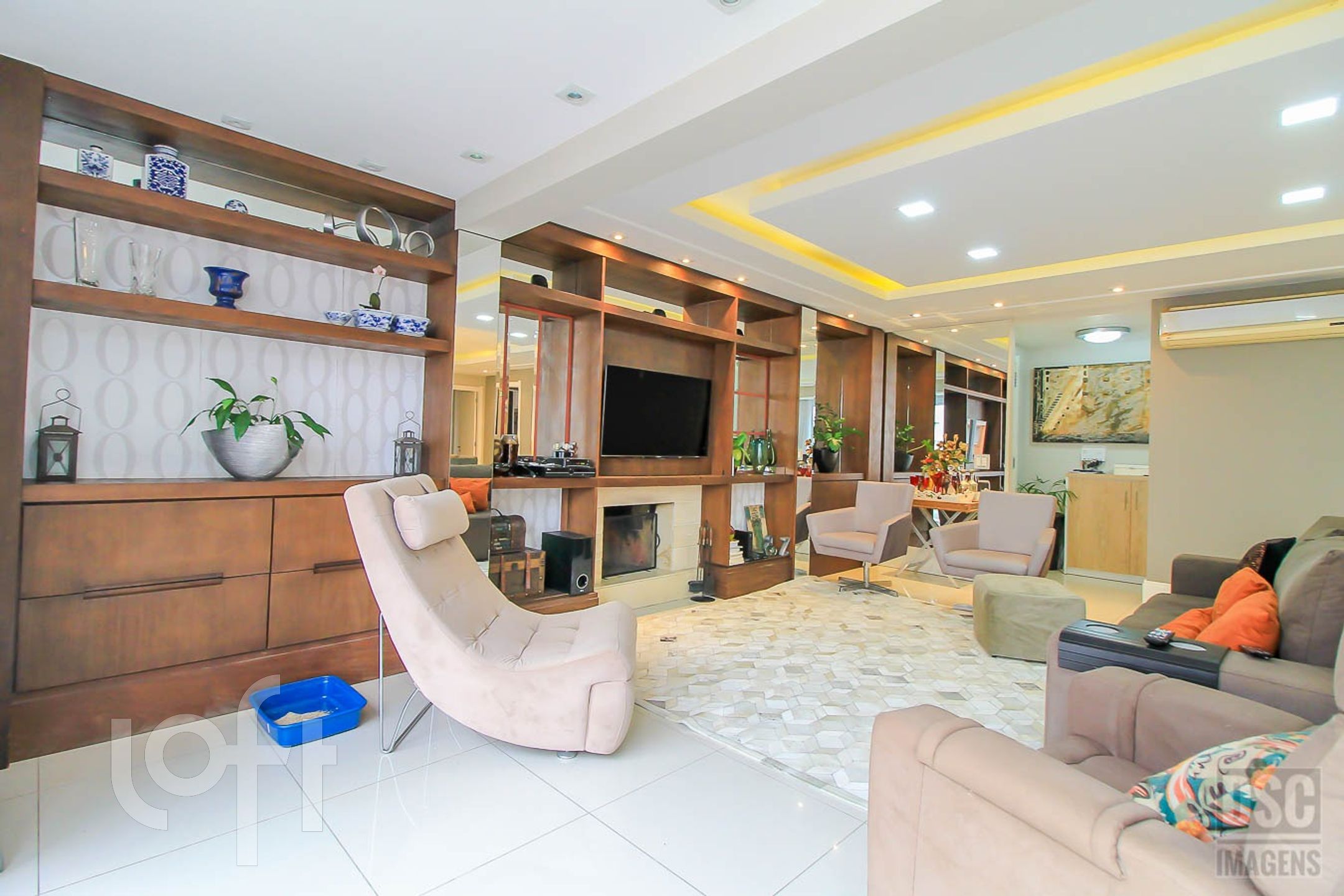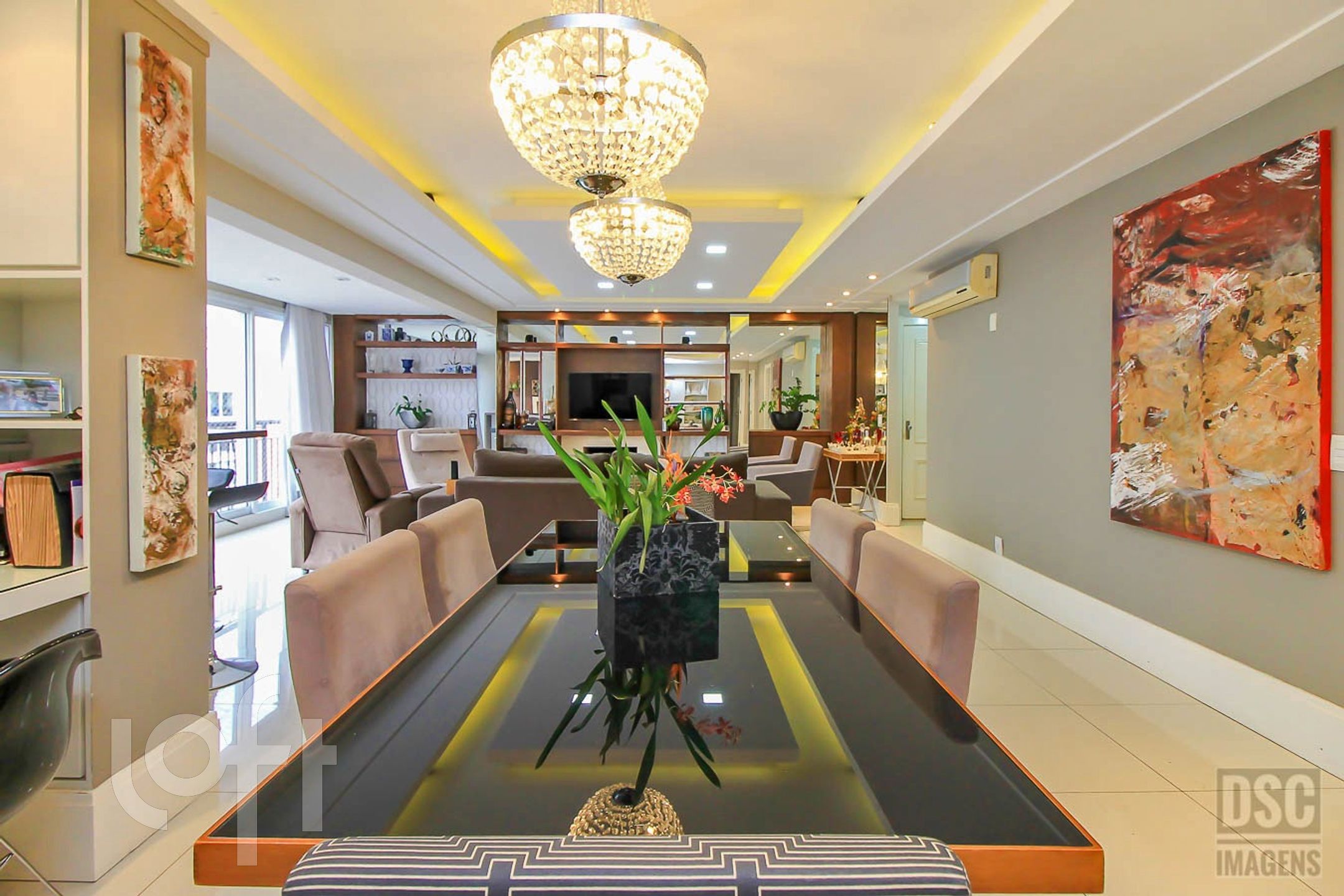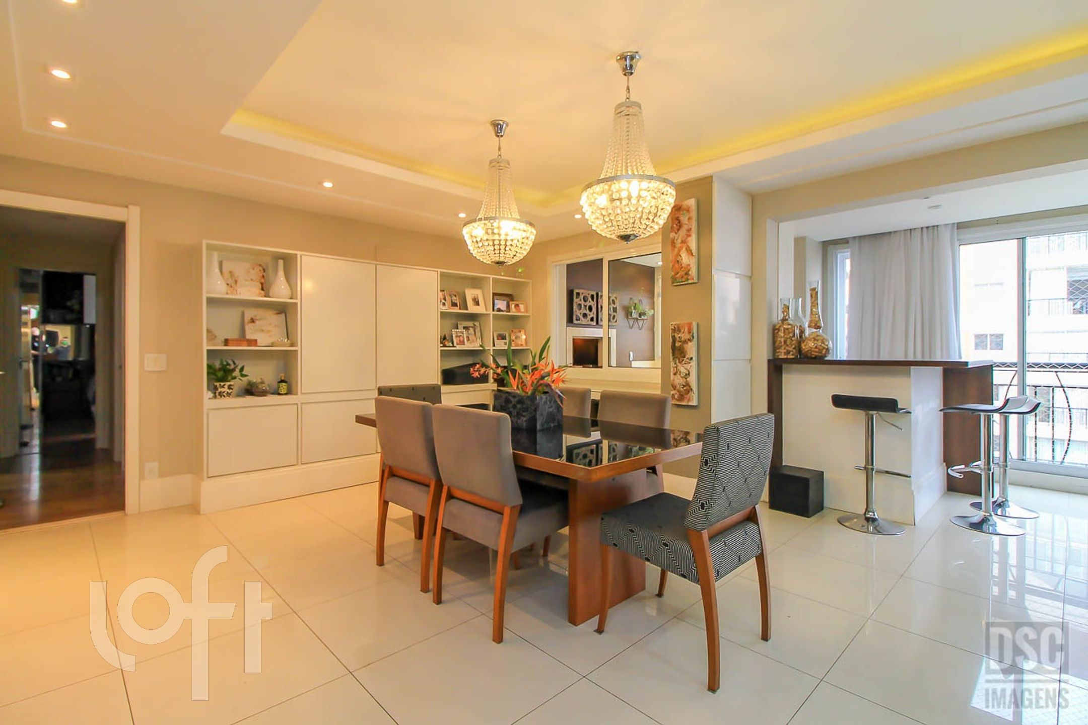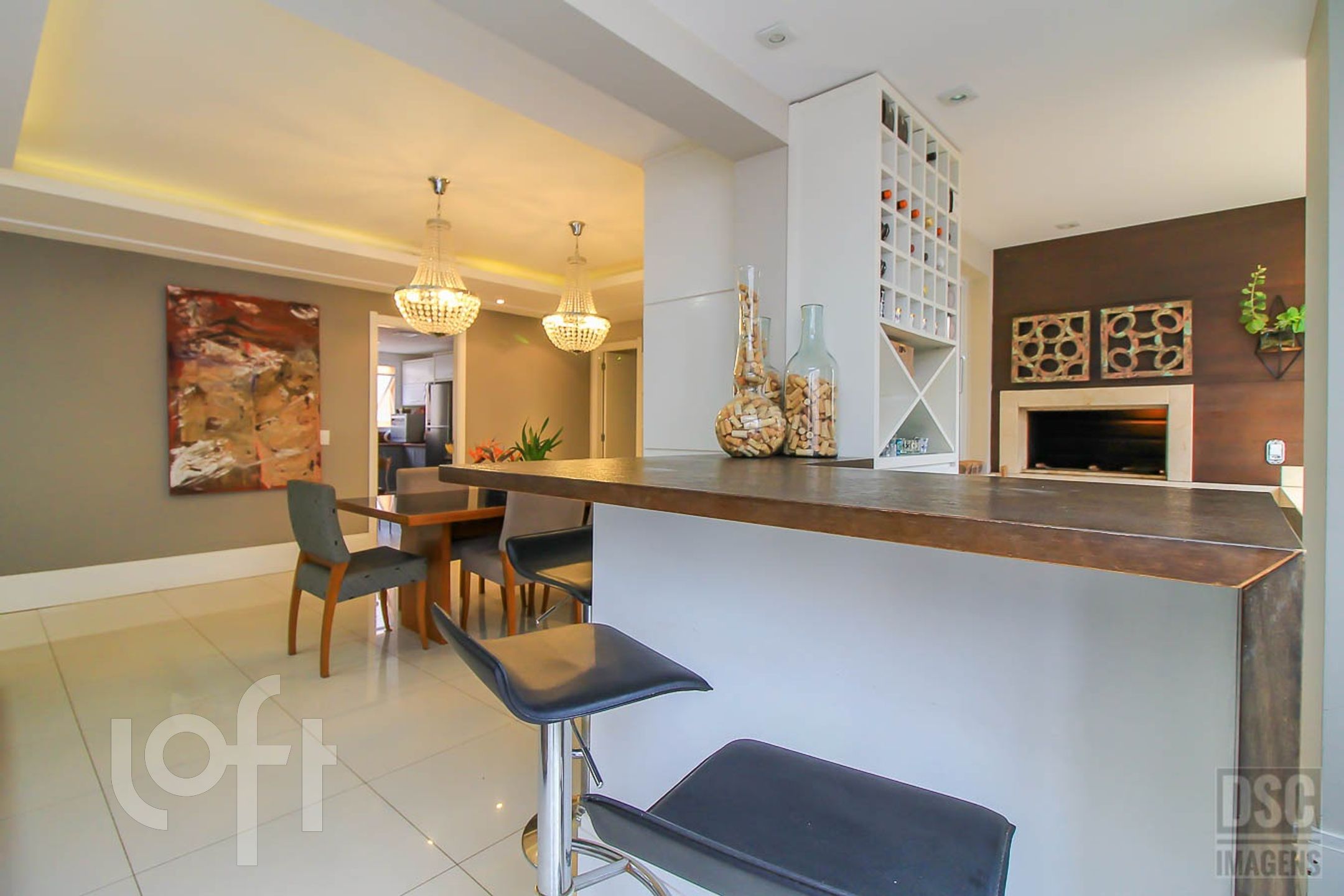 Algumas características do imóvel: Agua Quente, Area Servico, Banheiro Social, Bar, Churrasqueira, Cozinha, Dependenciade Empregada, Lareira, Lavabo, Living Hall, Oeste, Sacada Com Churrasqueira, Suite Master, Vista Panoramica, W C Empregada