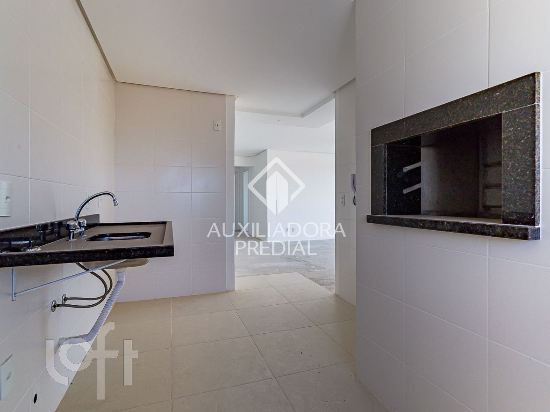 O living é amplo com sacada, cozinha com churrasqueira e área de serviço .