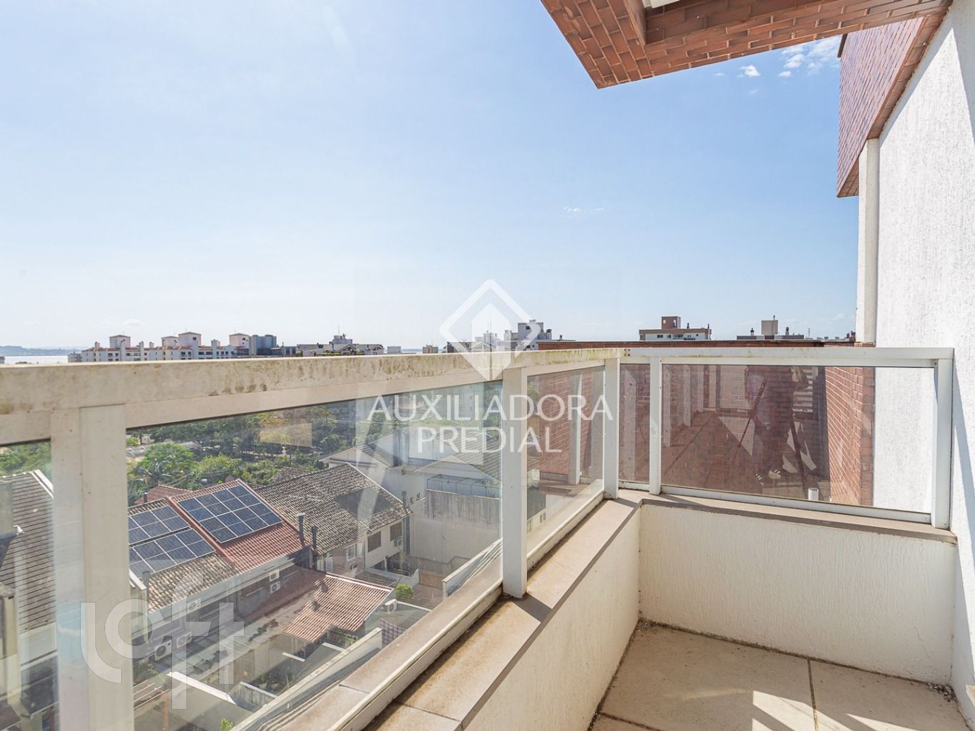 Na parte superior um living com sacada e um amplo terraço com vista para o rio e muito sol!