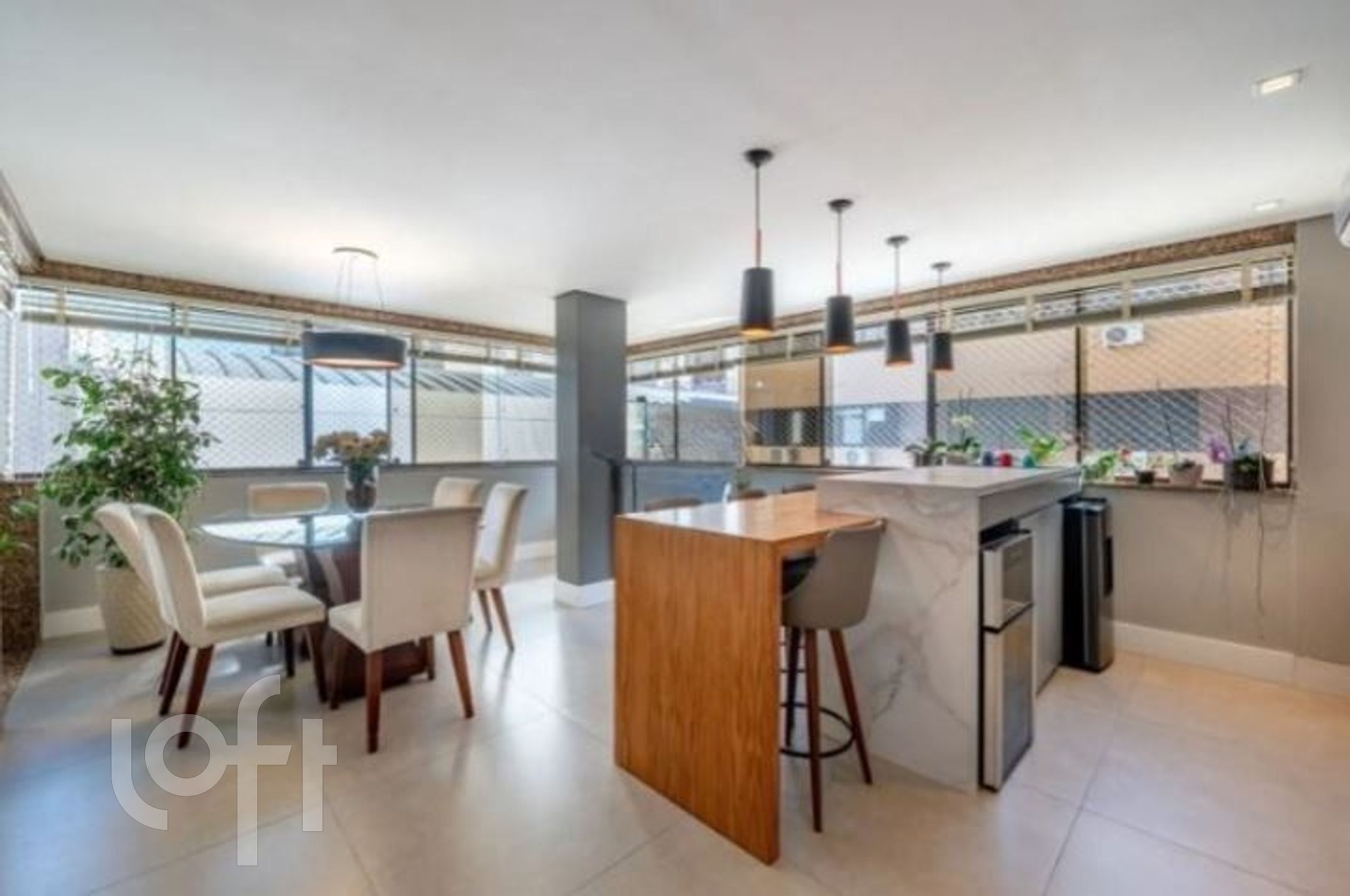 A copa e a cozinha são amplas e bem distribuídas, com lavanderia separada e dependência completa de empregada.