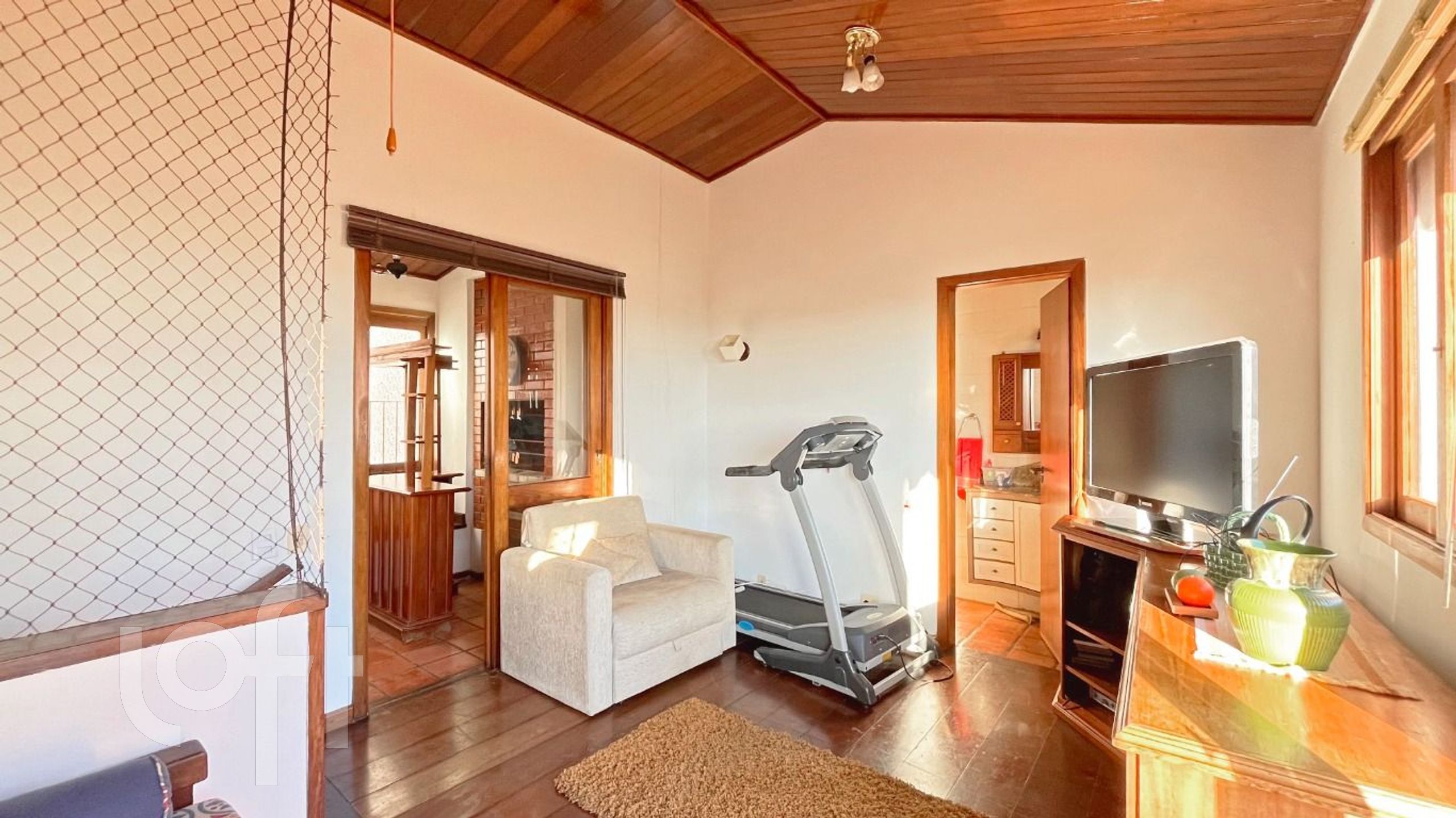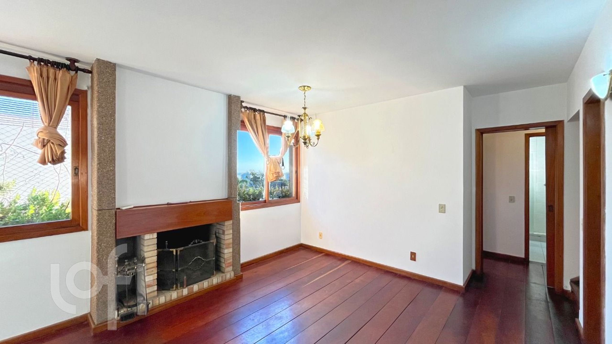 Living para 2 ambientes com lareira, gabinete, lavabo, 2 quartos, banheiro social, cozinha com copa e área de serviço. No 2º pavimento sala de estar, banheiro, espaço gourmet, terraço com vista para o rio. Garagem escriturada para 1 carro e depósito.
