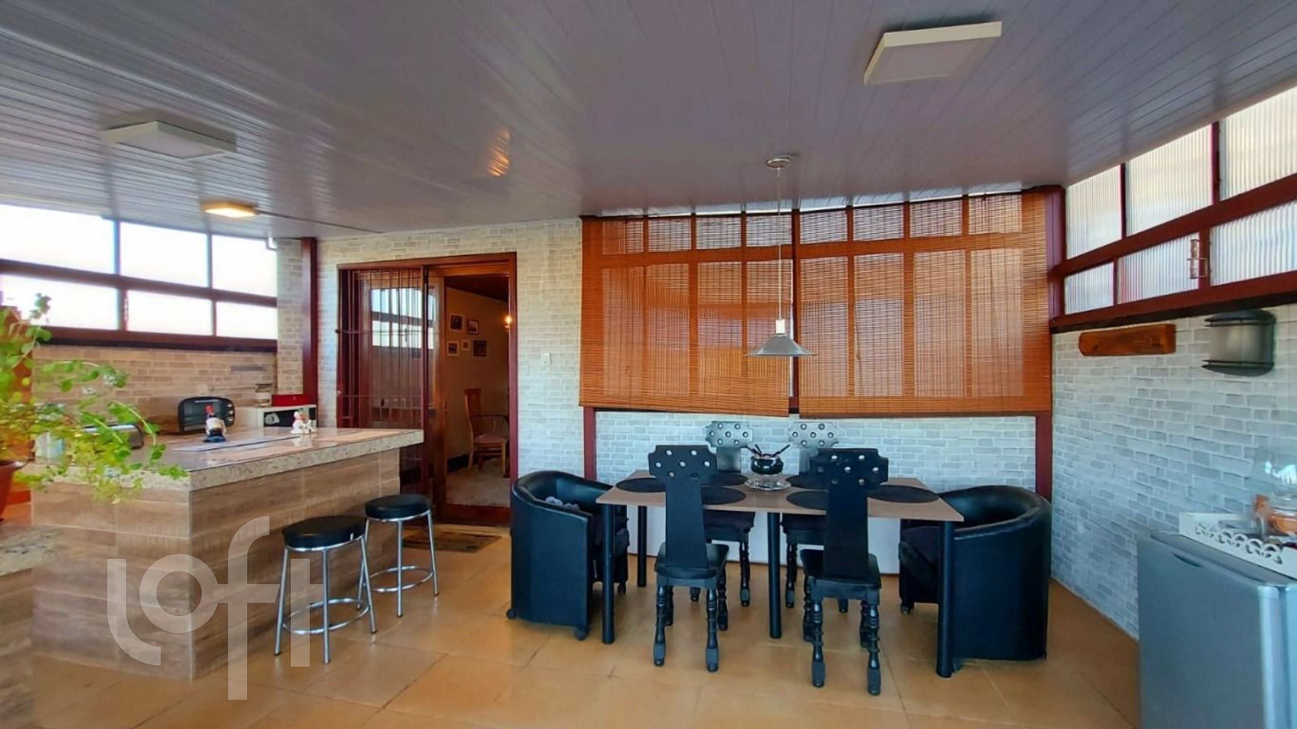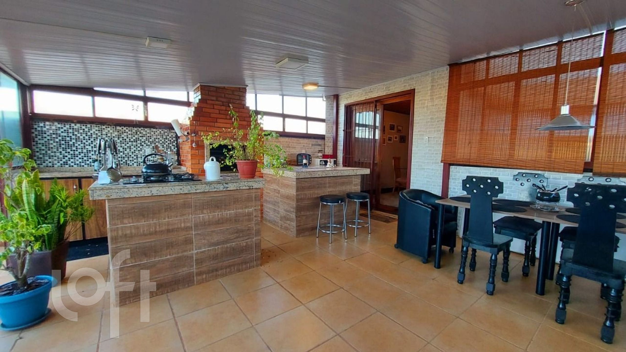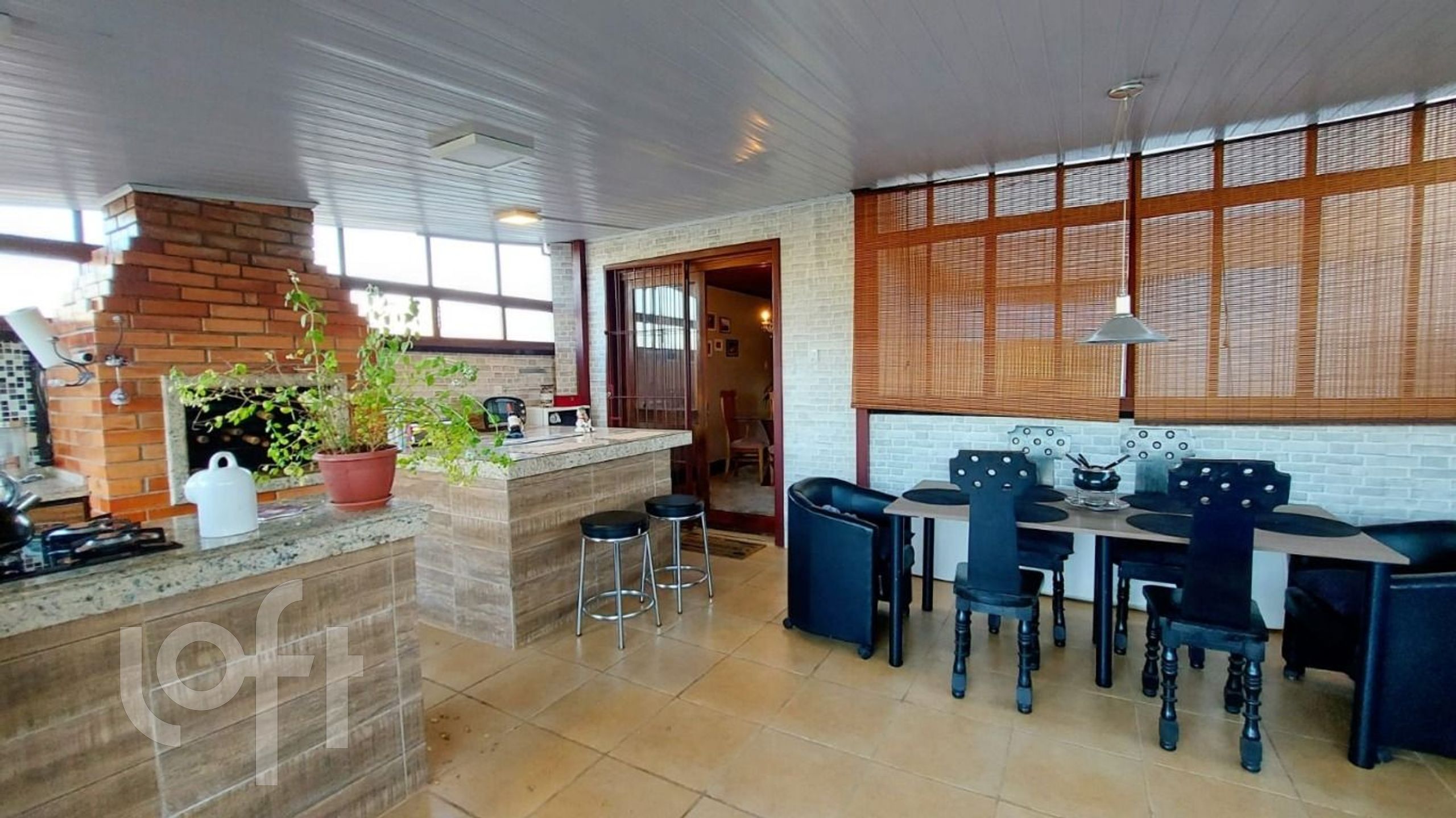 No 2º andar: ampla sala de estar com lareira, sala de jantar e lavabo. Área da cobertura, parcialmente fechada, contém um amplo ambiente para refeições e lazer, com cozinha completa e churrasqueira.