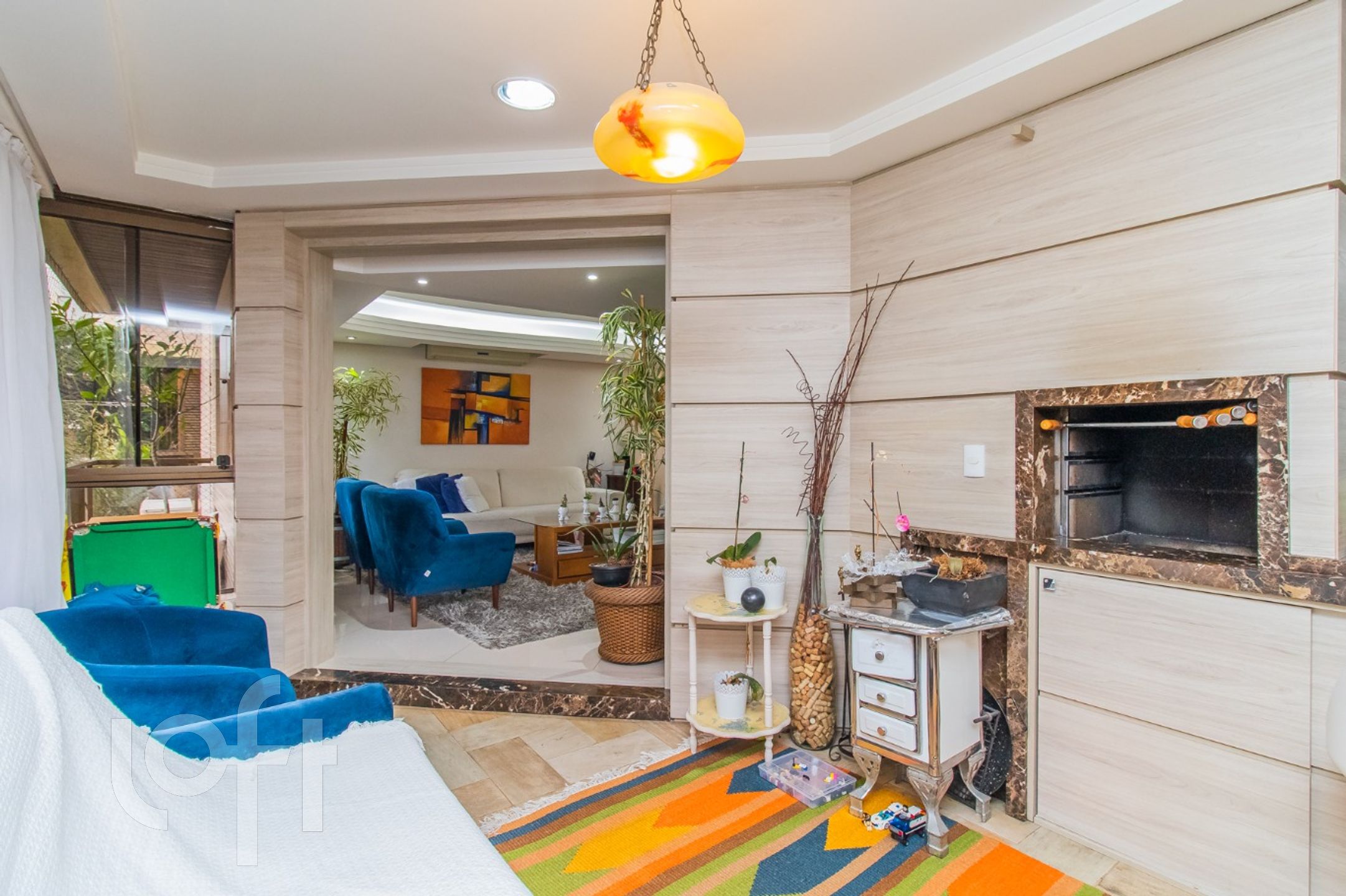 Algumas características do imóvel: Aceita Pet, Agua Quente, Area Servico, Banheiro Social, Churrasqueira, Cozinha, Dependenciade Empregada, Lareira, Lavabo, Norte, Sacada Com Churrasqueira, Suite Master, W C Empregada