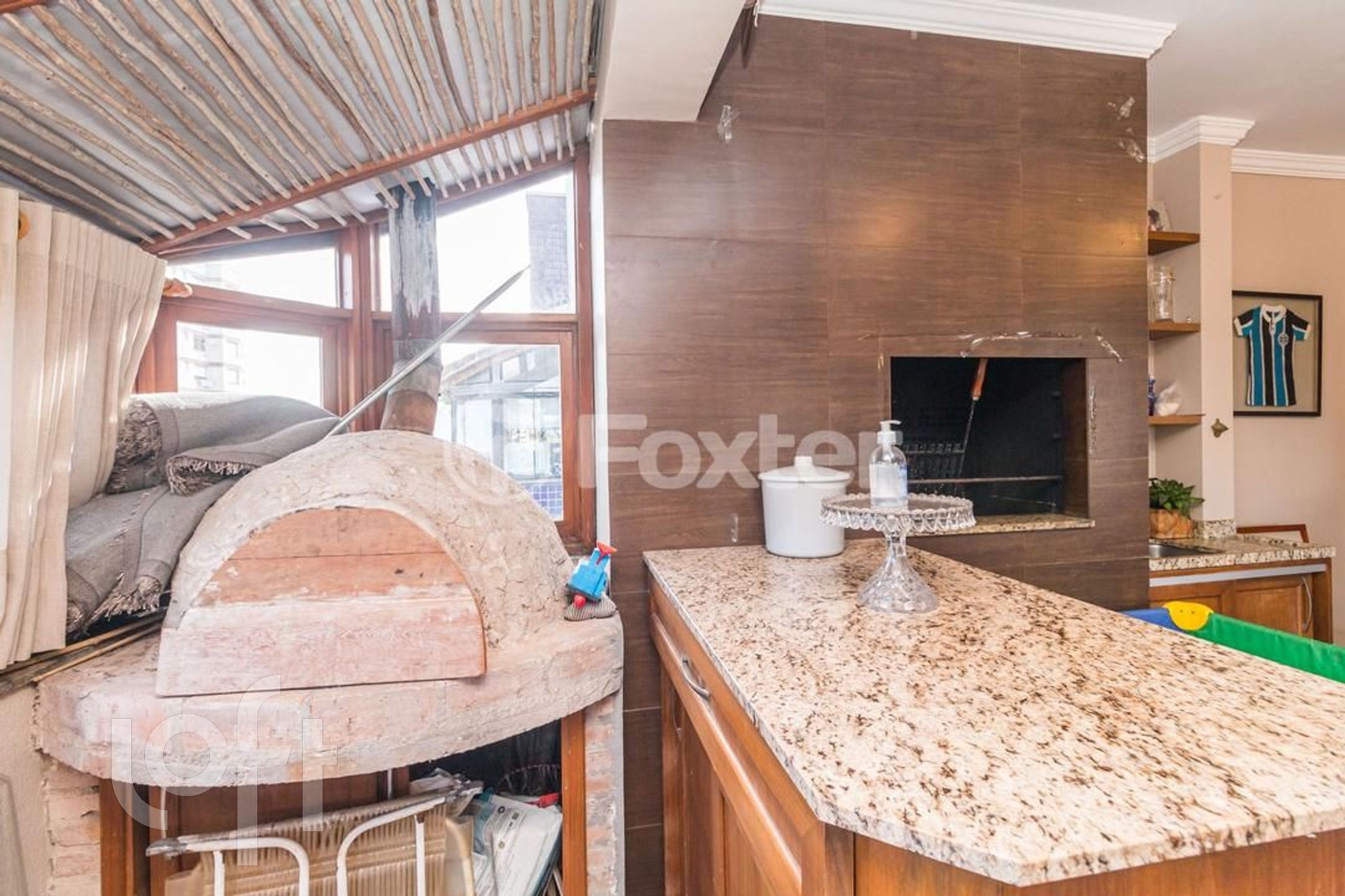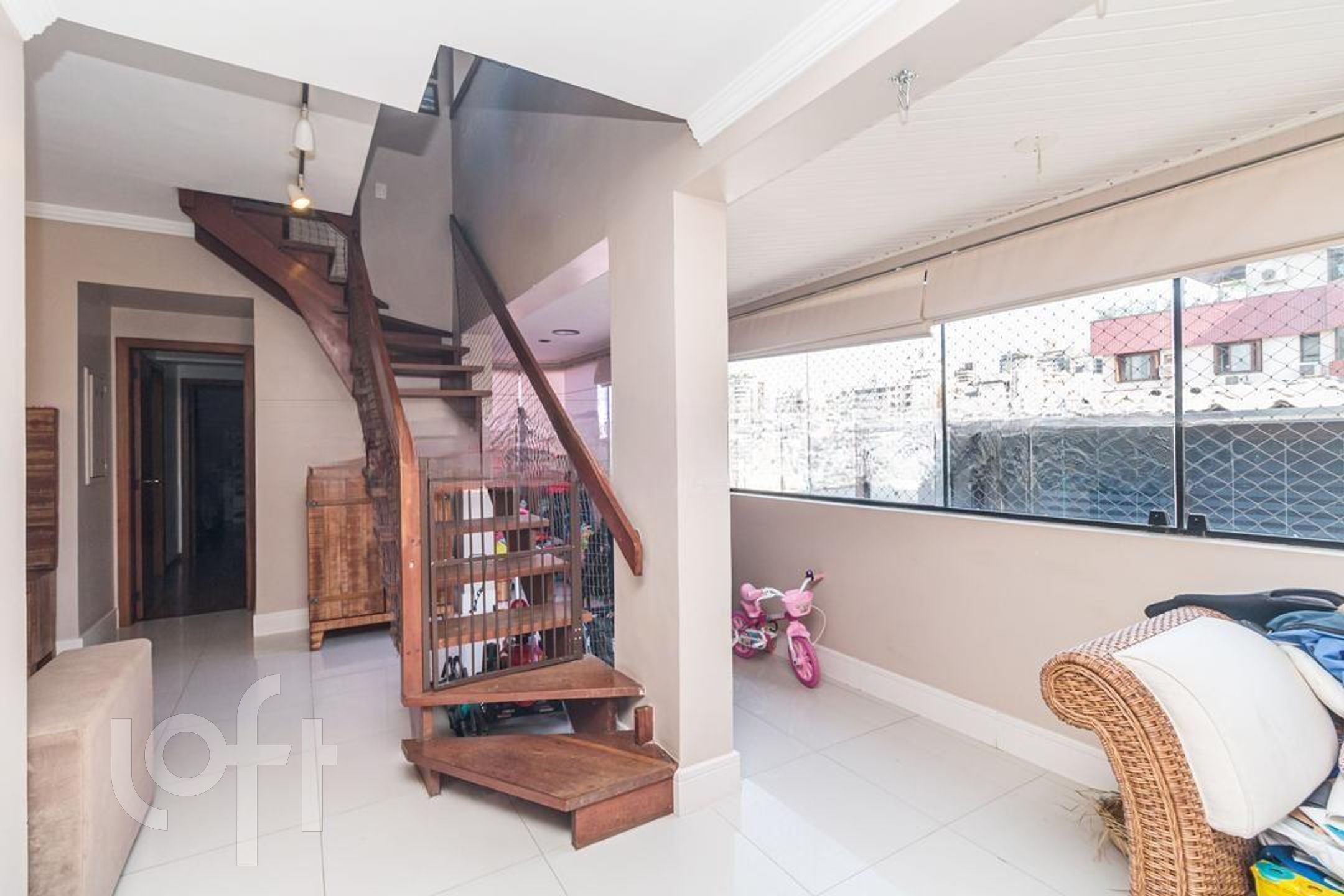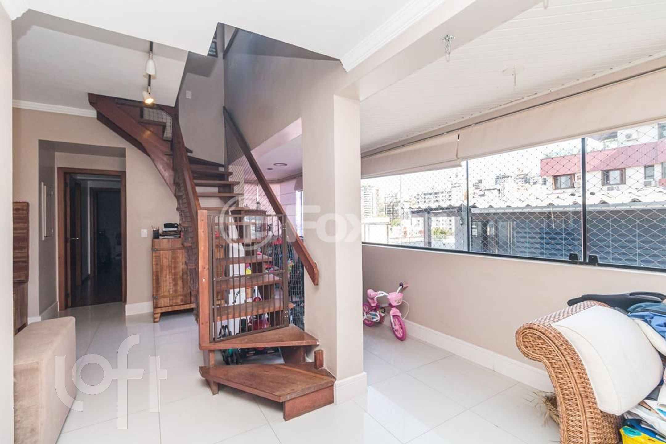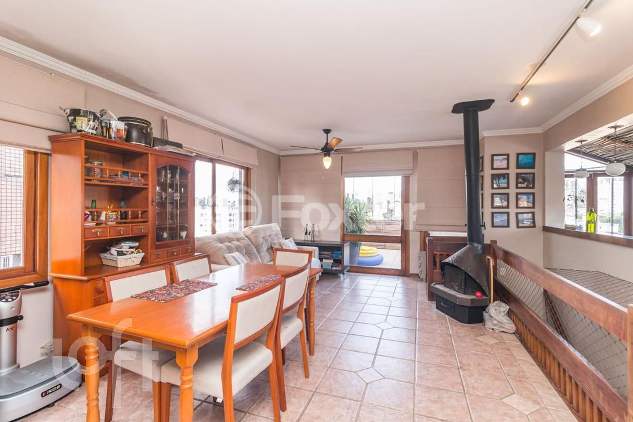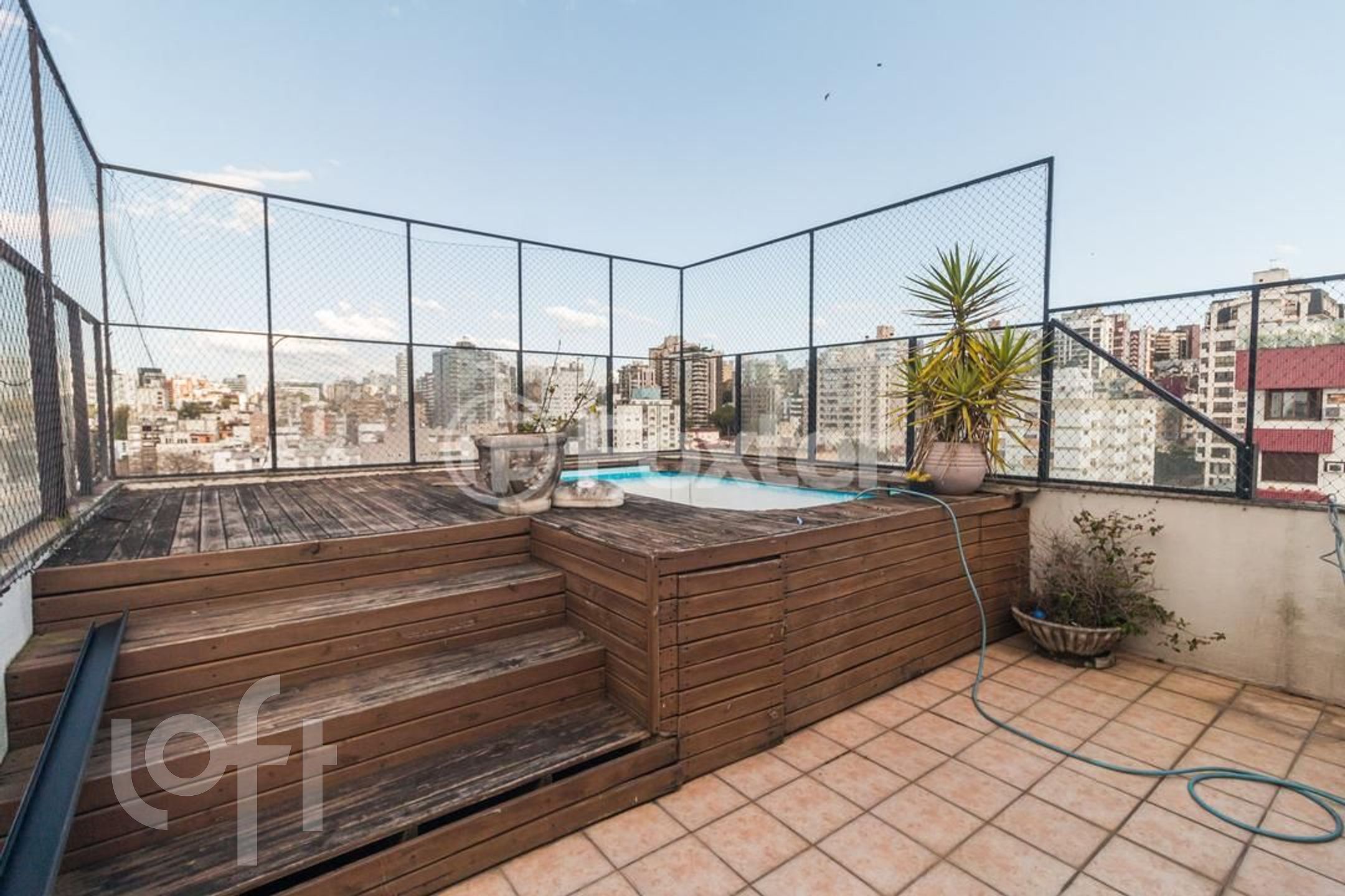 Possui 2 dormitorios (1 suite), originalmente com 3.Living amplo com sacada integrada, banho social, cozinha com area de serviço separada, escada de madeira. Parte superior social com lareira , churrasqueira, piscina, banho , vista panorâmica. Norte/Leste.