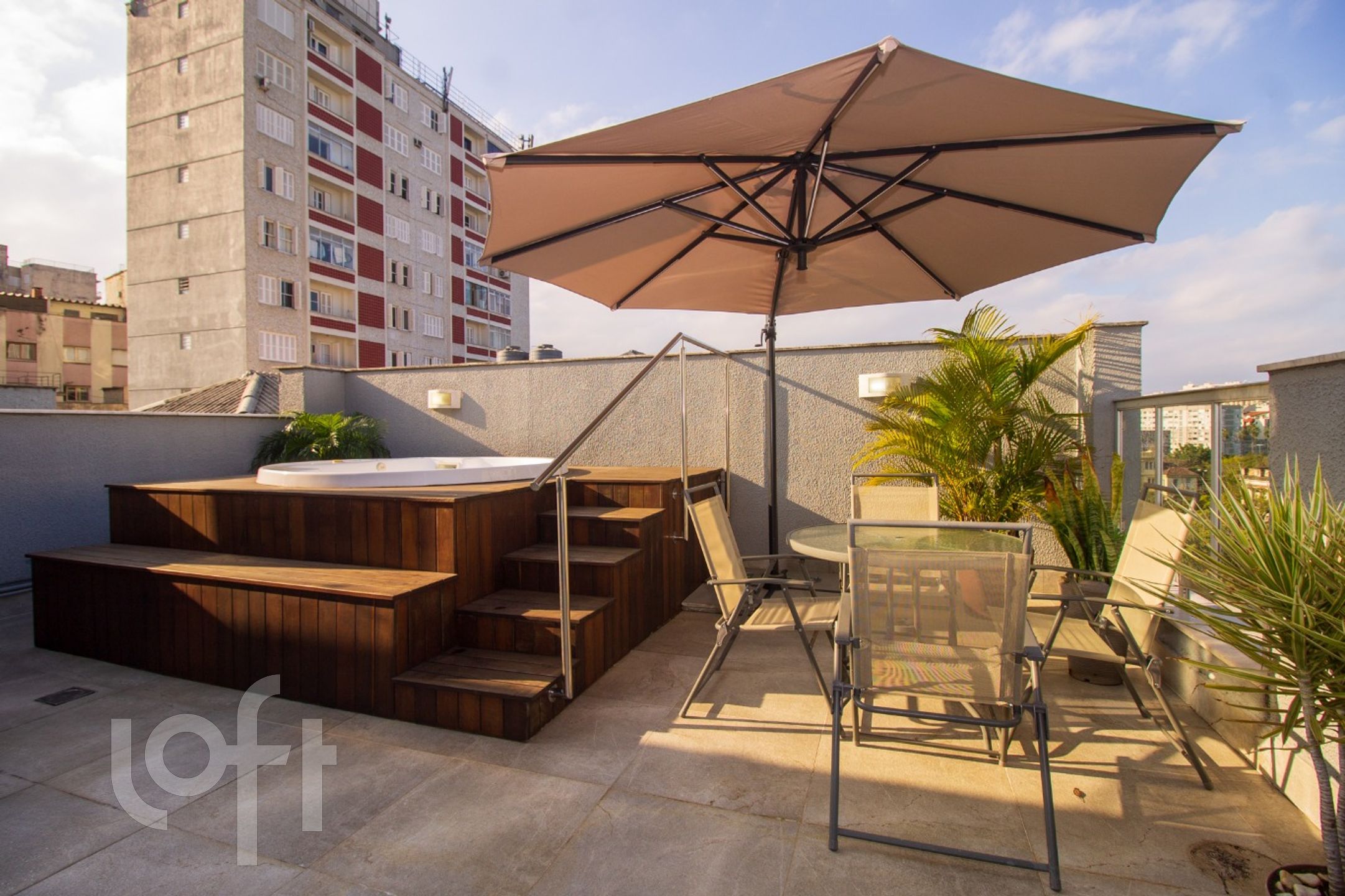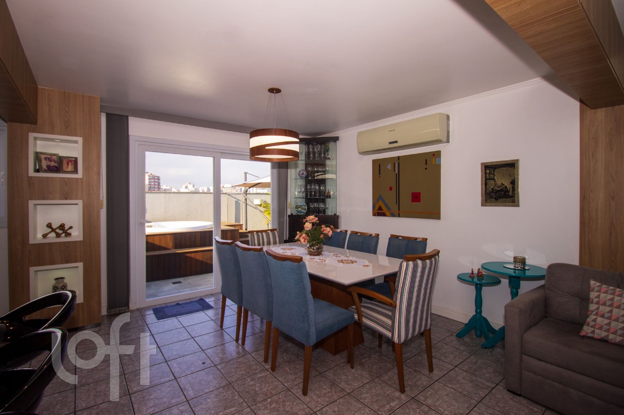 Algumas características do imóvel: Aceita Pet, Agua Quente, Area Servico, Banheiro Social, Churrasqueira, Cozinha, Lareira, Leste, Living Hall, Sacada Com Churrasqueira, Suite Master, Terraco, Vista Panoramica