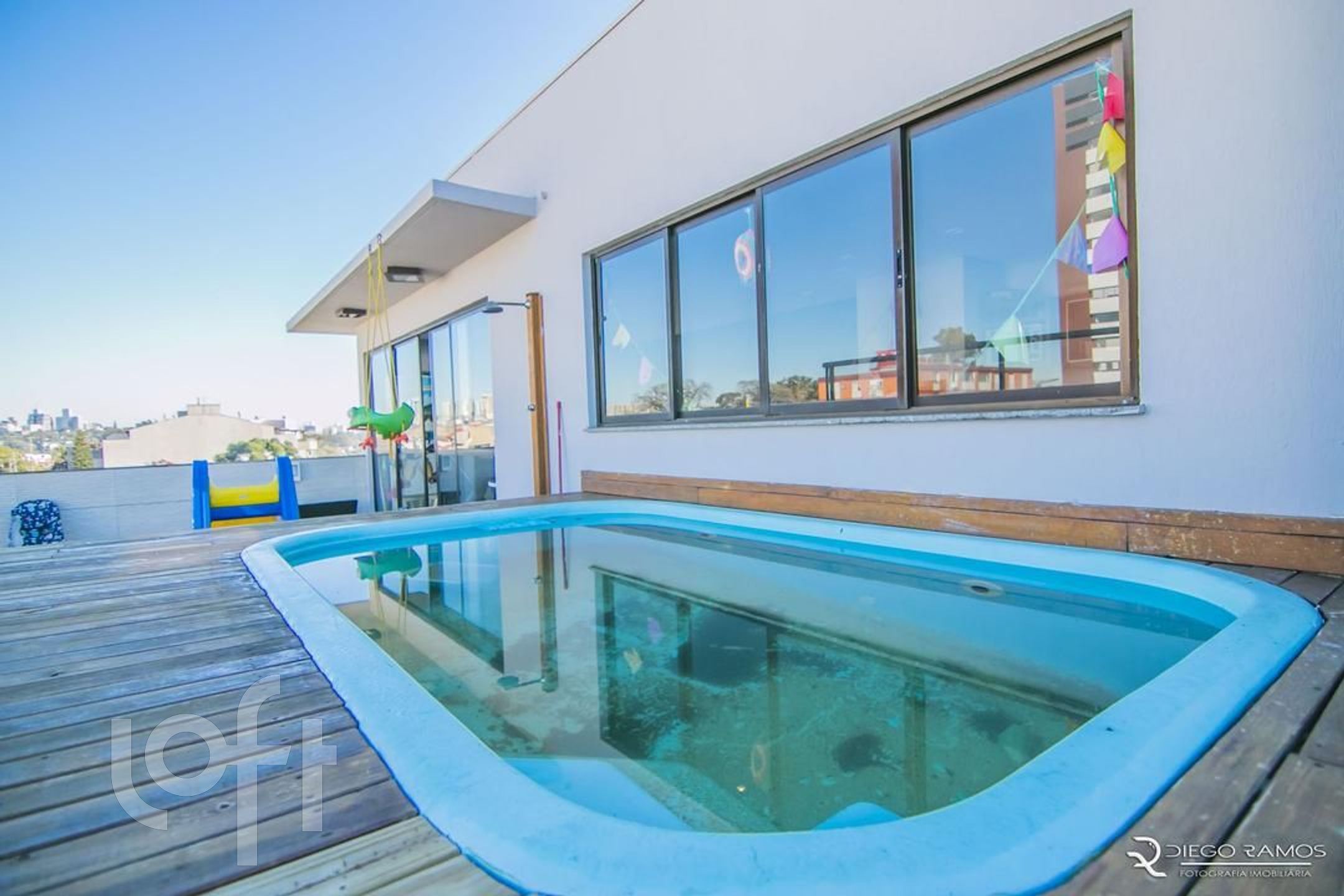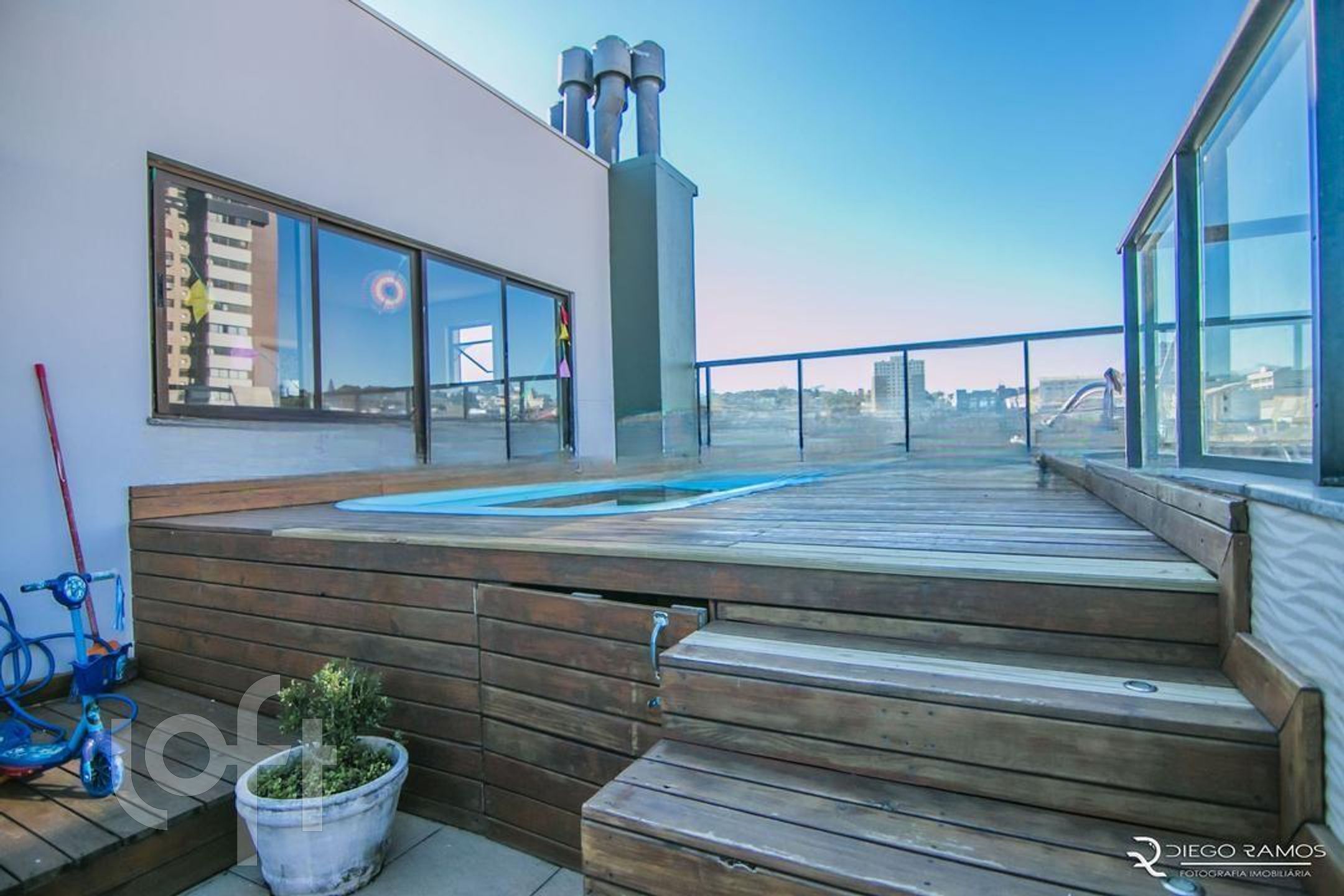 ?Uma área social ampla no piso superior, incluindo uma piscina privativa e um terraço exclusivo, perfeito para momentos de lazer e descontração ao ar livre.