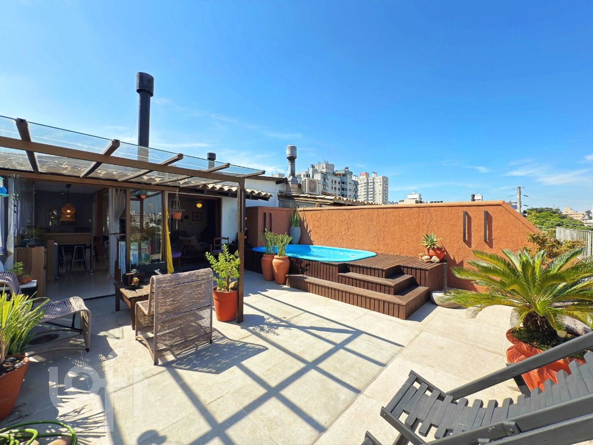 Algumas características do imóvel: Agua Quente, Banheiro Social, Churrasqueira, Copa Cozinha, Deck, Dependenciade Empregada, Estar Intimo, Lareira, Lavabo, Leste, Living Hall, Piscina, Sacada Com Churrasqueira, Suite Master, Terraco, Vista Panoramica, W C Empregada