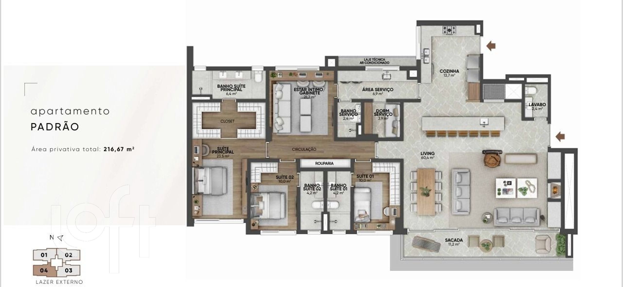 Este sofisticado apartamento no Nilo Square oferece 216 m² privativos em um projeto que une elegância, funcionalidade e alto padrão construtivo. O living amplo, integrado ao jantar, destaca-se pelo porcelanato já instalado no living, cozinha, lavanderia e lavabo, proporcionando um ambiente contemporâneo e pronto para personalização.