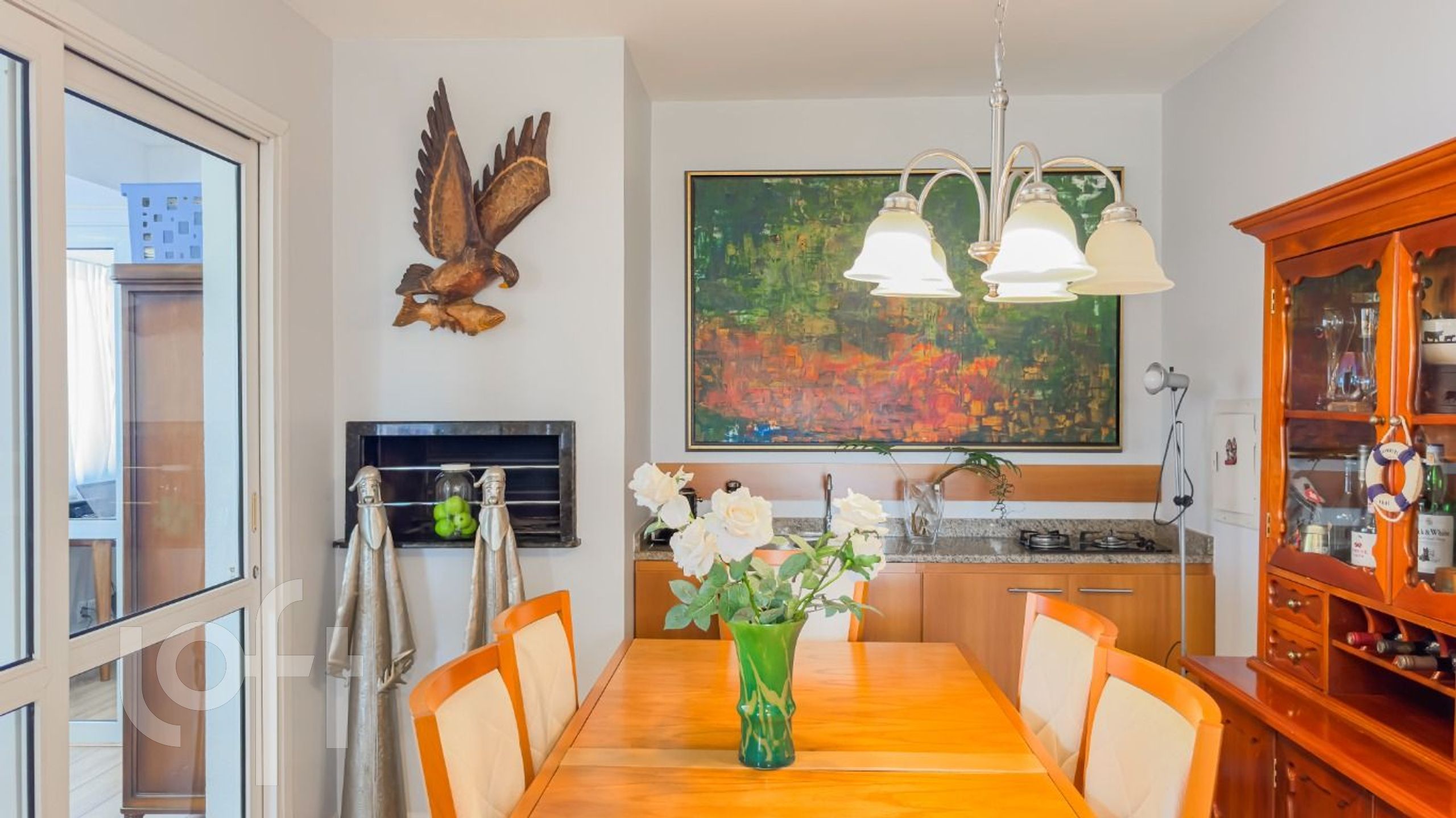 Algumas características do imóvel: Aceita Pet, Agua Quente, Area Servico, Banheiro Social, Churrasqueira, Copa Cozinha, Cozinha, Deck, Dependenciade Empregada, Lareira, Lavabo, Leste, Mobiliado, Piscina, Sacada Com Churrasqueira, Sala Jantar, Semi Mobiliado, Suite Master, Terraco, Vista Panoramica, W C Empregada