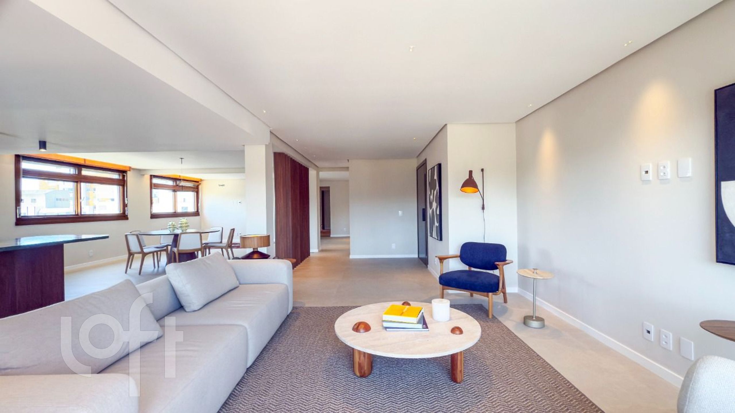 O imóvel foi totalmente renovado e será entregue com banheiros, cozinha e espaço gourmet mobiliados, incluindo eletrodomésticos e móveis planejados. Além disso, recebeu um projeto luminotécnico completo na sala, lavabo, cozinha e lavanderia.