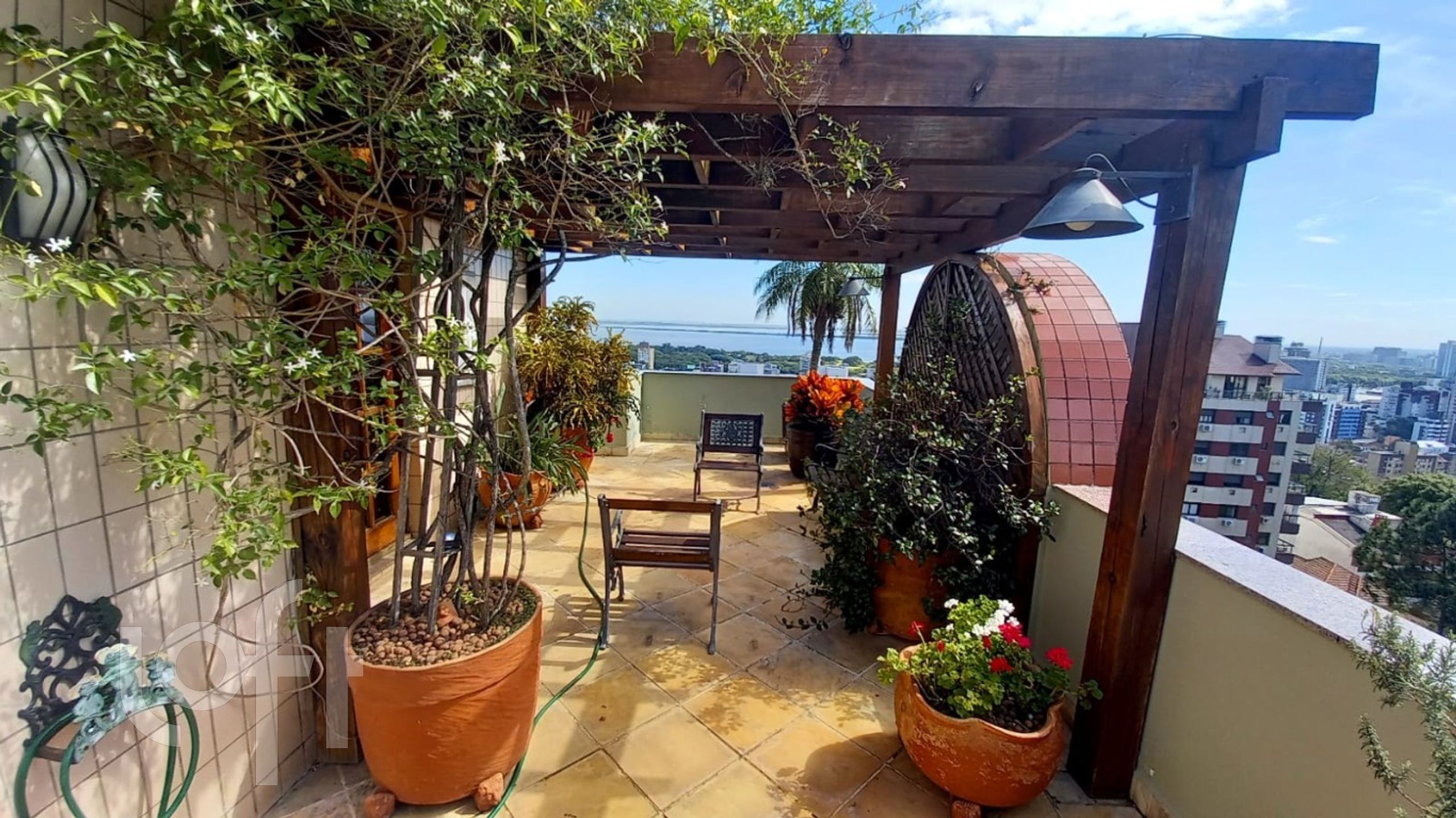 Encantadora cobertura mobiliada de 3 dormitórios, sendo uma suíte com banheira de hidromassagem e sacada com encantadora vista para o Guaíba e cidade terceiro dormitório foi transformado em closet que pode ser revertido, os móveis dos dormitórios de marcenaria, são fixos e ficam no imóvel. Hall na entrada, living 2 ambientes definidos com 2 sacadas e uma vista maravilhosa do bairro e Guaíba, cozinha, área de serviço, dependência e anho auxiliar. Peças amplas, ensolarado e arejado, com ótima posição solar. Parte superior com aconchegante ambiente com lareira, churrasqueira e deck com piscina no terraço com paisagismo e linda vista. Dois box escriturados e individuais. Prédio com salão de festas, elevador, jardim e segurança.