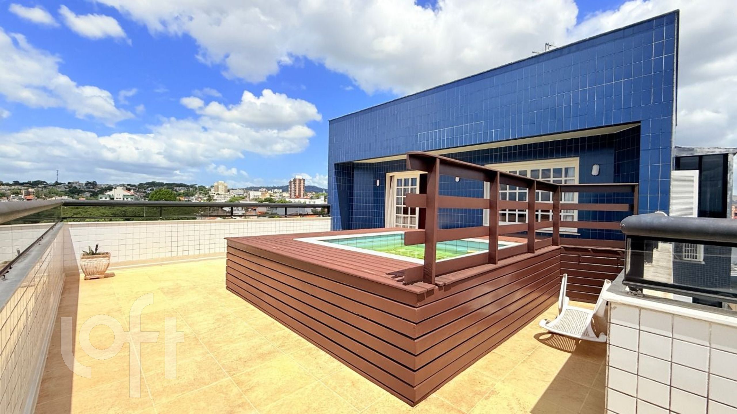No pavimento superior, a cobertura oferece um espaço de convivência completo, com churrasqueira, lareira, área gourmet e piscina privativa, ideal para momentos de lazer e confraternização, além de uma agradável vista do bairro.