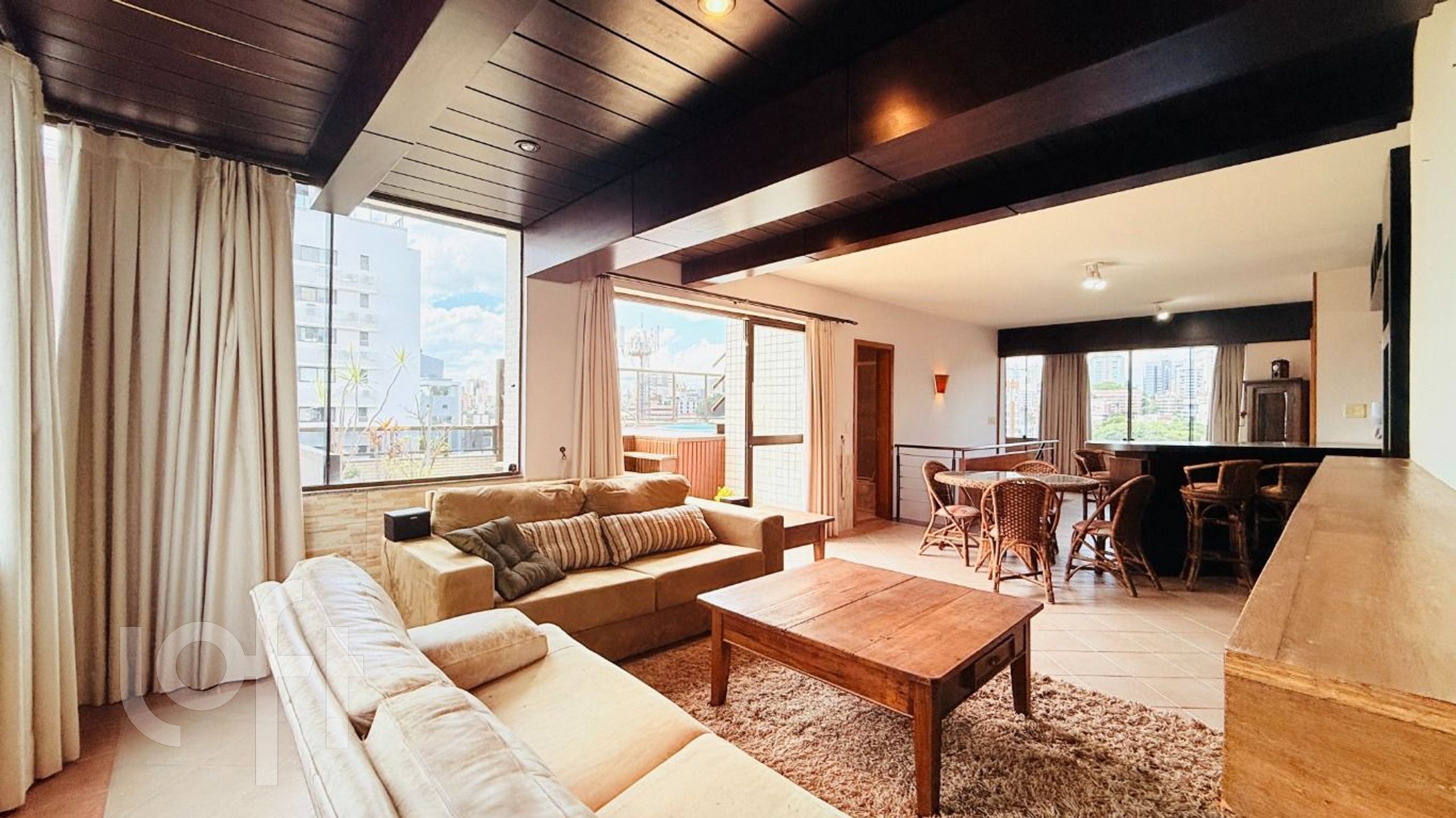 Algumas características do imóvel: Aceita Pet, Agua Quente, Area Servico, Banheiro Social, Churrasqueira, Deck, Dependenciade Empregada, Lareira, Lavabo, Leste, Living Hall, Mobiliado, Piscina, Sacada Com Churrasqueira, Semi Mobiliado, Suite Master, Terraco, W C Empregada