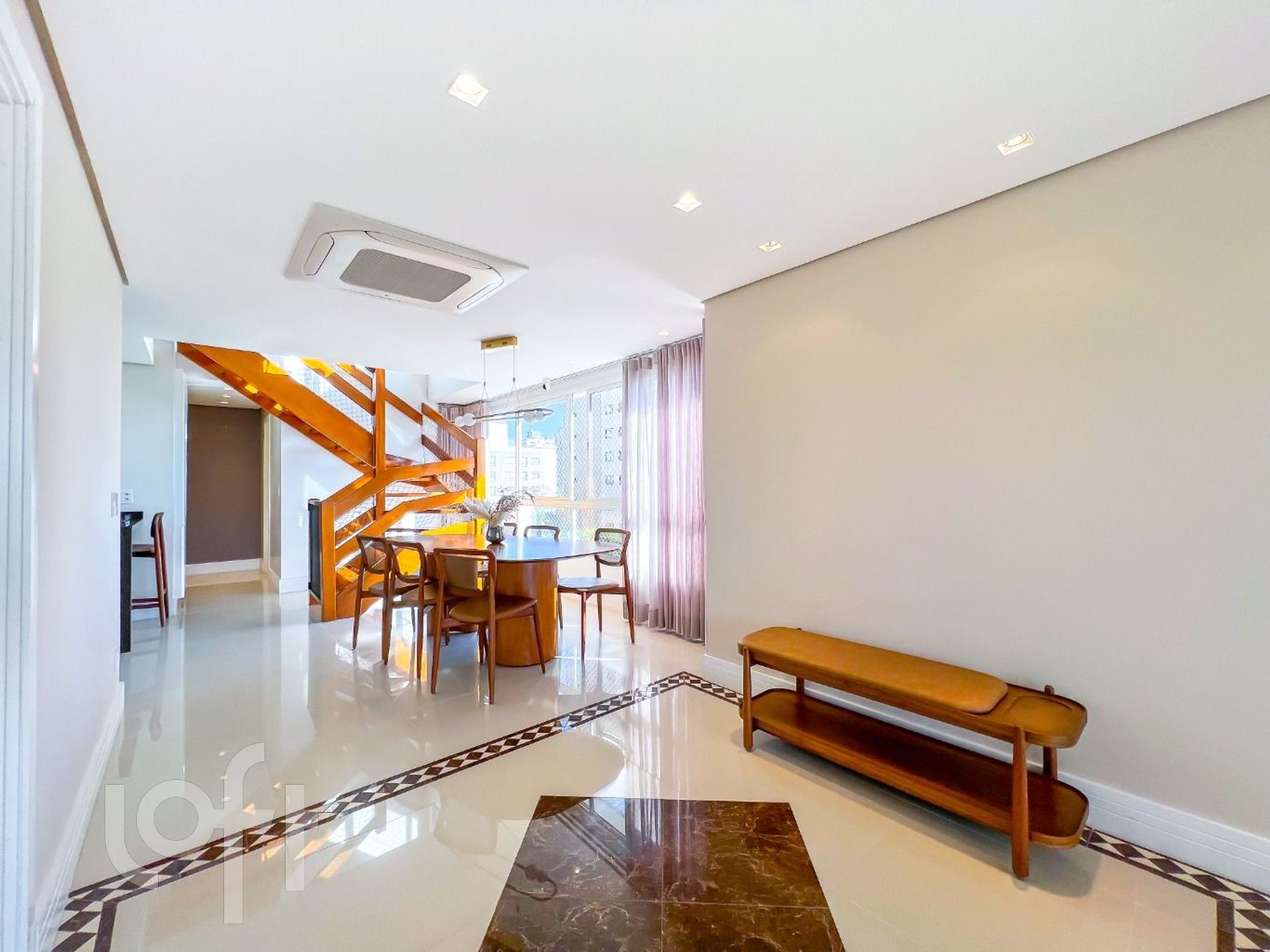 Fica mobiliada, inclusive com móveis assinados. Climatização e iluminação em todos os ambientes.