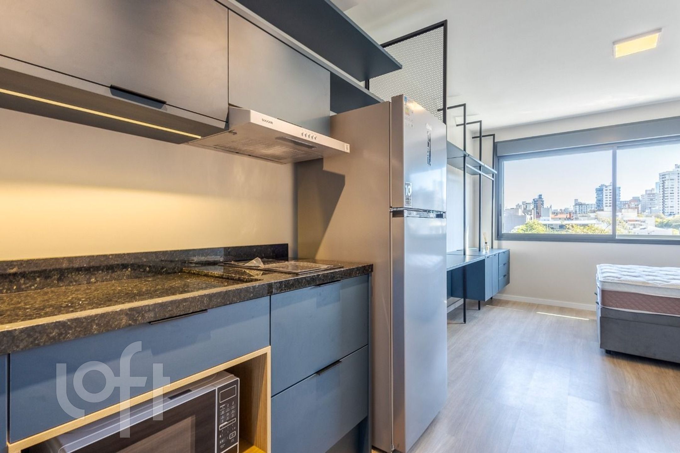 O loft é perfeito para quem busca funcionalidade, conforto e sofisticação. Lindo ambiente decorado por arquitetos com living/dormitório integrado, TV, cama de casal com baú e armários planejados de excelente qualidade, garantindo máxima organização e aproveitamento de espaço. O ar-condicionado Split proporciona climatização perfeita para o seu conforto. A cozinha é moderna e totalmente equipada, com armários planejados, fogão por indução, forno, exaustor, geladeira e micro-ondas, oferecendo praticidade e elegância no seu dia a dia. O banheiro social com box de vidro e armário. A orientação solar oeste proporciona uma luminosidade natural abundante, criando um ambiente claro e acolhedor.
