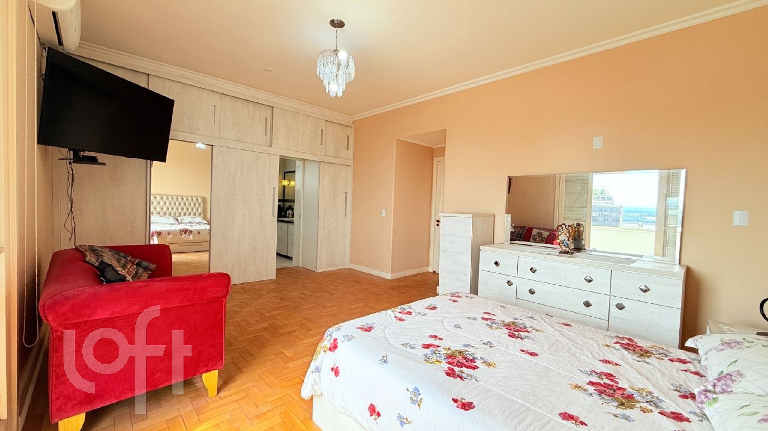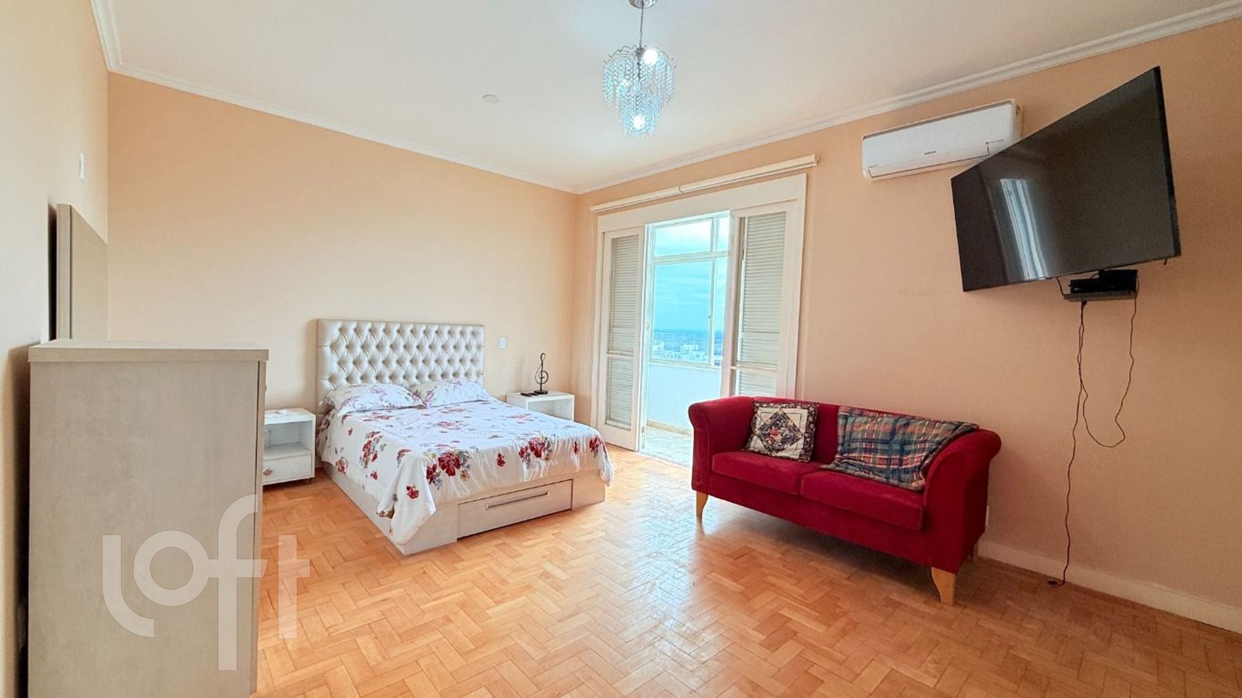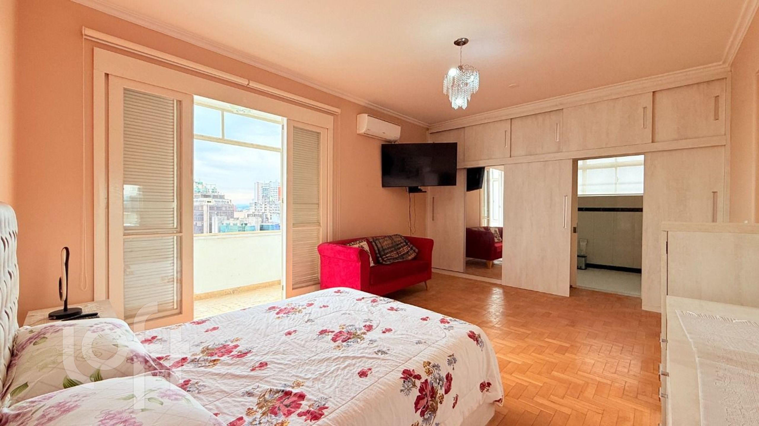 Algumas características do imóvel: Aceita Pet, Agua Quente, Area Servico, Banheiro Social, Copa Cozinha, Cozinha, Dependenciade Empregada, Estar Intimo, Lareira, Lavabo, Leste, Living Hall, Mobiliado, Sacada, Sala Jantar, Semi Mobiliado, Suite Master, Vista Panoramica, W C Empregada