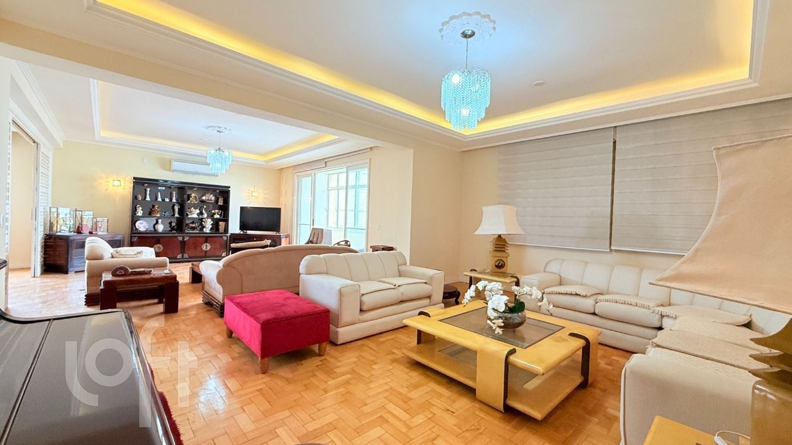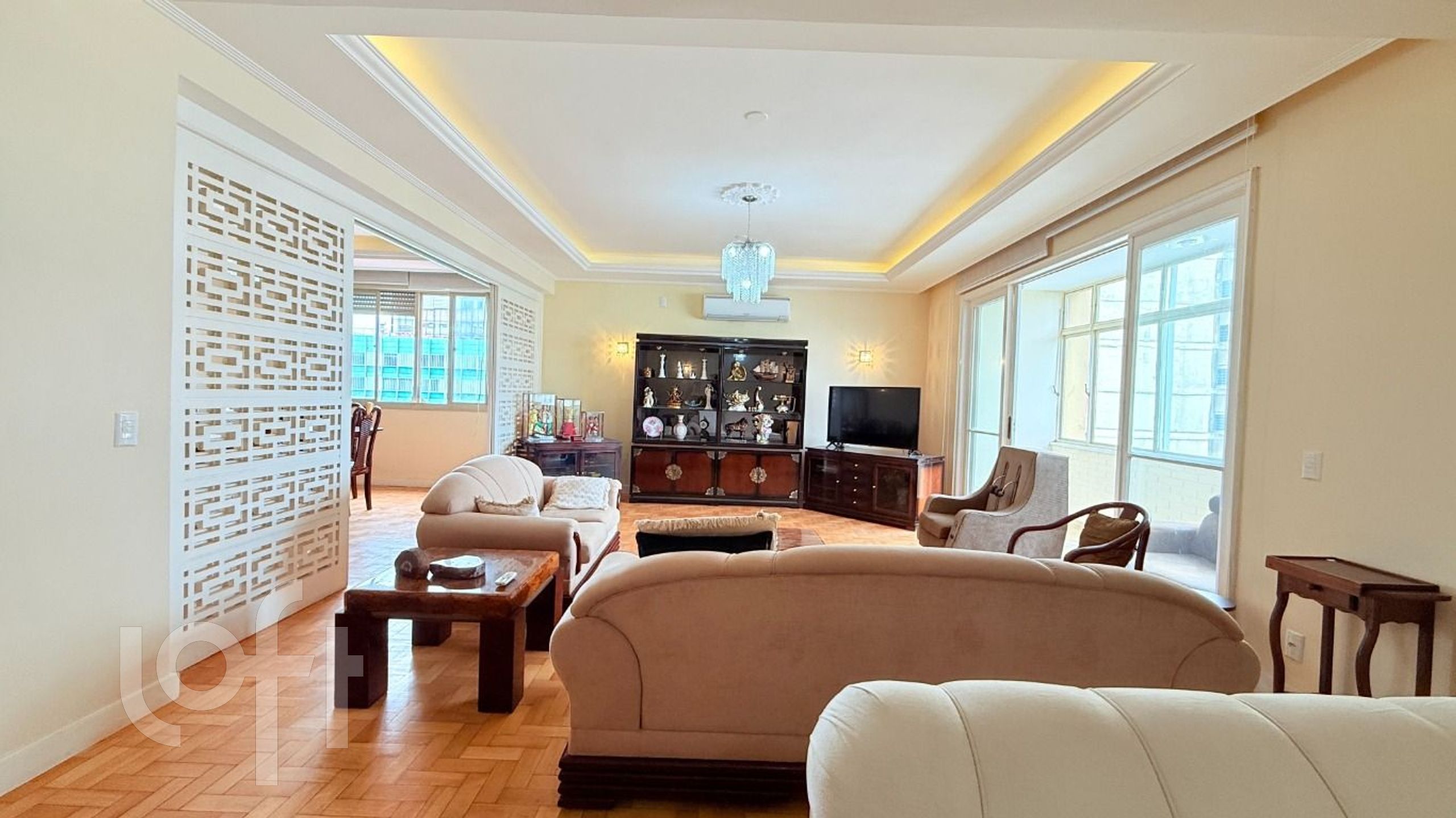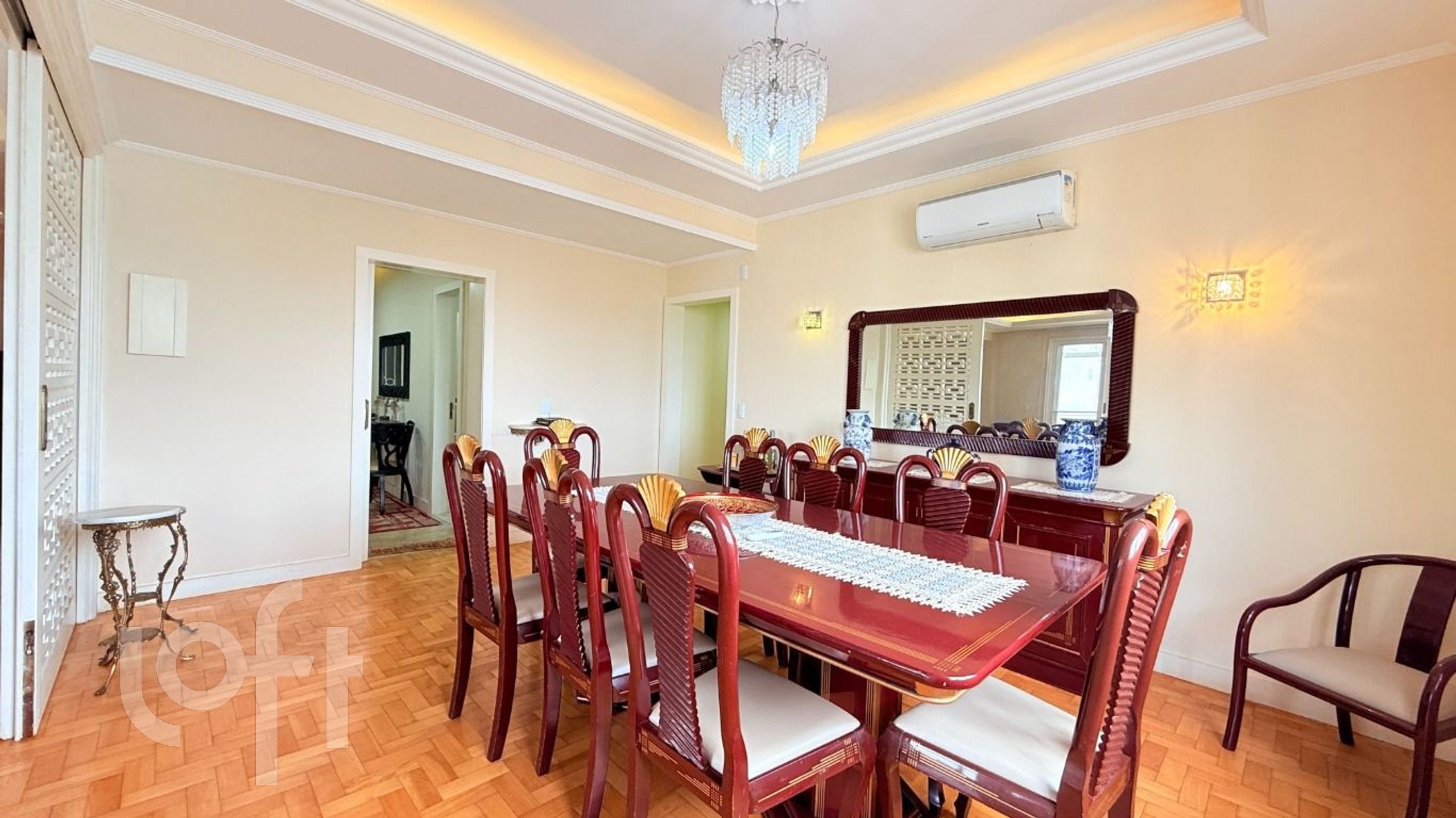 Algumas características do imóvel: Aceita Pet, Agua Quente, Area Servico, Banheiro Social, Copa Cozinha, Cozinha, Dependenciade Empregada, Estar Intimo, Lareira, Lavabo, Leste, Living Hall, Mobiliado, Sacada, Sala Jantar, Semi Mobiliado, Suite Master, Vista Panoramica, W C Empregada