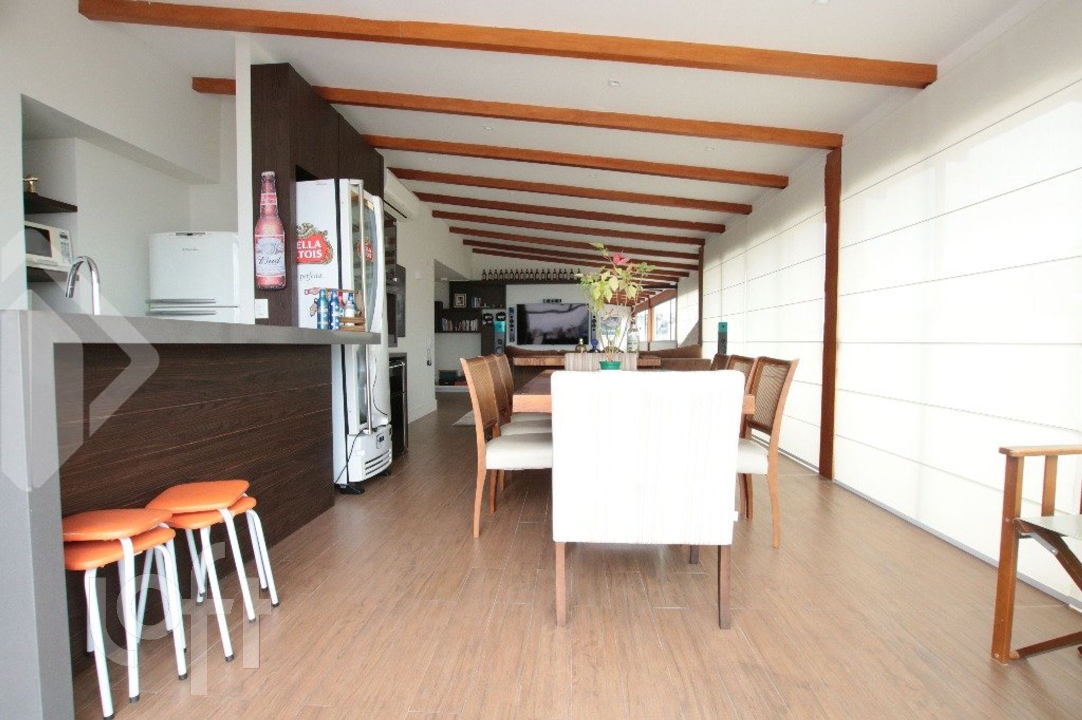 Toda reformada incluindo hidráulica e elétrica, com 262 m² de área privativa. Na parte inferior: Amplo living com 2 ambientes todo em piso porcelanato, lavabo, cozinha americana montada, área de serviço e dependência de empregada. Na parte intima 3 dormitórios com piso laminado e uma ampla suíte com closet. Na parte superior: Amplo living 2 ambientes com lareira e espaço churrasqueira, toda em vidro com vista para o Rio Guaíba. Lavabo. Outro ambiente com ampla jacuzzi e sauna. Área aberta de terraço. Todos ambientes climatizados com ar-condicionado Split. Completamente mobiliada, é só entrar e morar. Prédio em perfeito estado de conservação, localizado em centro de terreno. Portaria 24 horas, 2 elevadores e salão de festas.