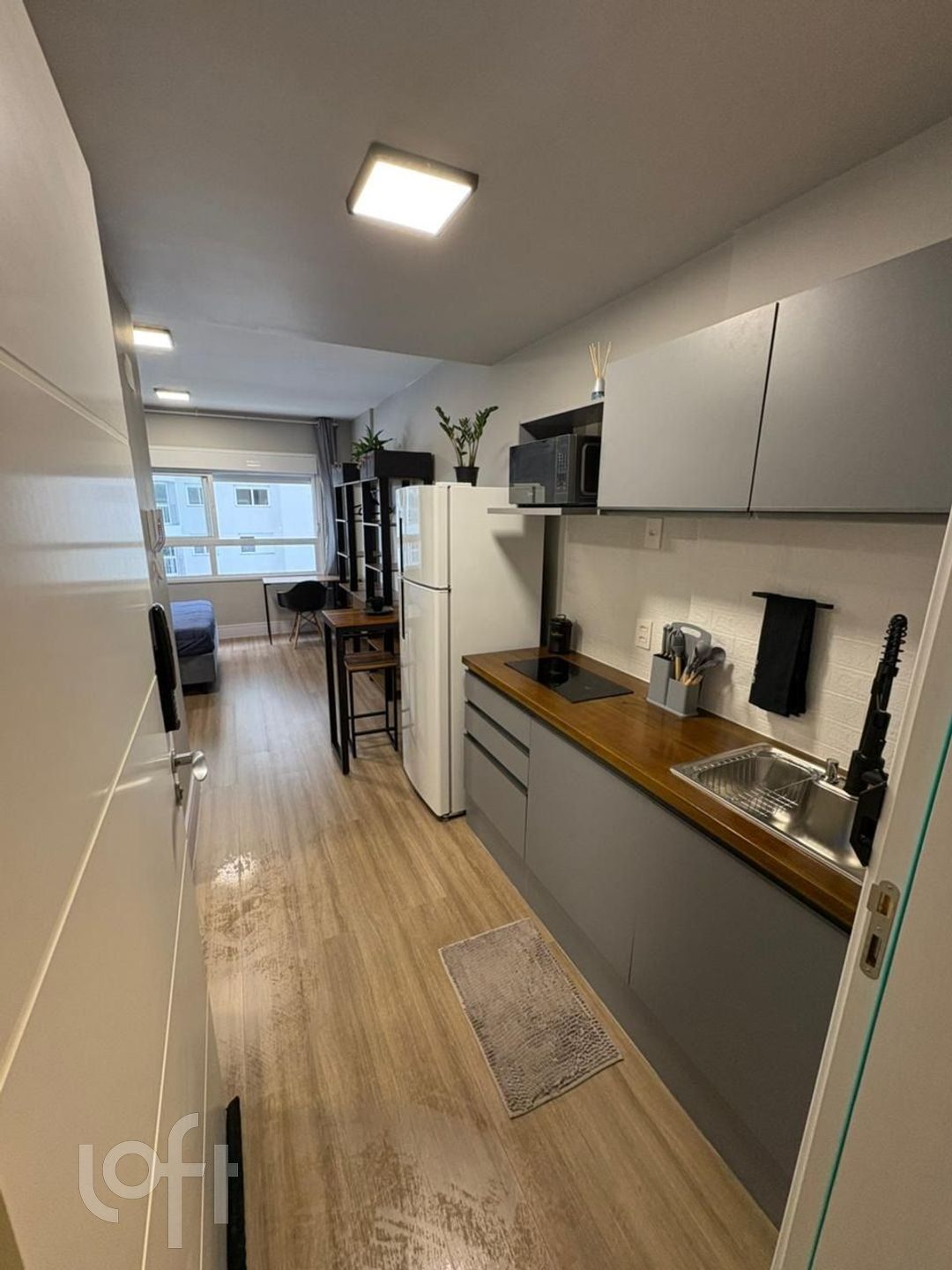 Living integrado com cozinha americana